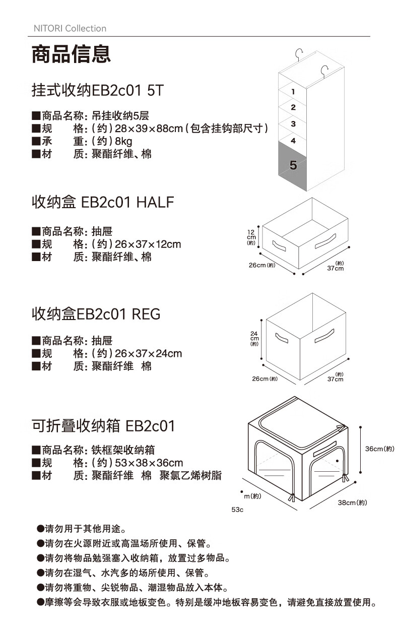 NITORI宜得利家居 衣柜收纳挂袋抽屉式内衣储物袋可折叠收纳盒EB2c01