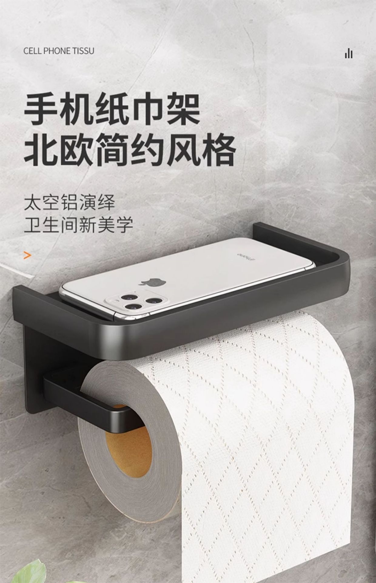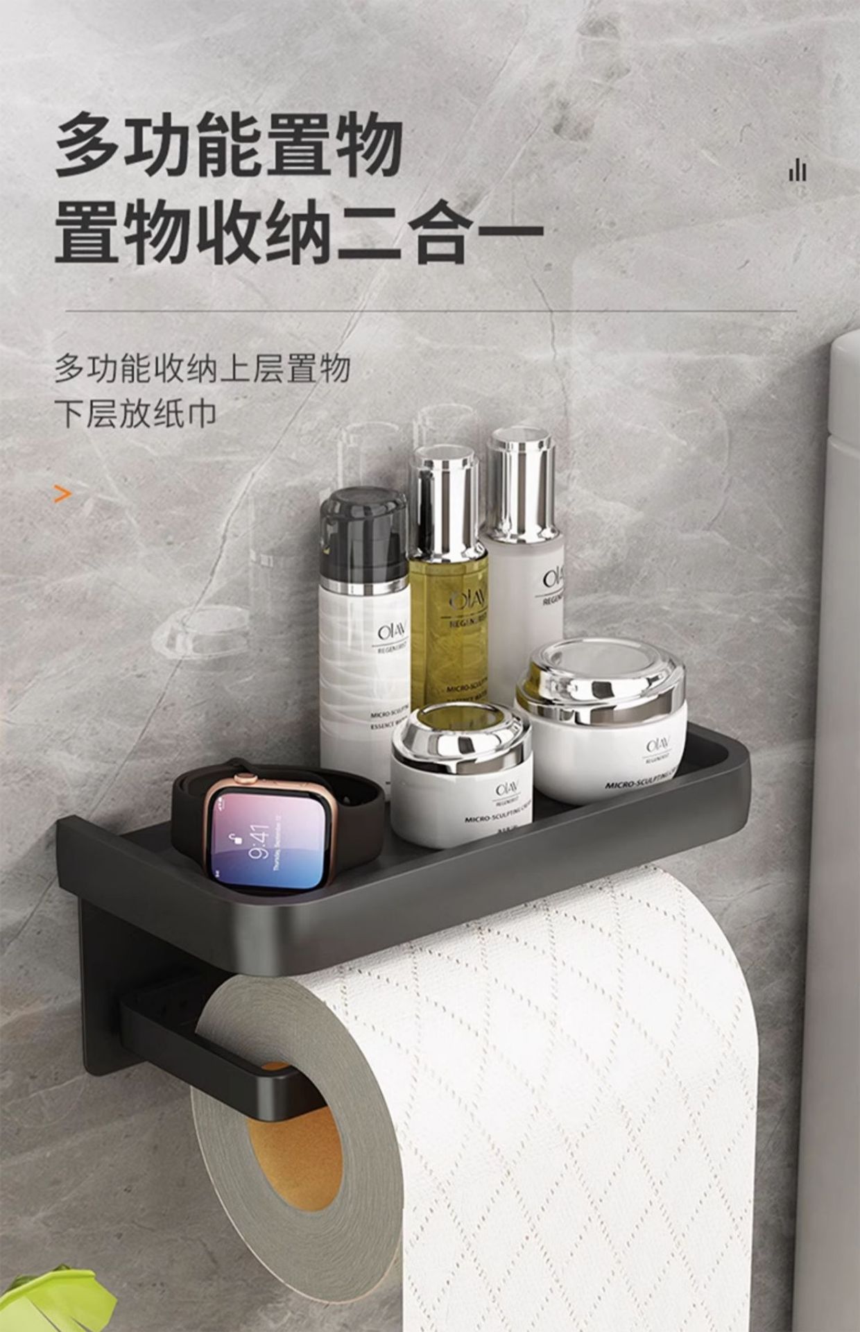 美国沃尔玛 全铝合金材质 洗手间洗浴置物架 纸巾架+送2个免打孔小熊抱抱置物杯