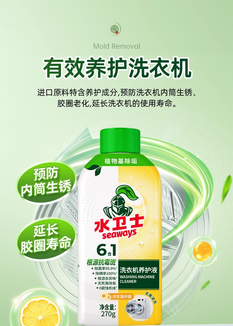 【焕新升级】水卫士 洗衣机养护液 270ml/瓶 深层洁净高效清洁