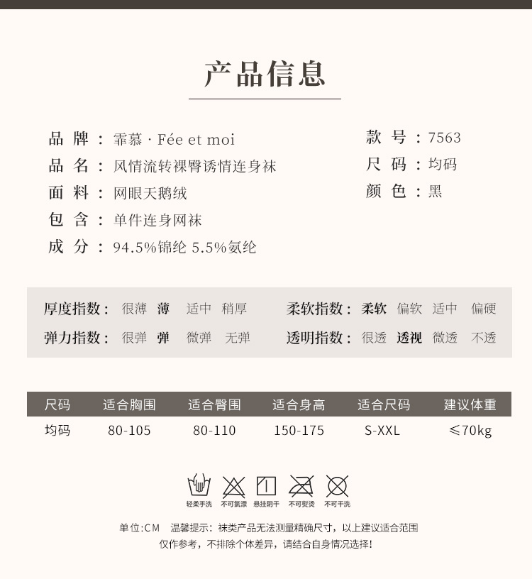 【情趣内衣】霏慕 风情流转裸臀诱情连身袜7563