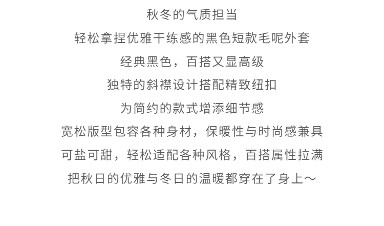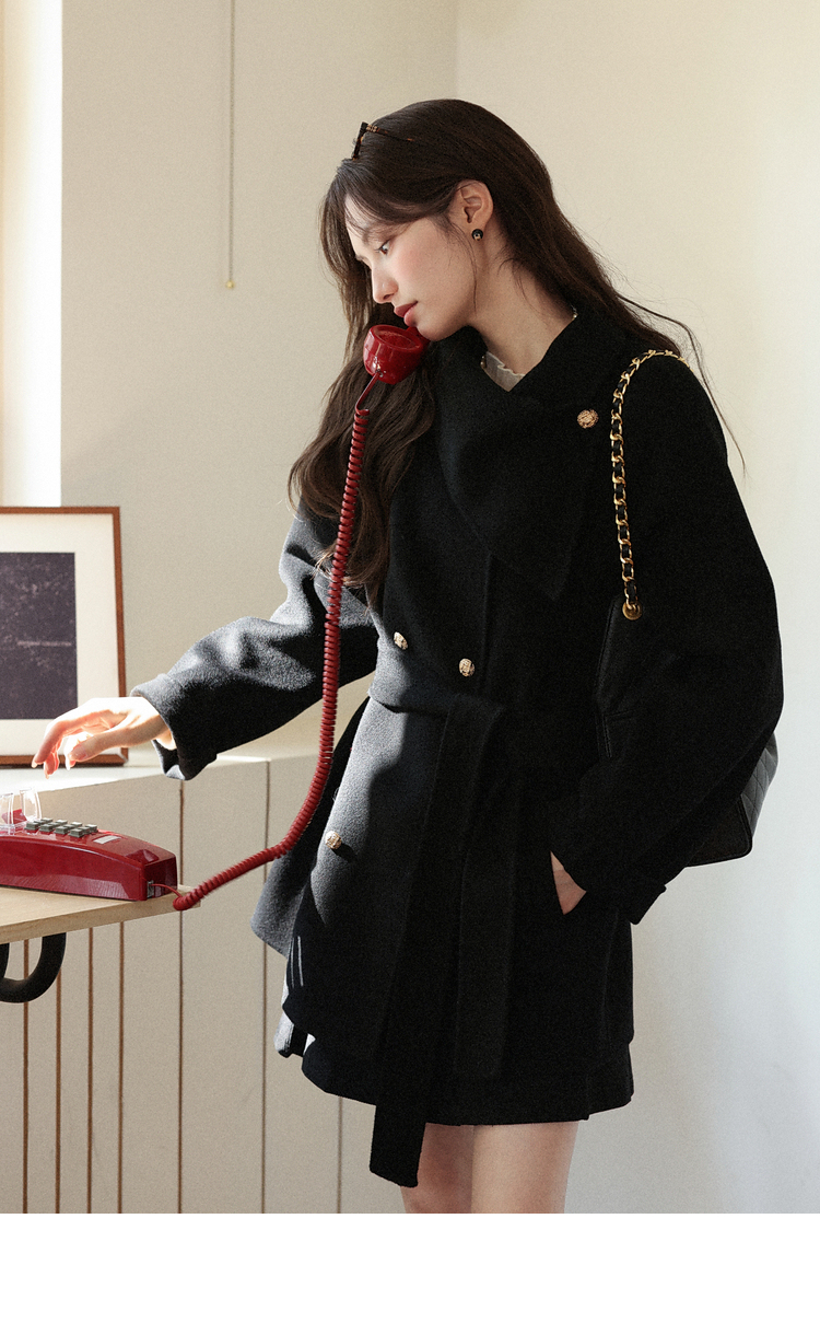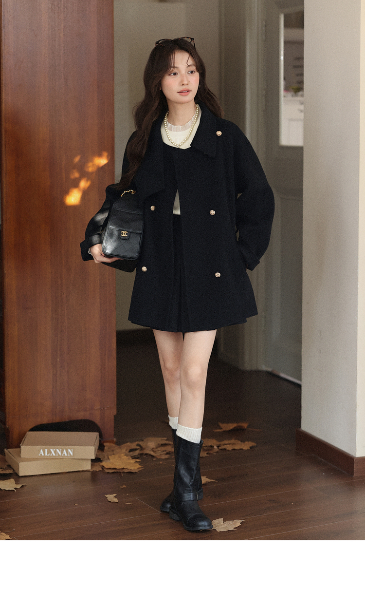 鹿向南「凭案煮茶」黑色气质双面毛呢外套秋冬季新款优雅通勤上衣