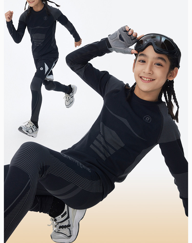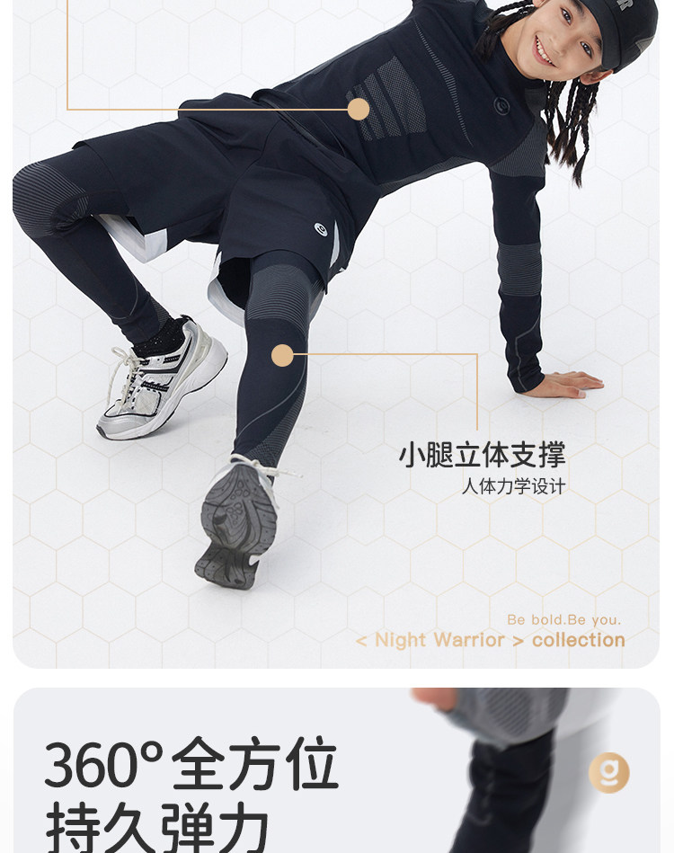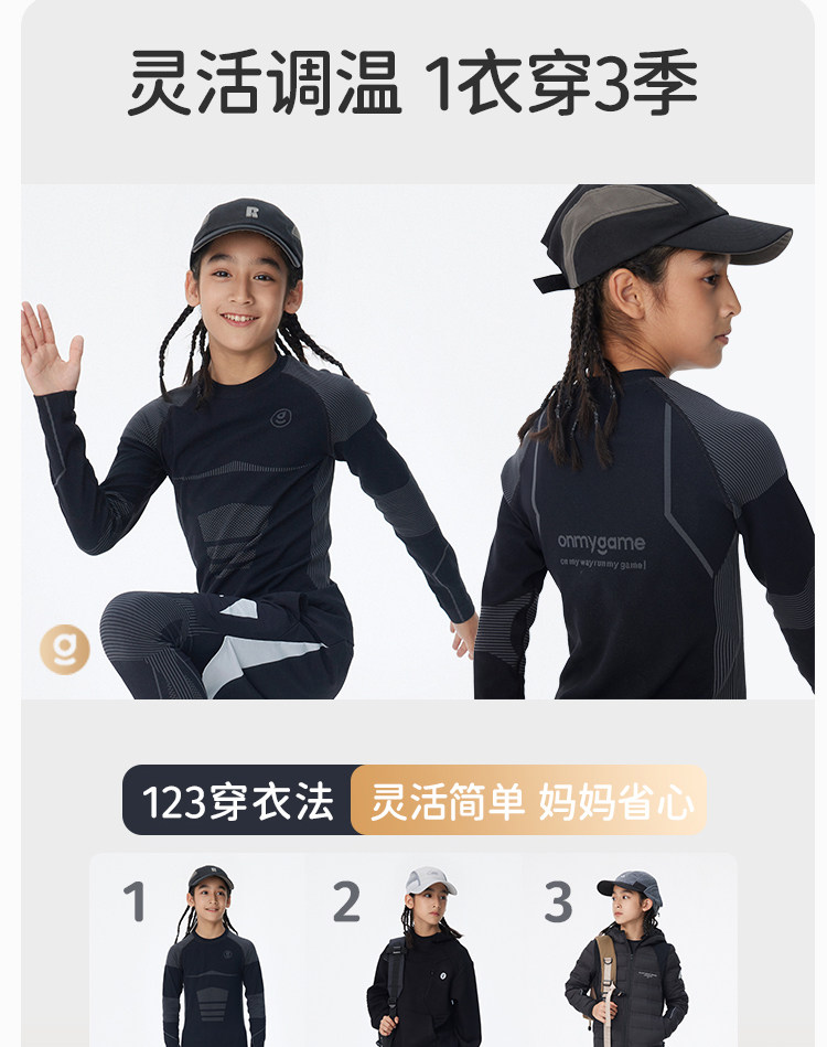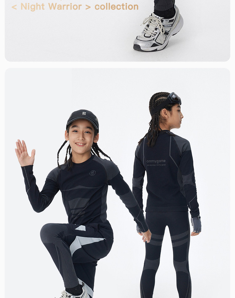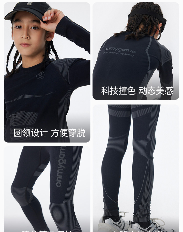 onmygame【弹力魔方格】儿童高弹力运动衣男童训练衣长袖T恤