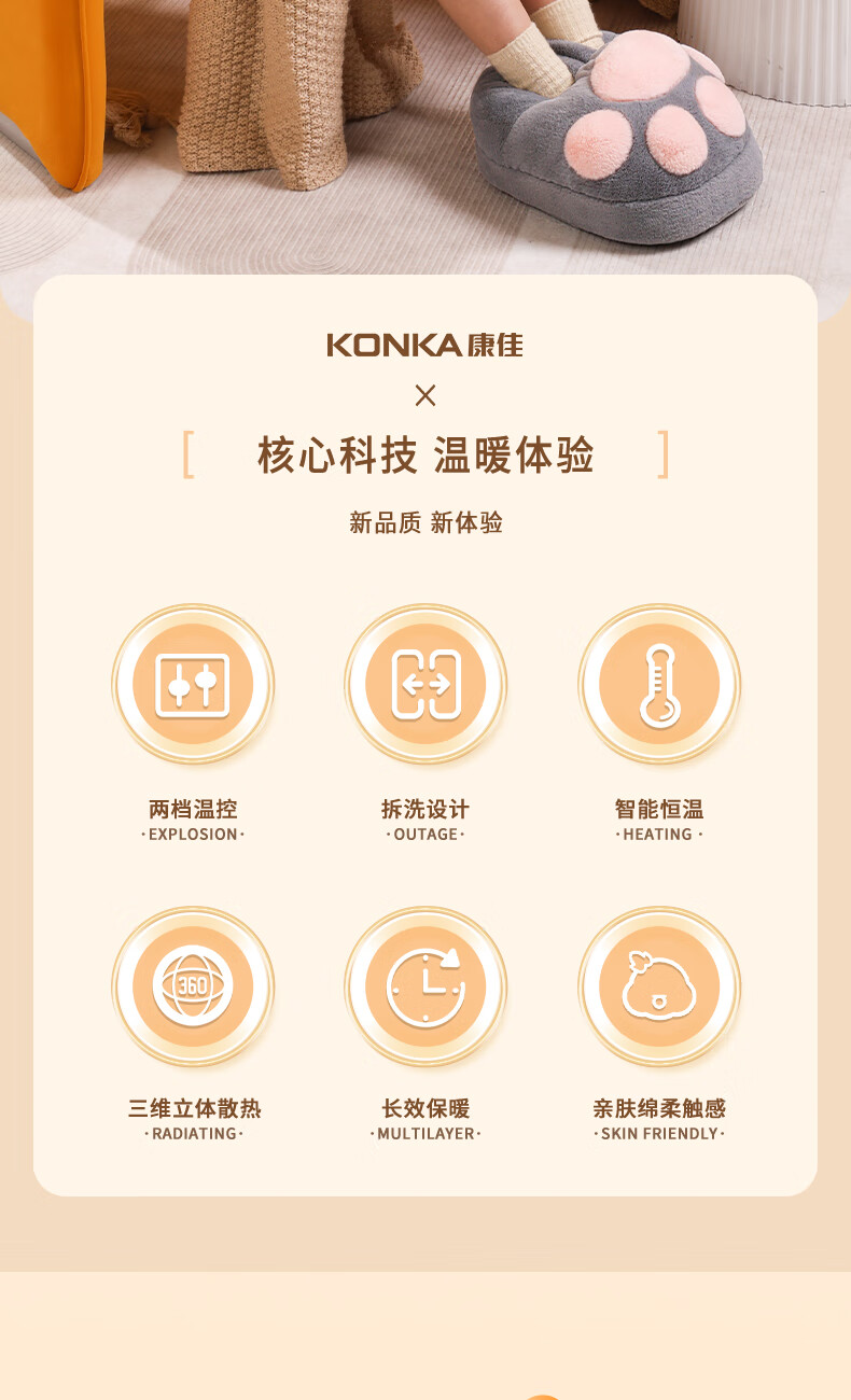 康佳 电热暖脚宝 KH8022 长绒款-时尚猫爪
