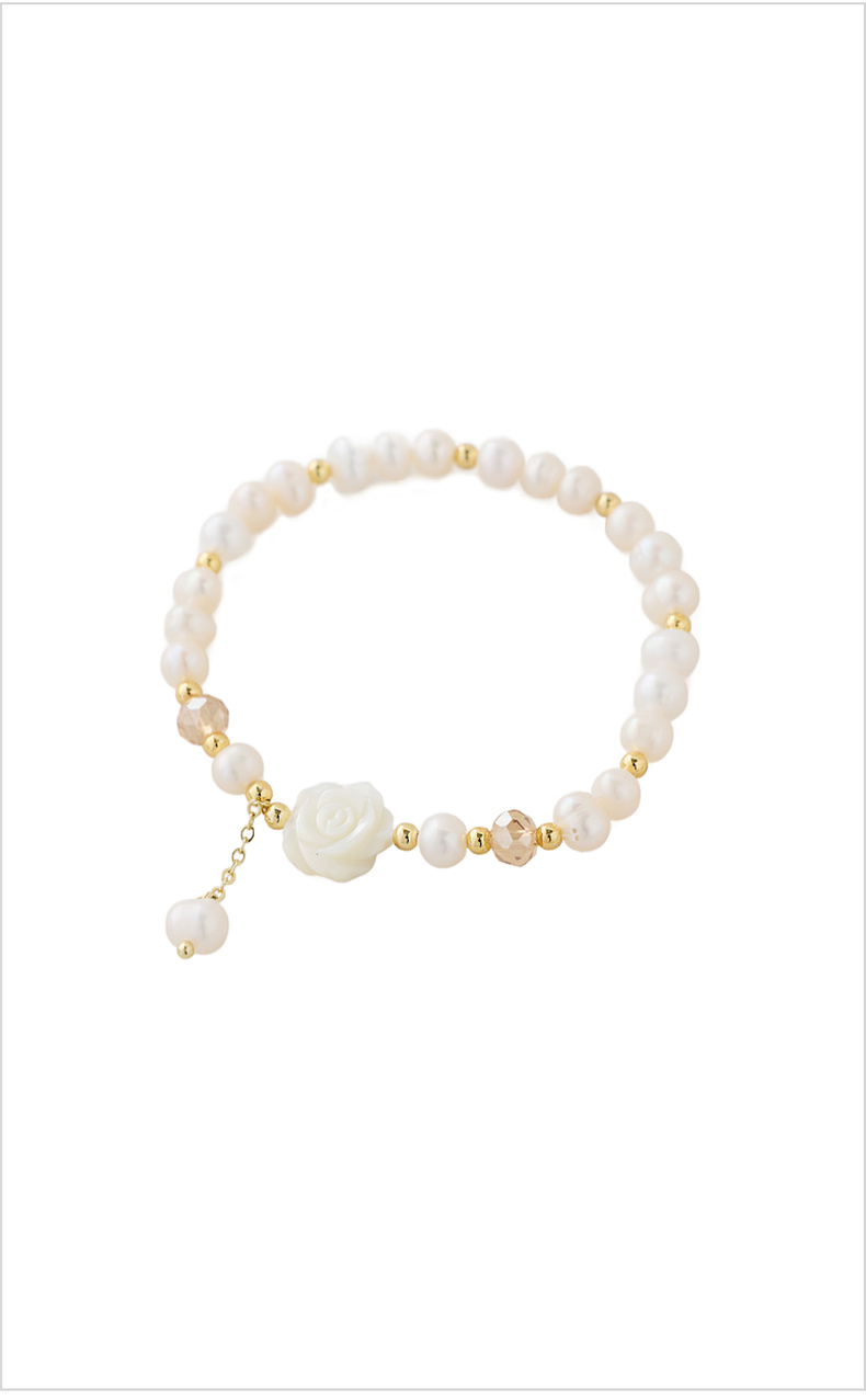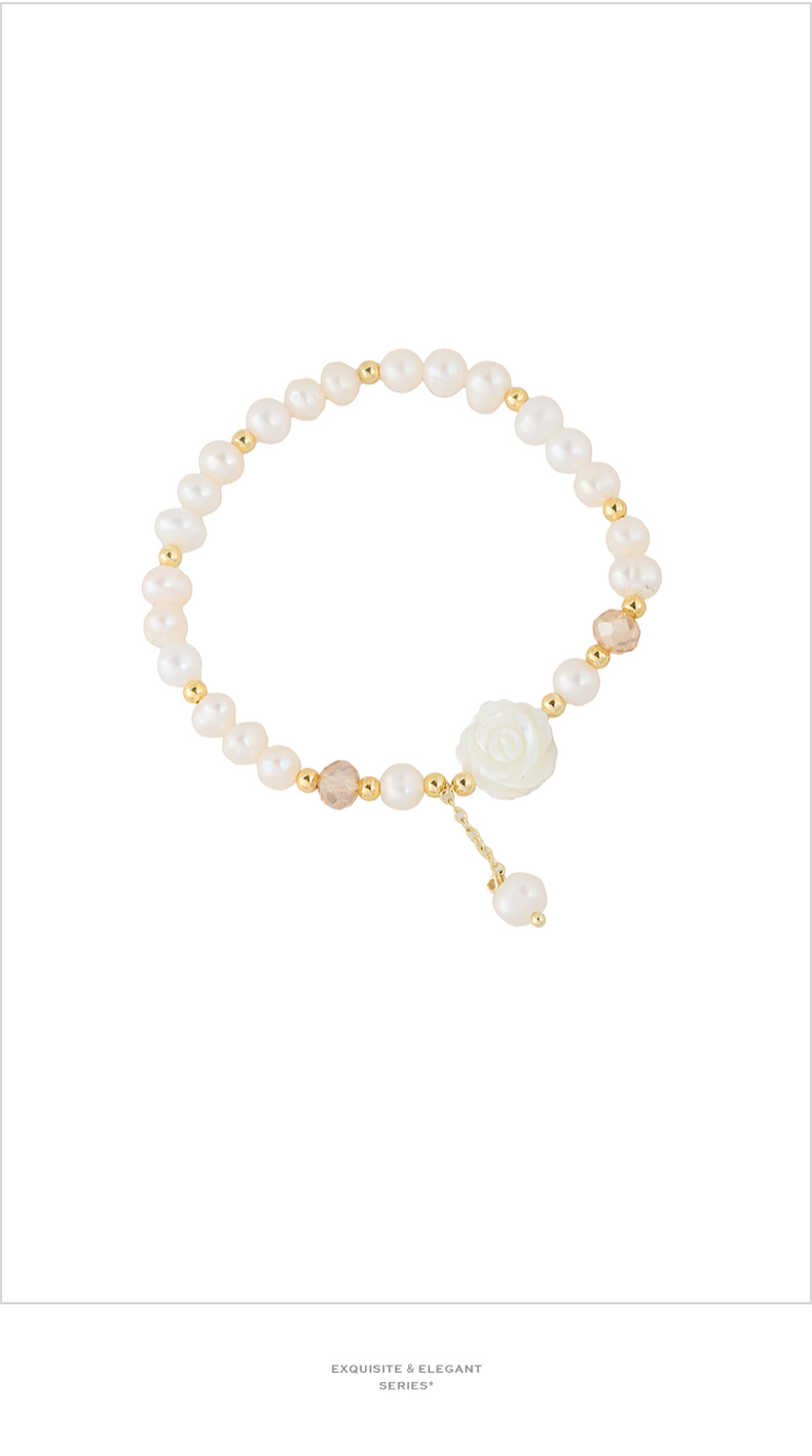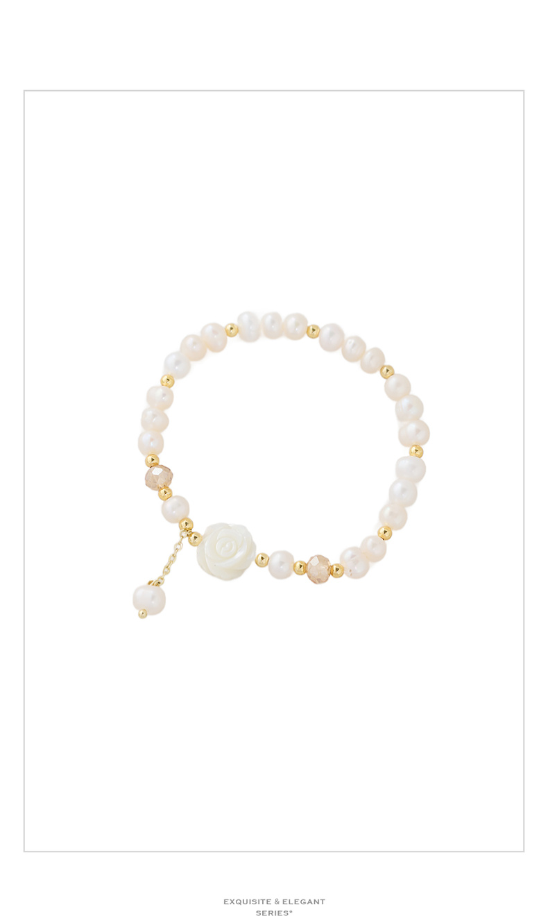 三彩2026新款淡水珍珠贝壳浮雕山茶花手串温婉气质法式浪漫约会女