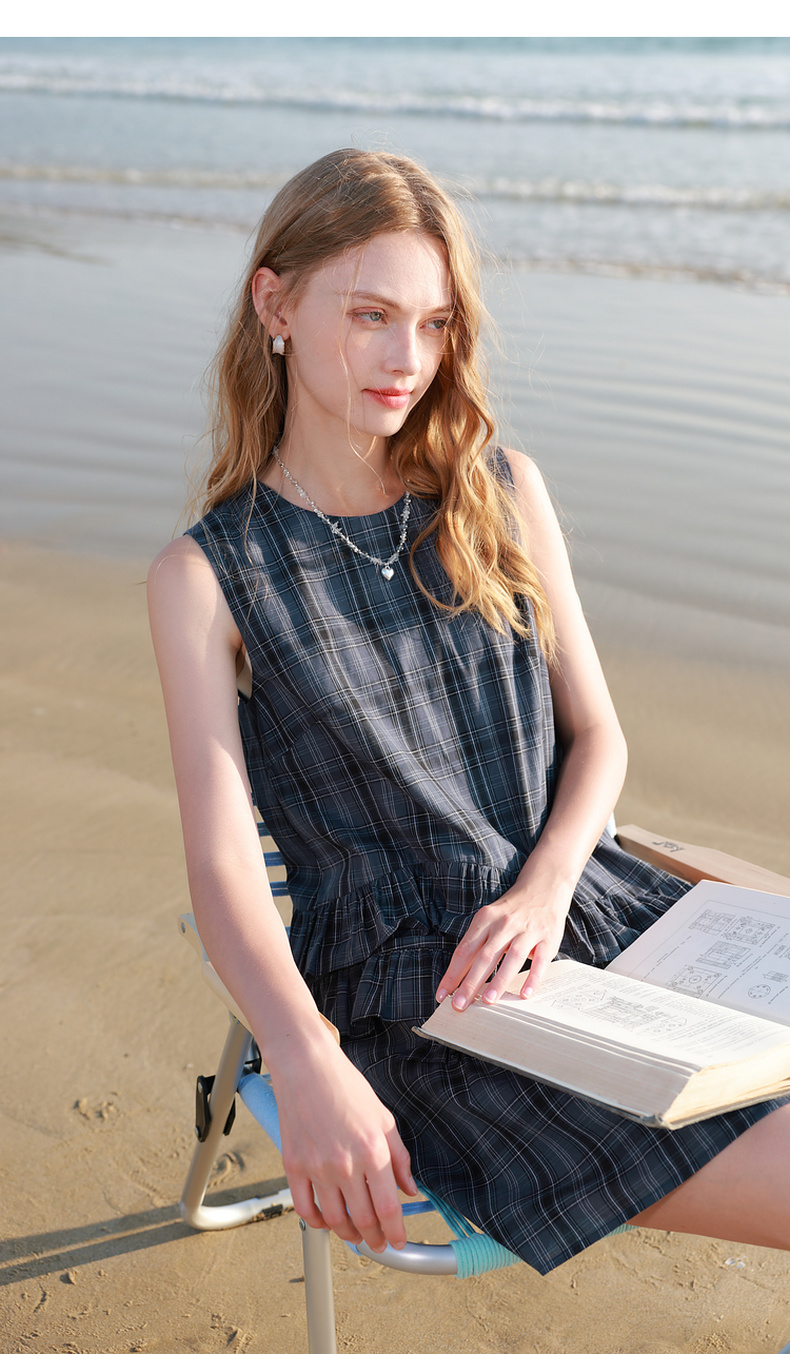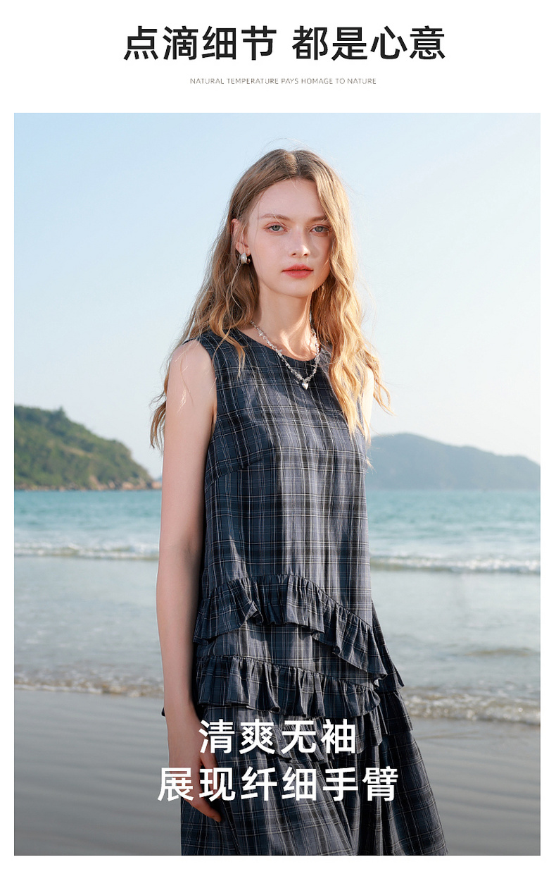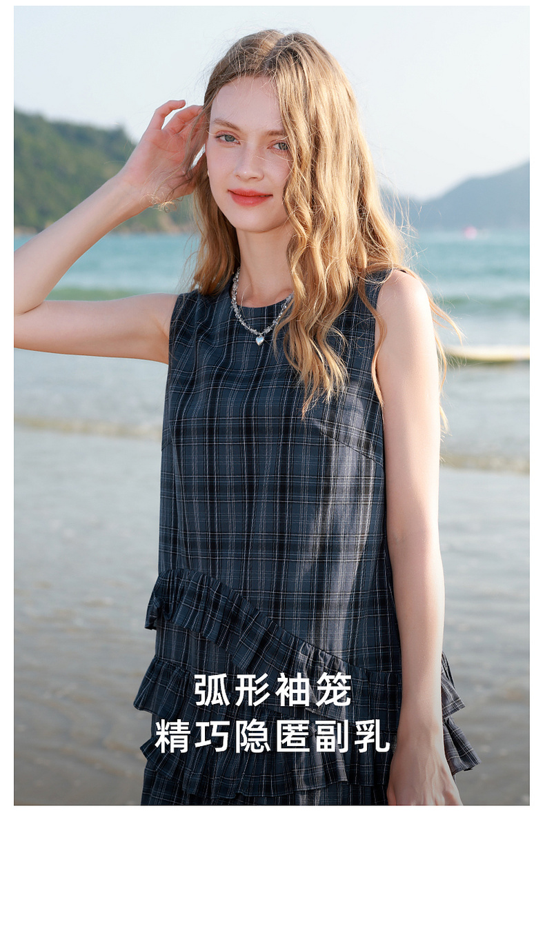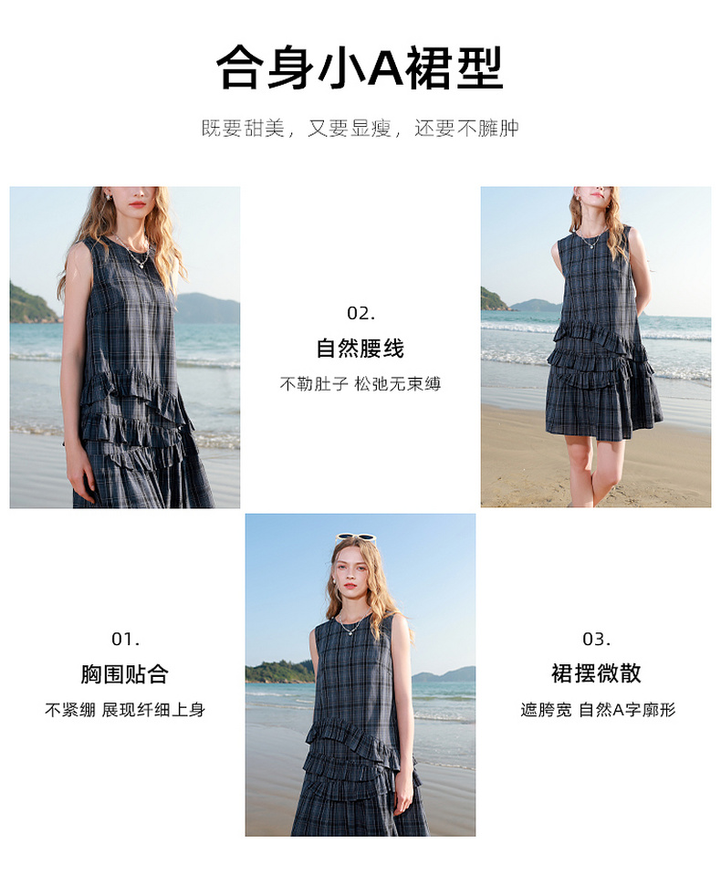 【100棉】三彩2026春季新款圆领背心裙娃娃裙格纹A字裙连衣裙M