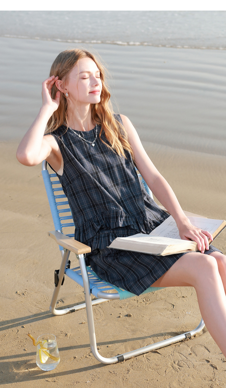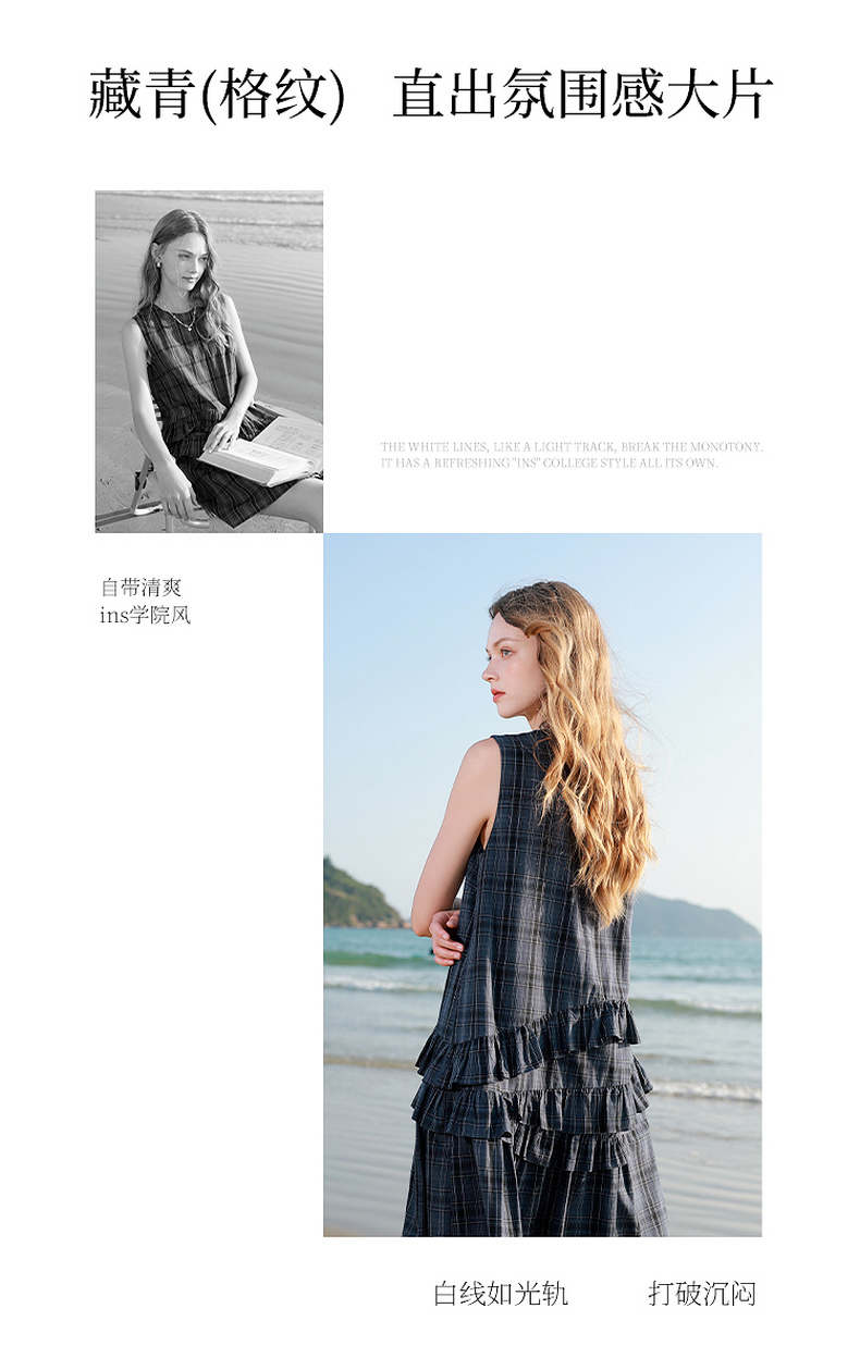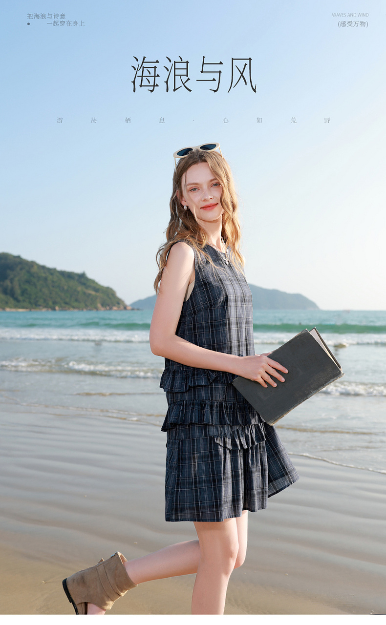 【100棉】三彩2026春季新款圆领背心裙娃娃裙格纹A字裙连衣裙M