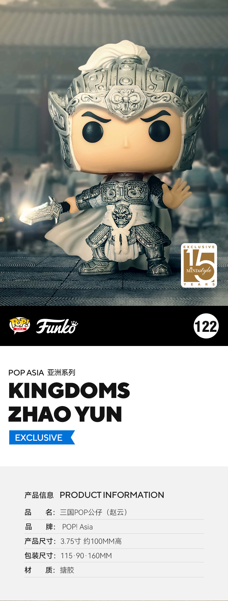 Funko POP! Asia Three Kingdoms Zhao Yun 亚洲系列 三国演义 赵云限定款公仔手办摆件 62276