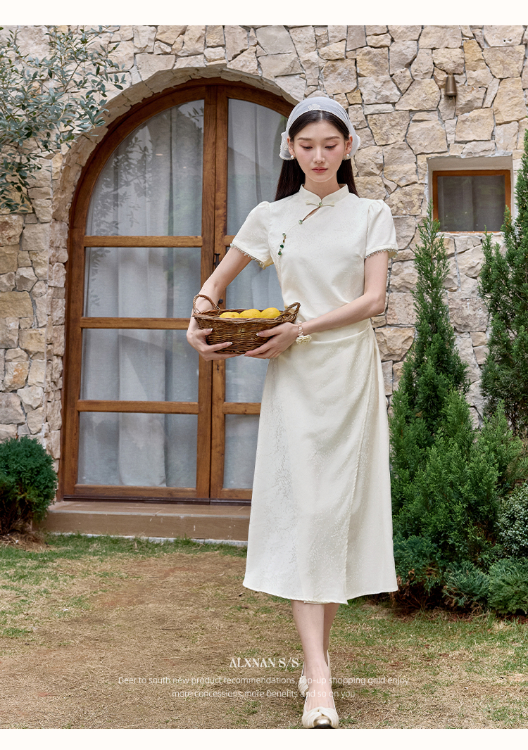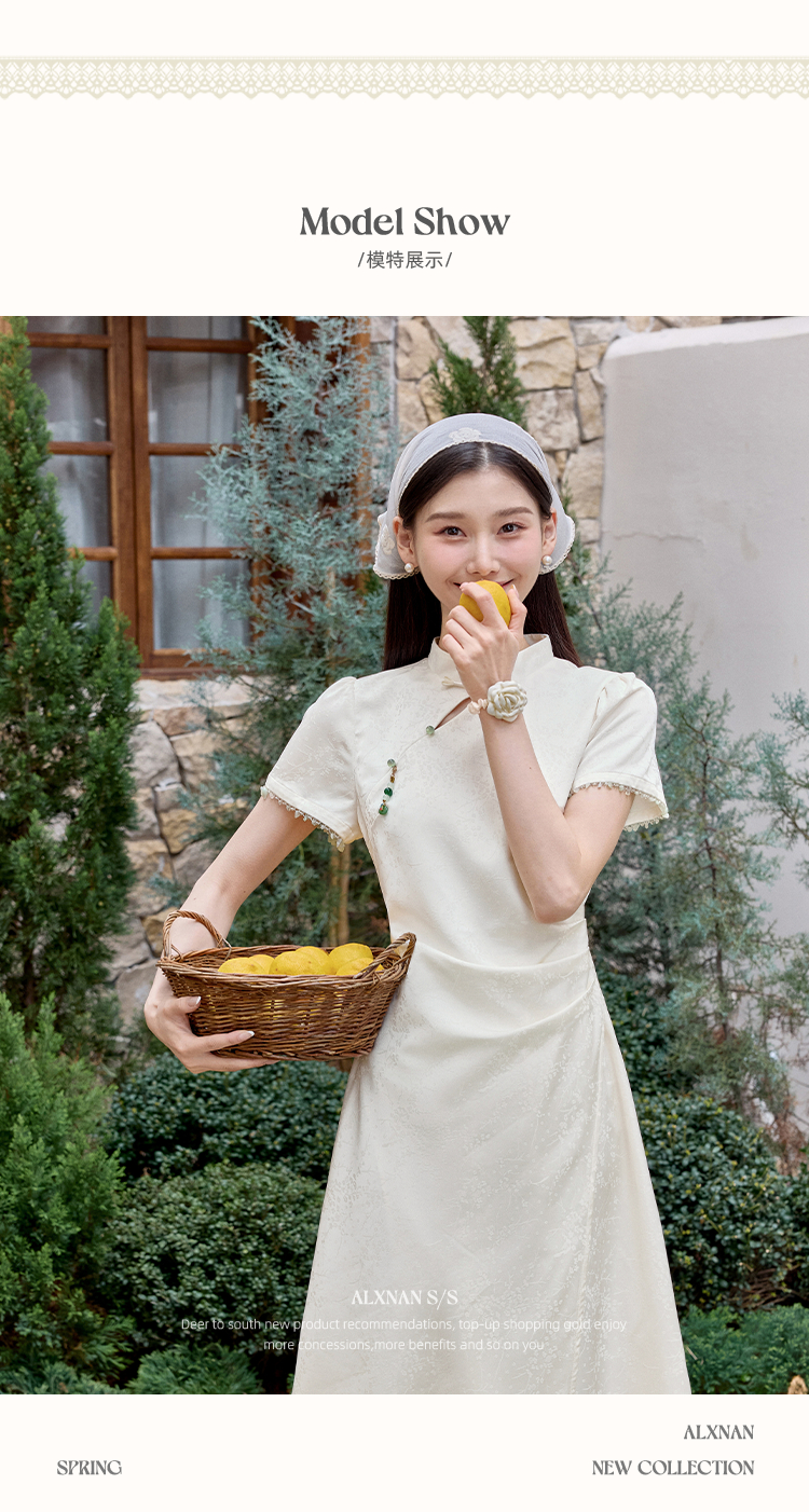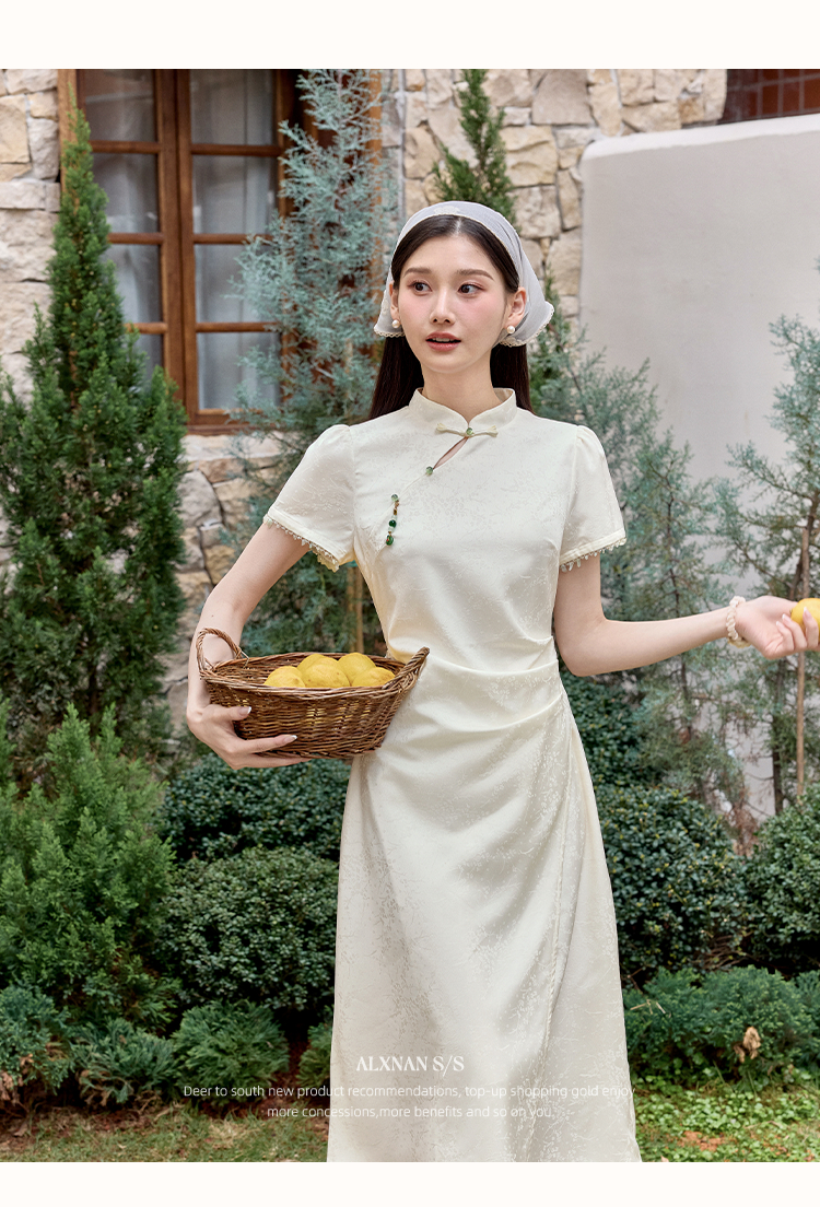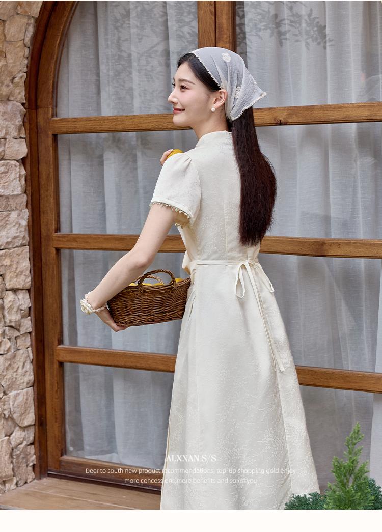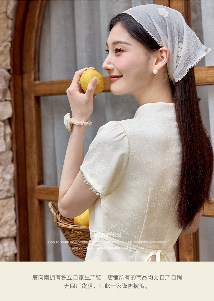 【65折秒杀】鹿向南「烟凝暮青」新中式立领连衣裙女夏季新款正肩高腰显瘦长裙L53976