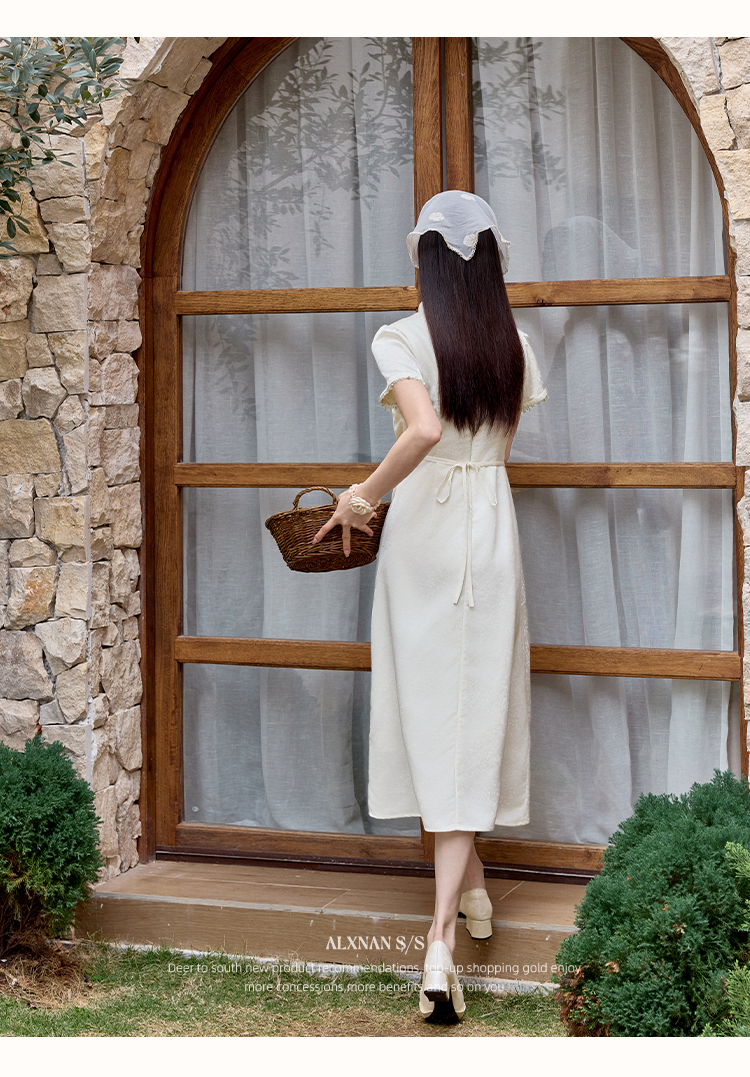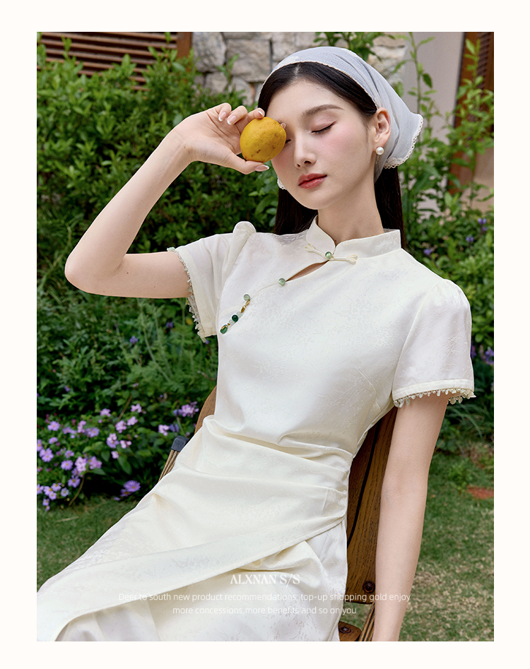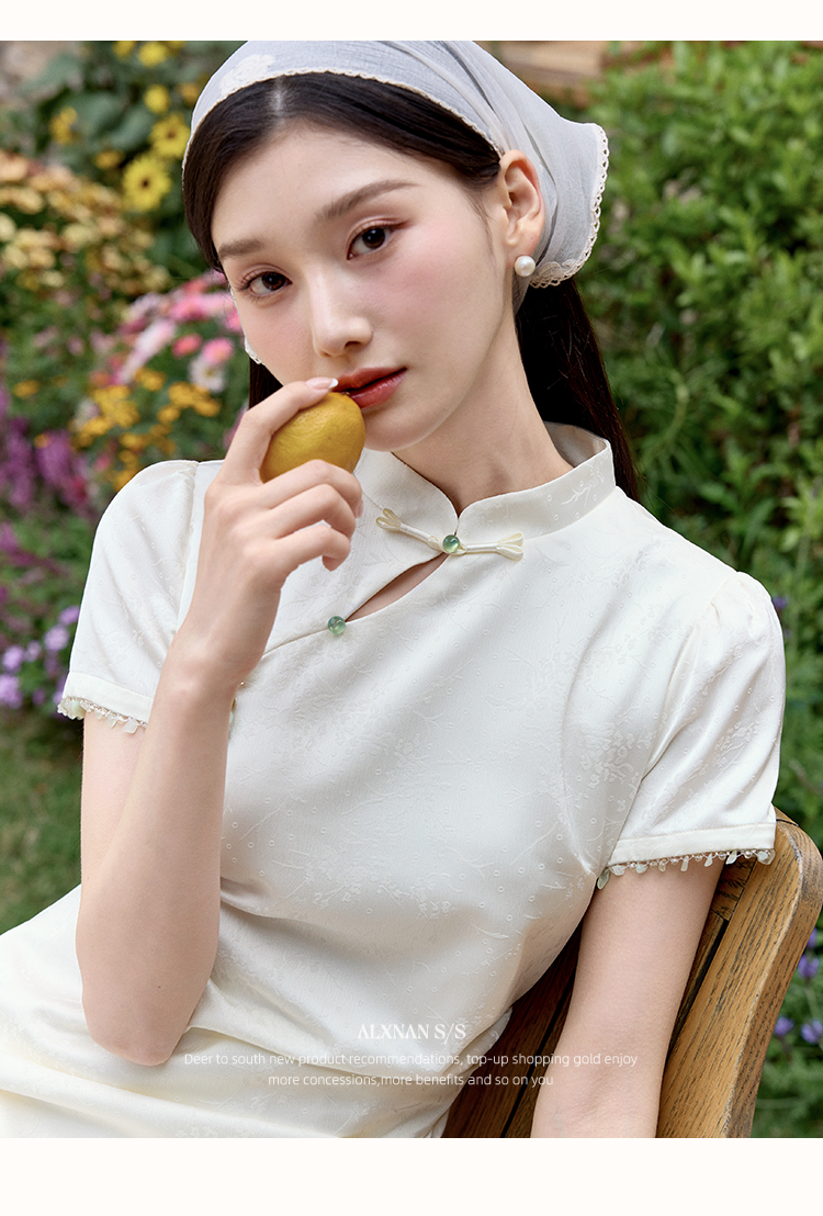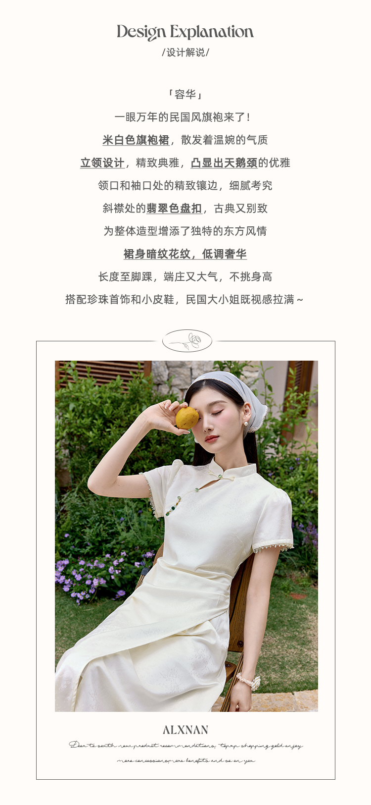 【65折秒杀】鹿向南「烟凝暮青」新中式立领连衣裙女夏季新款正肩高腰显瘦长裙L53976
