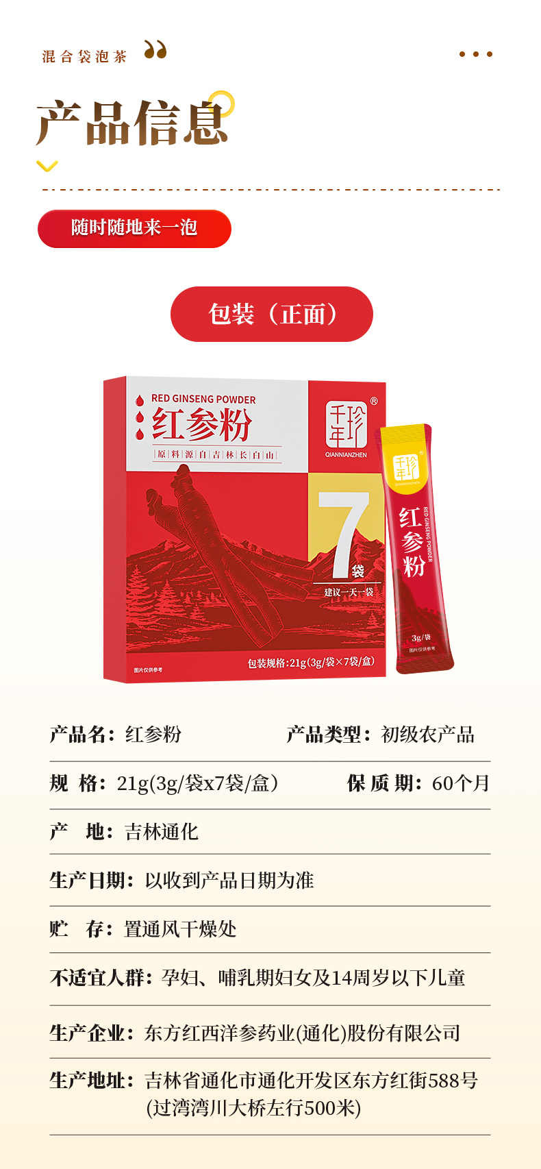 千年珍X吉山宝X长白山人参 西洋参片礼盒大片 100g(50g*2瓶)/盒