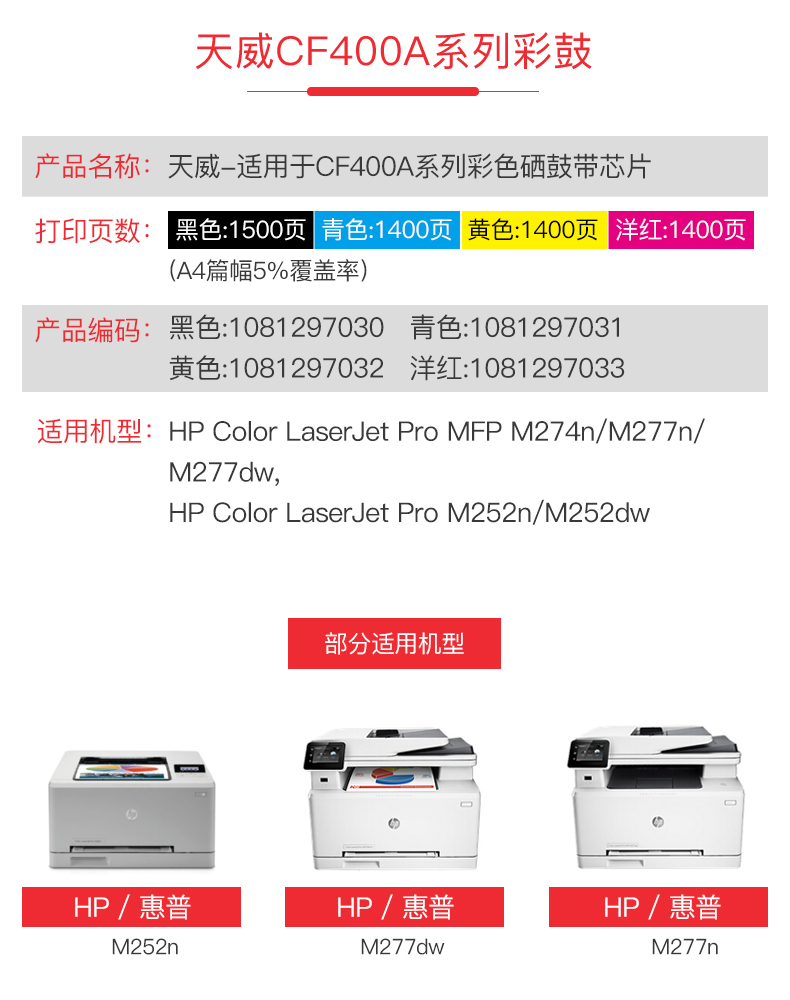 天威CF400A/201a硒鼓 适用惠普m252dw m277dw m252/n/dn m274n M277n打印机硒鼓
