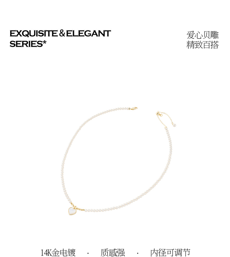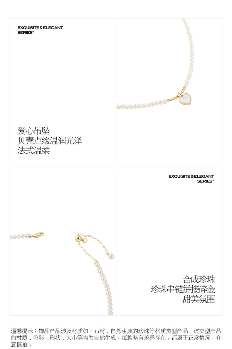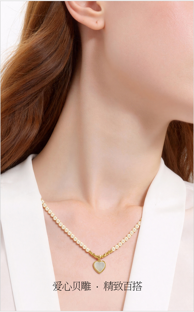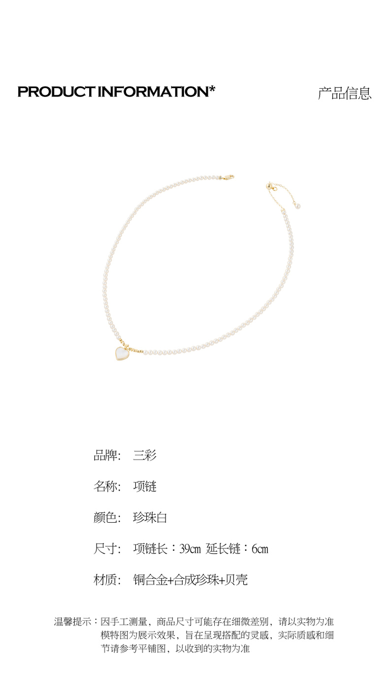 三彩2026新款法式贝壳爱心吊坠项链珍珠串珠碎金链条锁骨链甜美女
