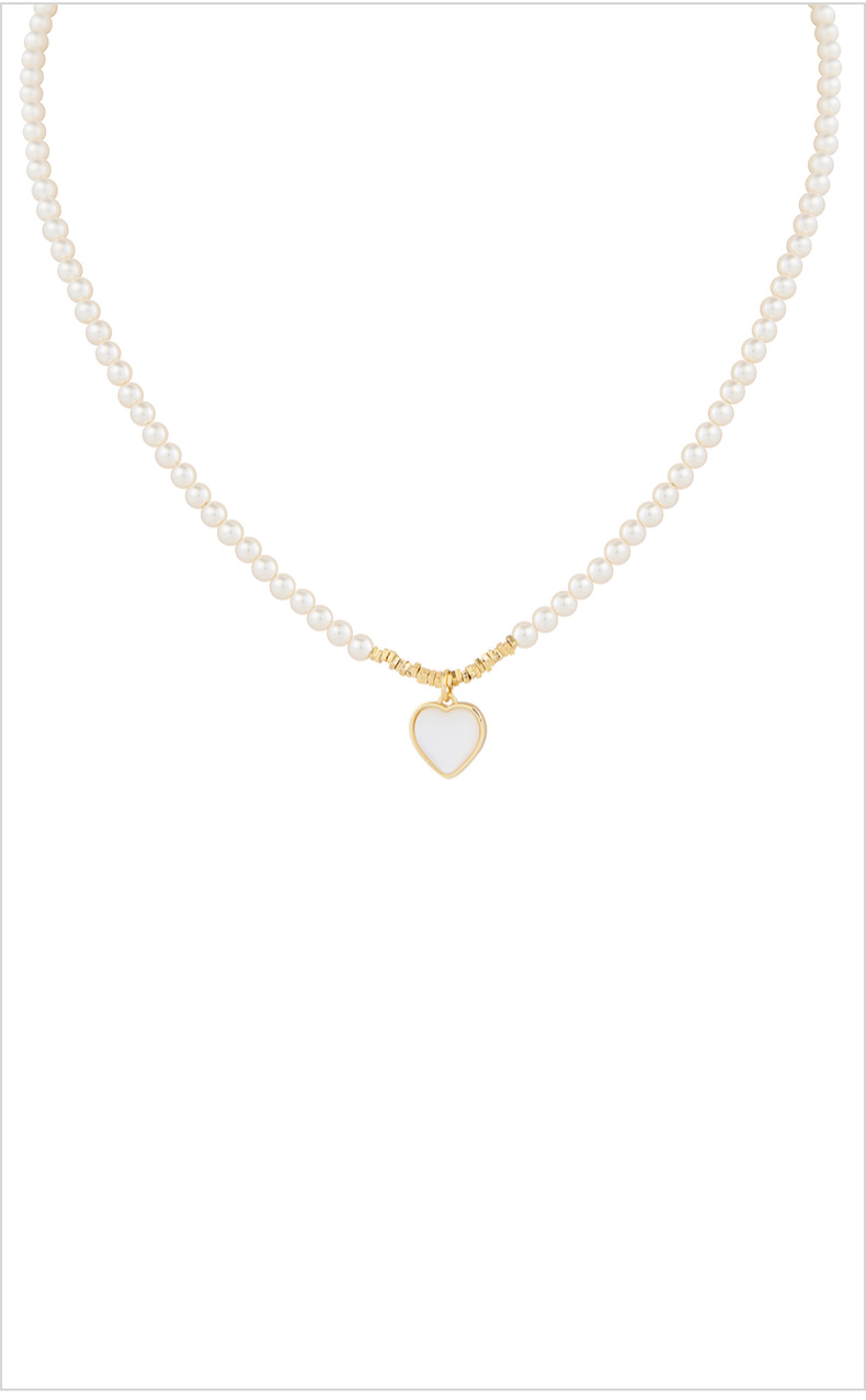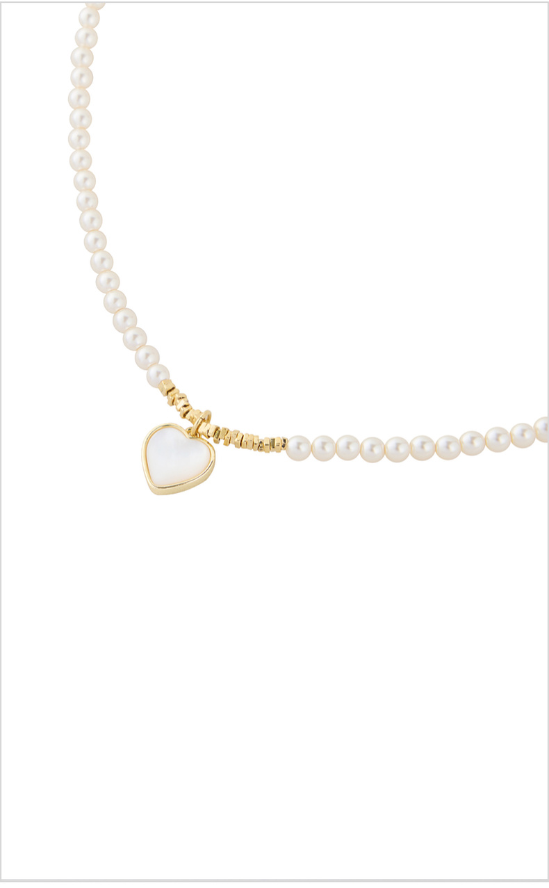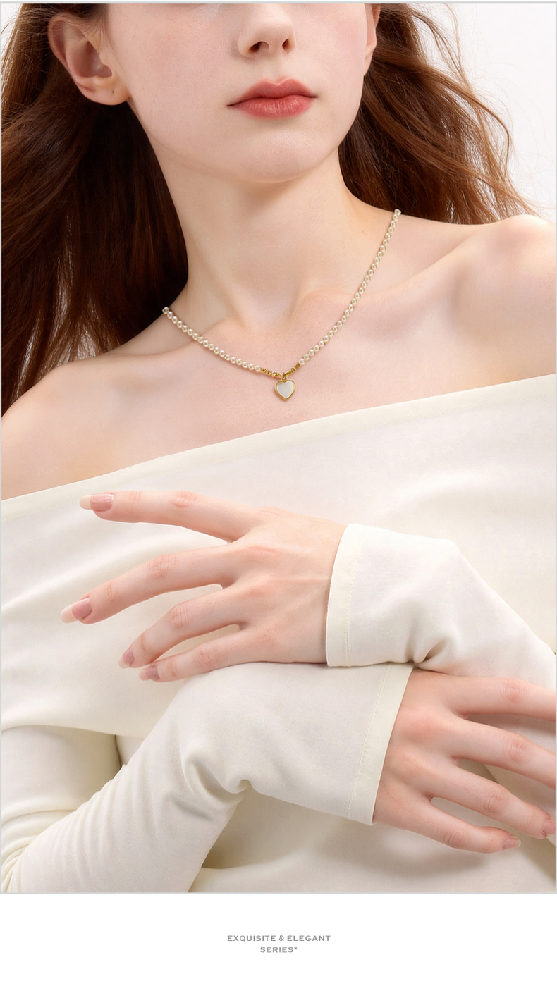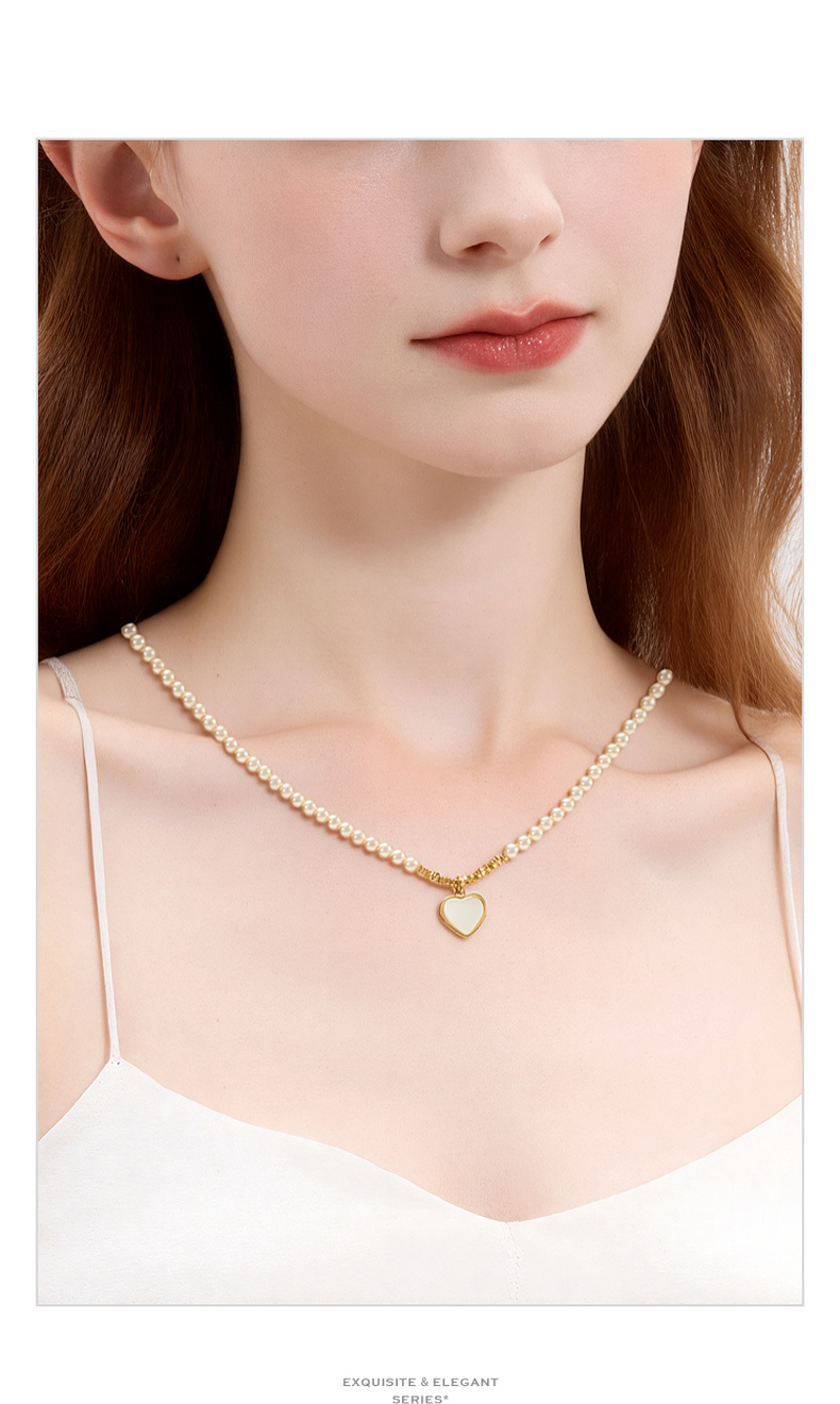 三彩2026新款法式贝壳爱心吊坠项链珍珠串珠碎金链条锁骨链甜美女