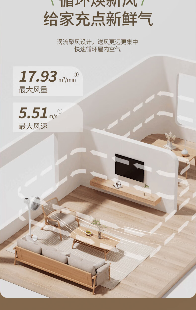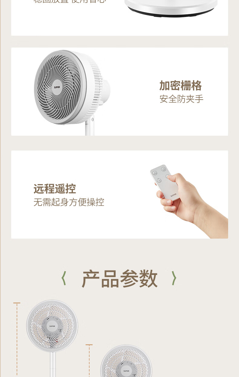 苏泊尔(SUPOR)空气循环扇电风扇家用大风力遥控落地扇涡轮换气扇办公室宿舍立式轻音风扇