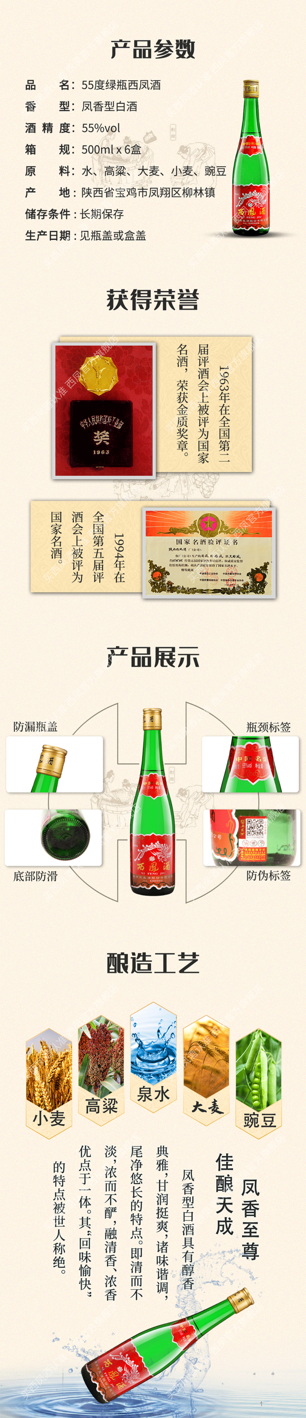 【单瓶48】西凤酒 绿瓶盒装 凤香型白酒 55度 500mL*6整箱