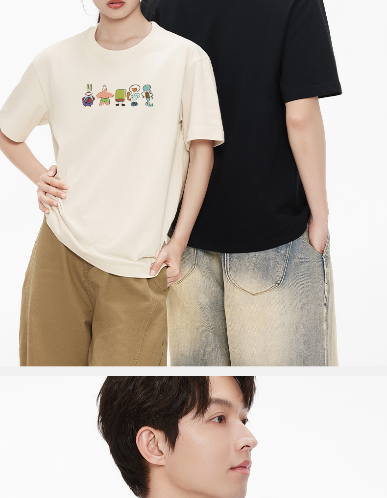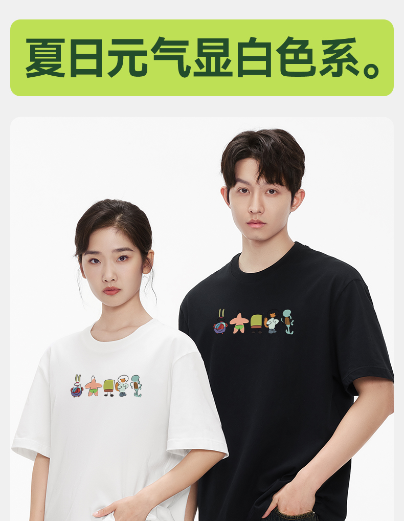 「棉的美学」海绵宝宝印花短袖t恤女ins潮宽松显瘦设计感纯棉上衣