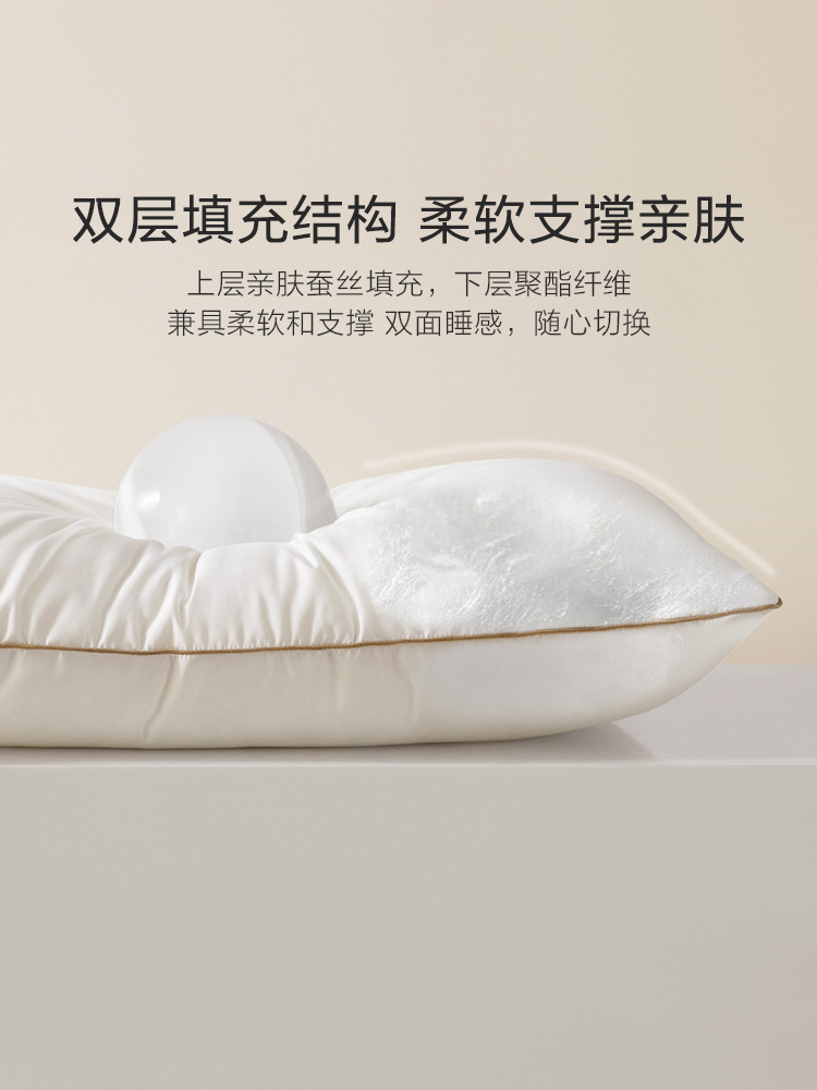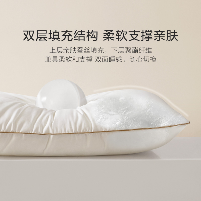 罗莱X- W-金边蚕丝云柔护颈对枕-中枕 白色 47×73cm