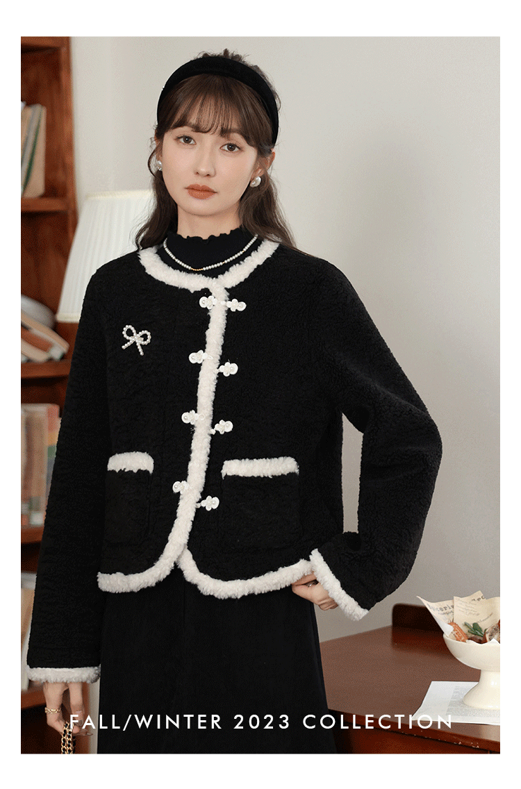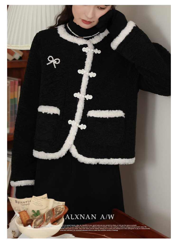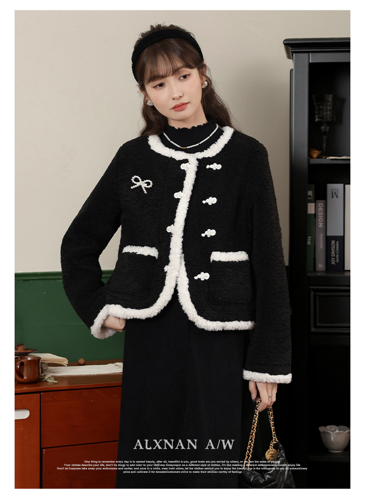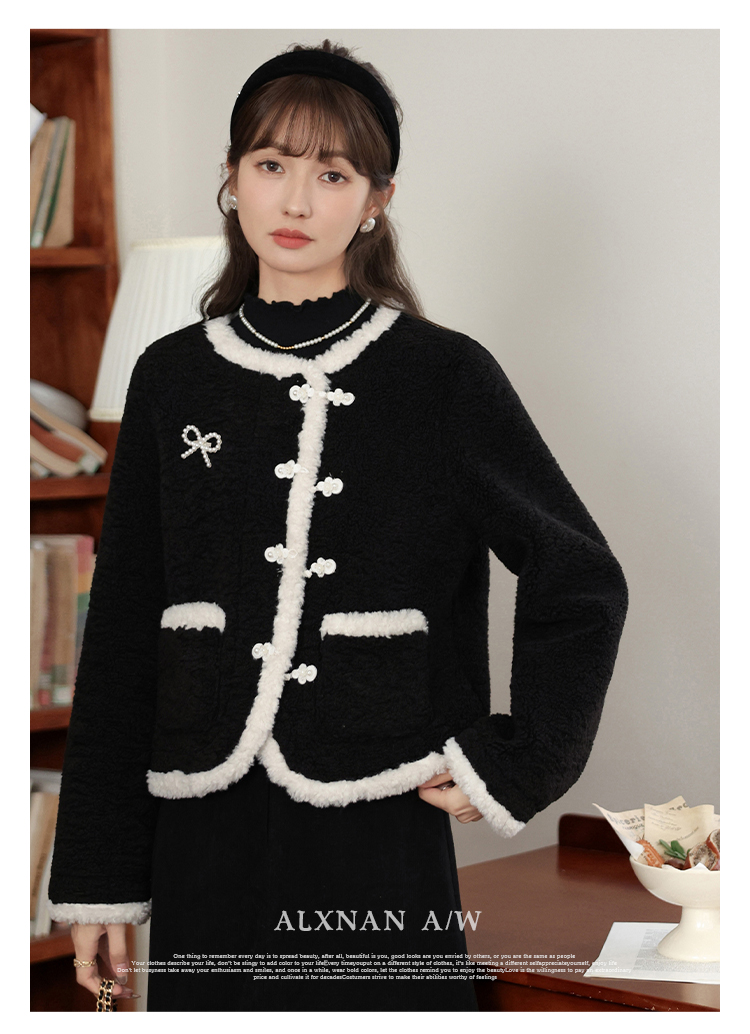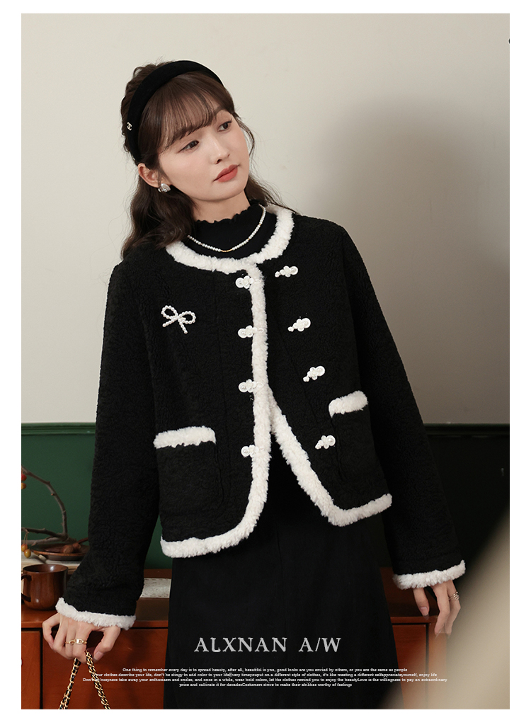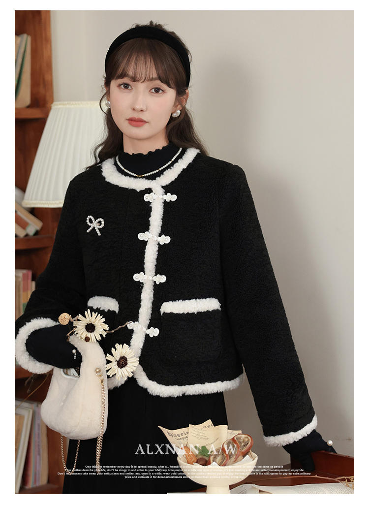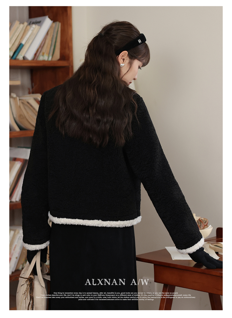 鹿向南《黑巧慕斯》小香风高级感短外套女2023秋冬今年流行外套LXN32388