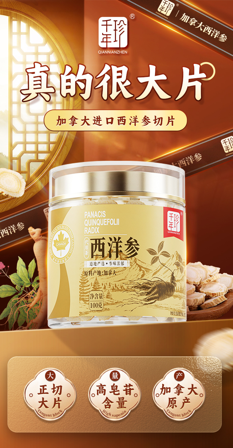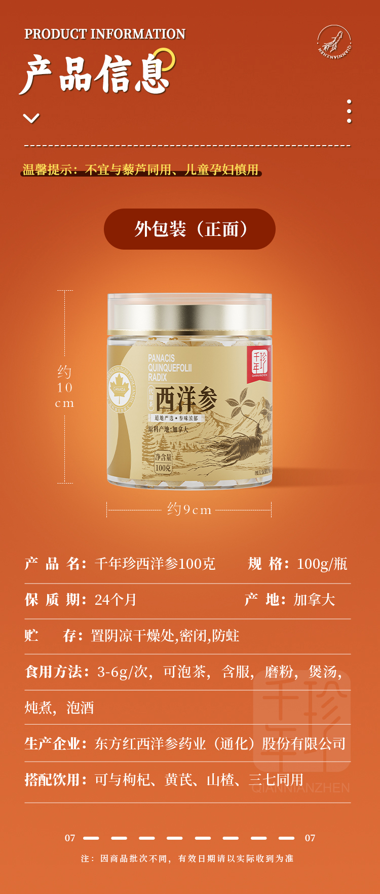 千年珍X吉山宝X长白山人参 西洋参片礼盒大片 100g(50g*2瓶)/盒