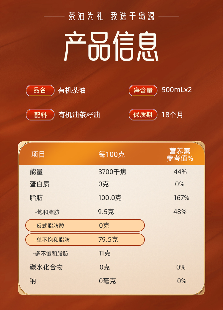 千岛源 有机茶油(礼盒)500ml×2