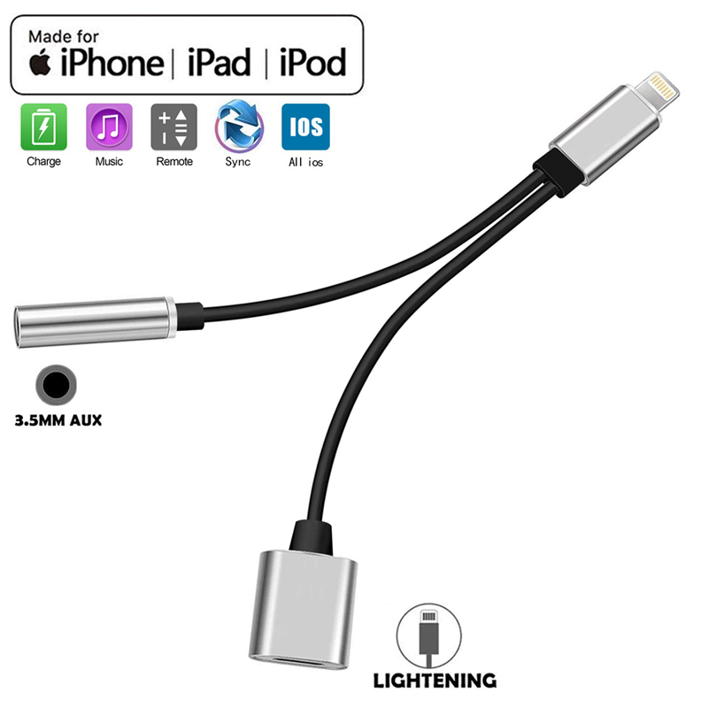 苹果Lighting转3.5mm音频线/Lighting 充电听歌二合一转接头 银灰色