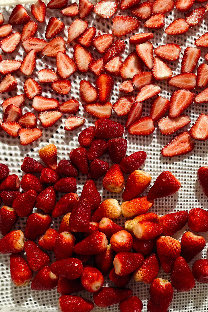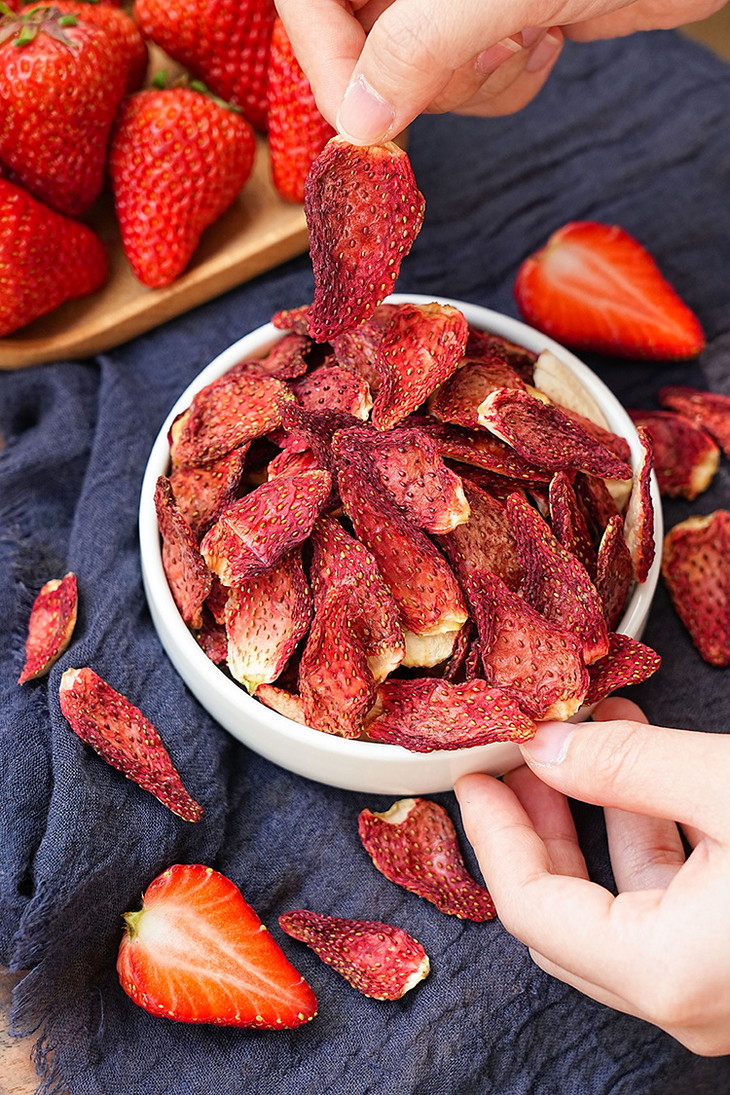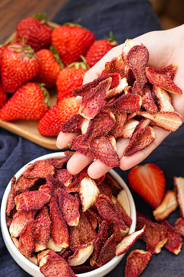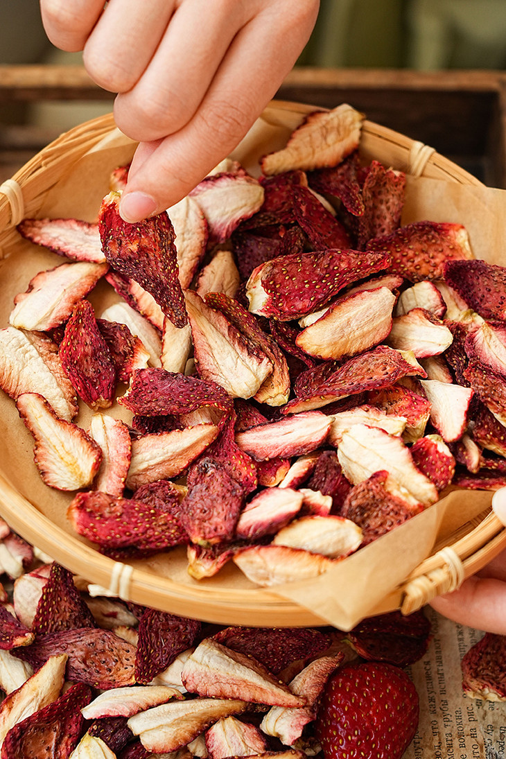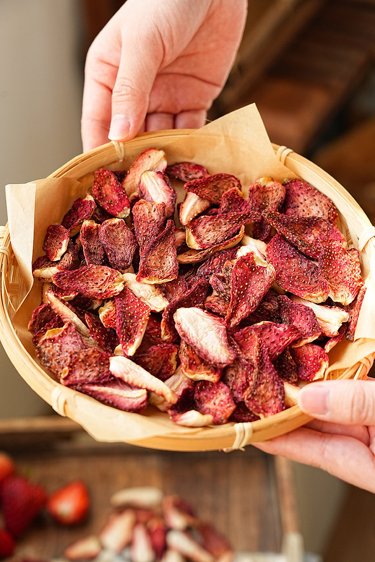 ✅「科技很发达,但我们选择笨方法」 花20小时慢慢烘干一颗草莓。 脱水,渐进式升温。定型,收干,进行水分控制,这个阶段温度会更低。最低35℃,最高是58℃。 为什么要这么做?工厂师傅说:「针对不同的水果,进行多段式烘干,这样能保留原料营养的基础上,保留水果的风味」