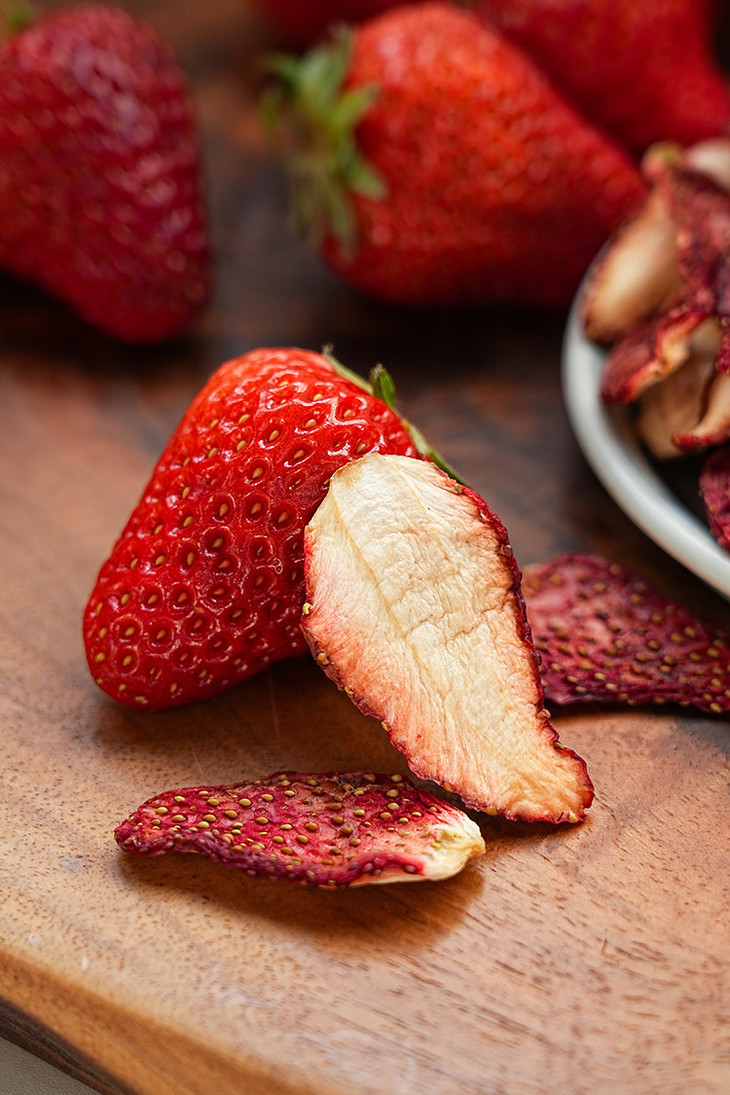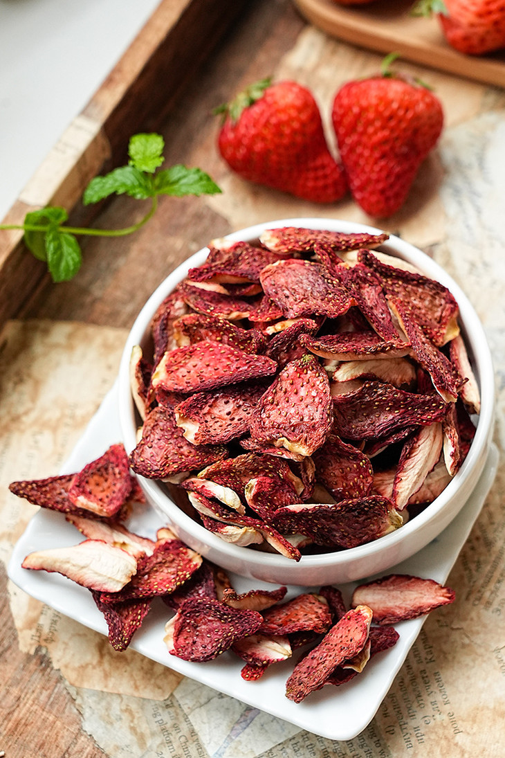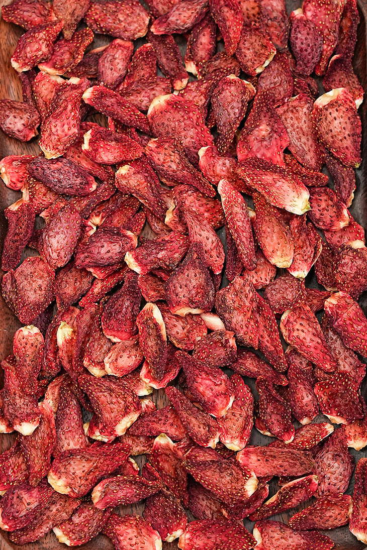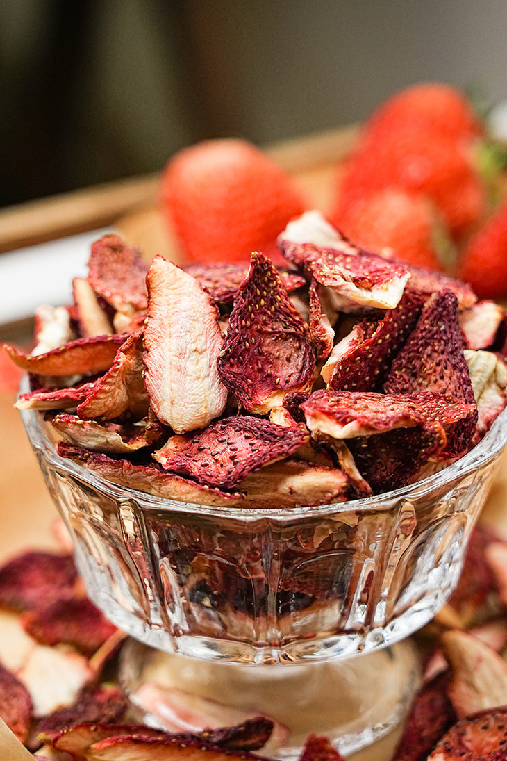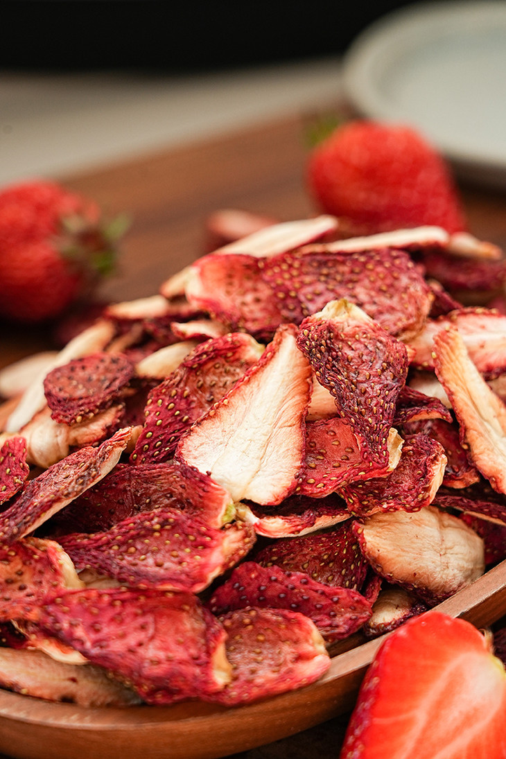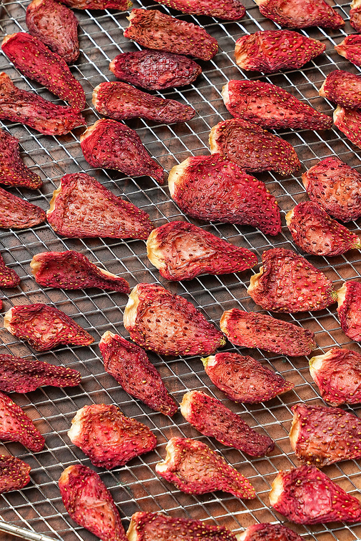✅「科技很发达,但我们选择笨方法」 花20小时慢慢烘干一颗草莓。 脱水,渐进式升温。定型,收干,进行水分控制,这个阶段温度会更低。最低35℃,最高是58℃。 为什么要这么做?工厂师傅说:「针对不同的水果,进行多段式烘干,这样能保留原料营养的基础上,保留水果的风味」