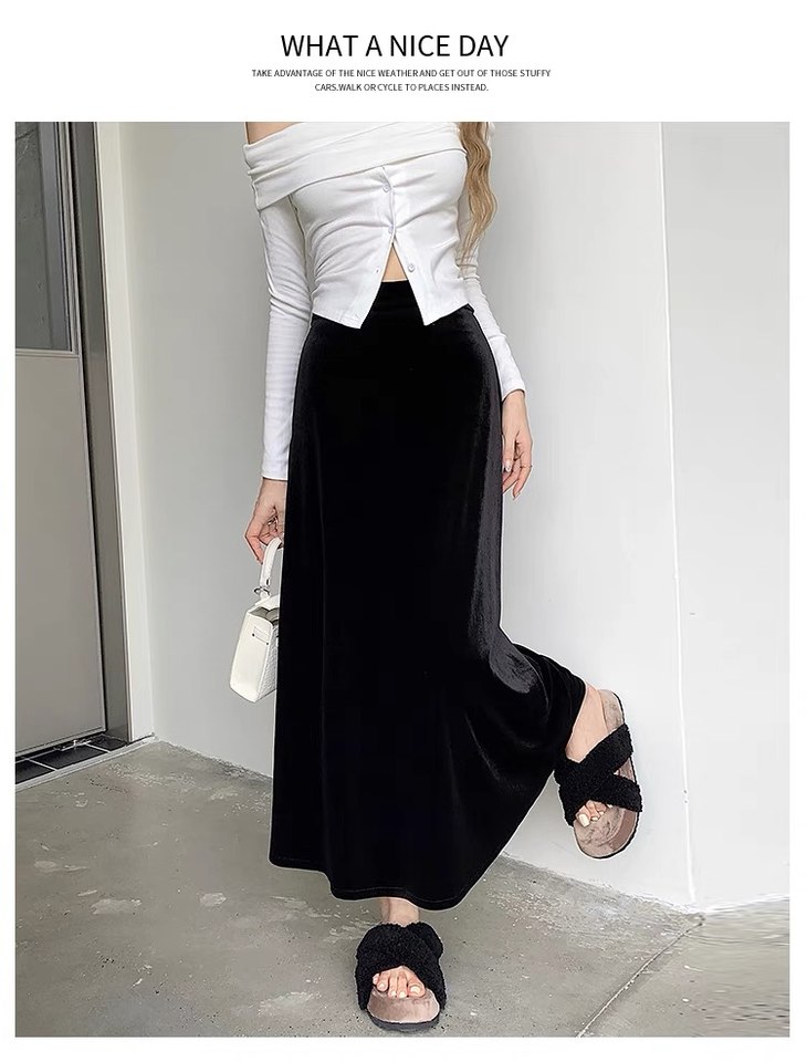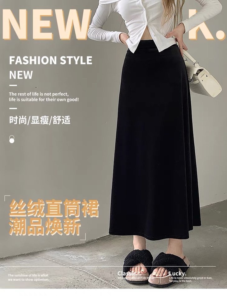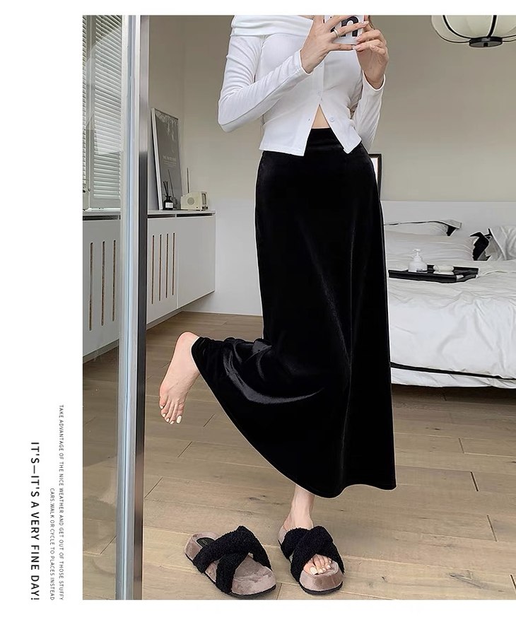 【商品名】金丝绒高腰垂感半身裙