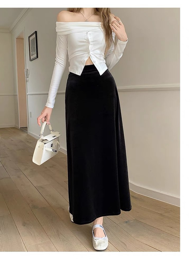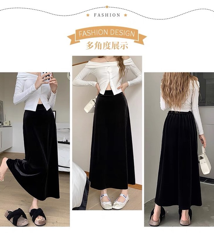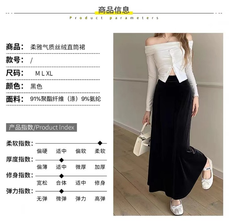 早春款法式丝绒垂感半身裙