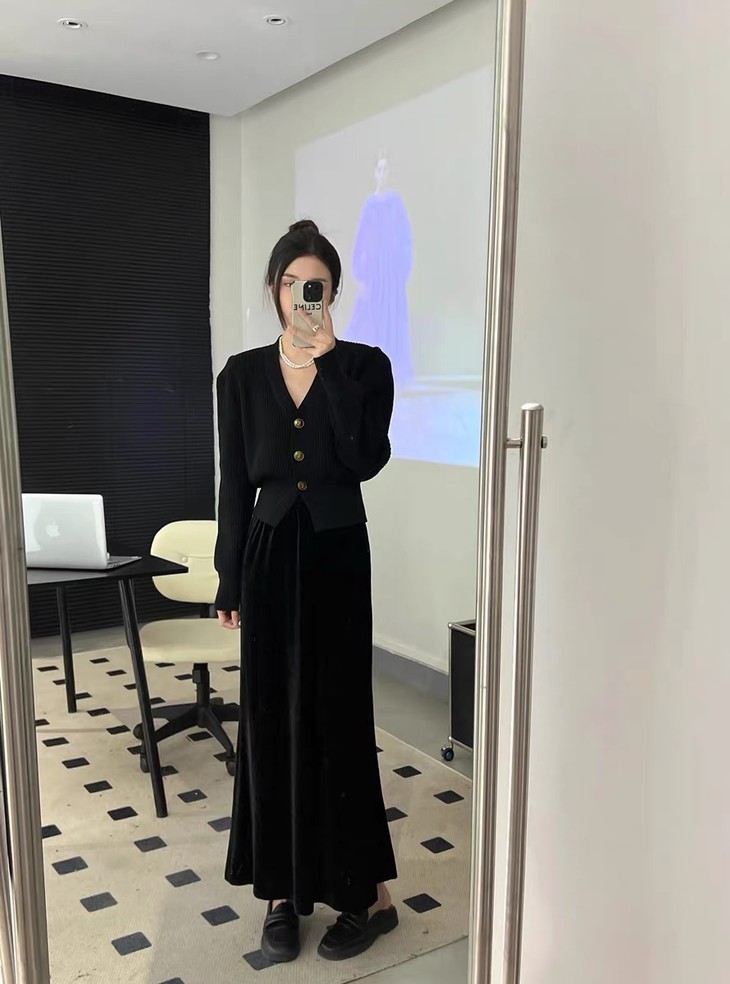 丝绒半身裙瞬间提升氛围感!