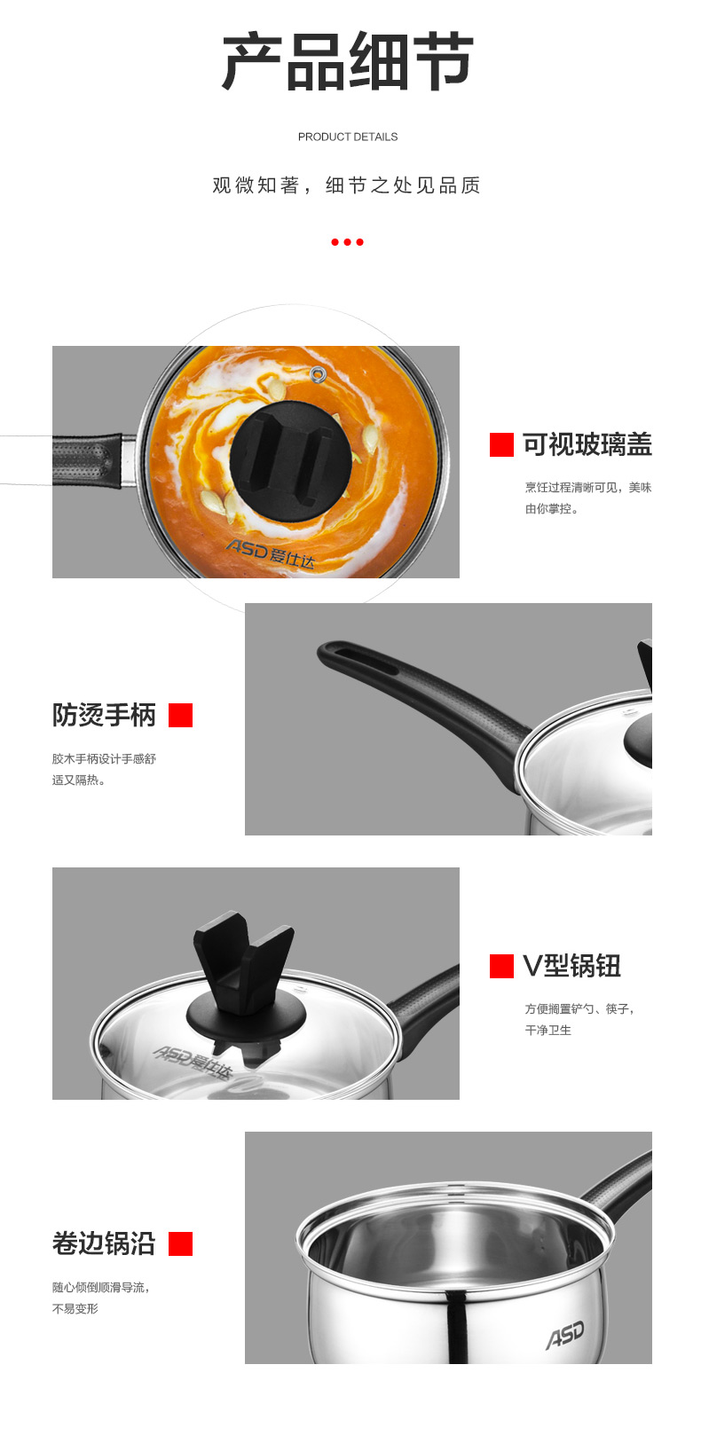 爱仕达悦厨不锈钢奶锅16cm- NS16Q1TG