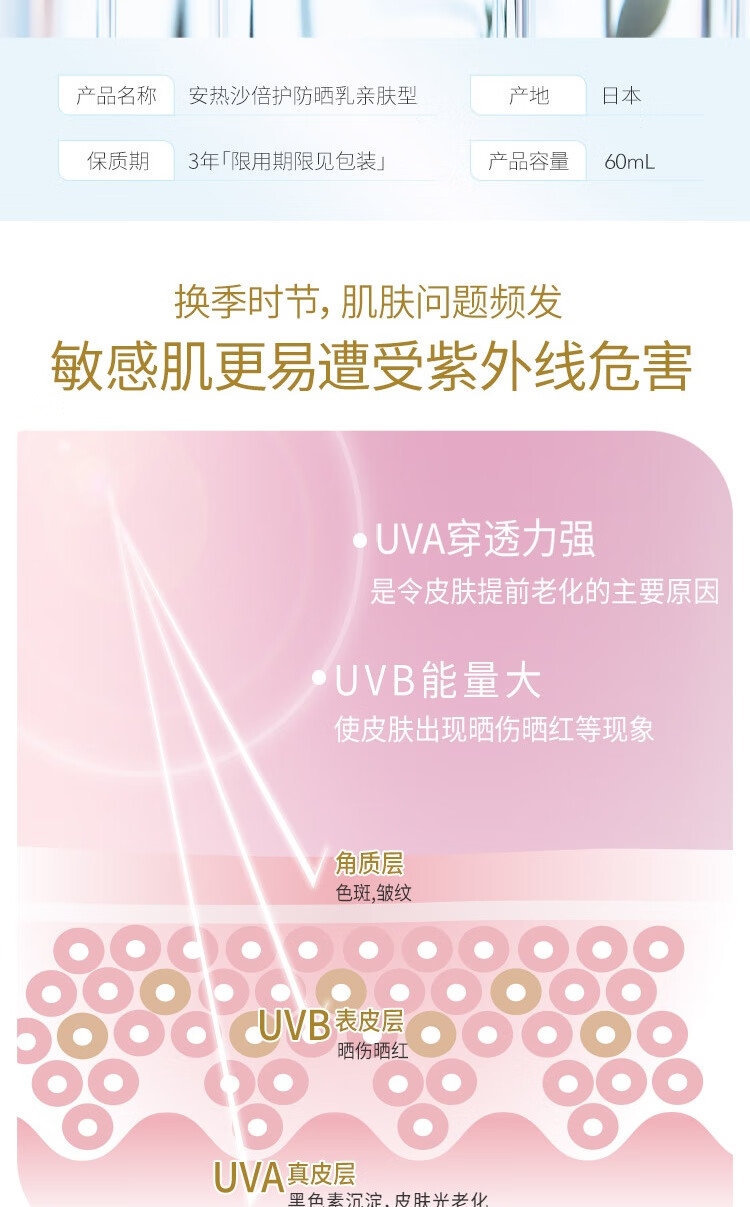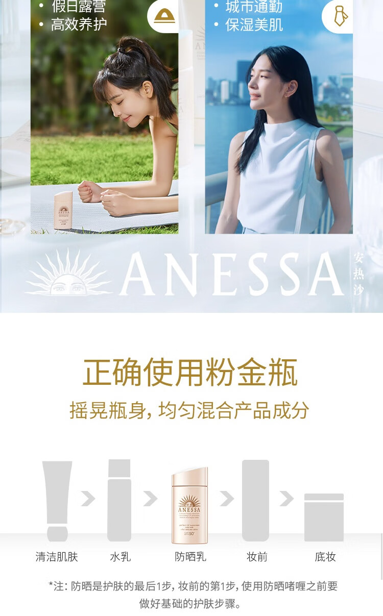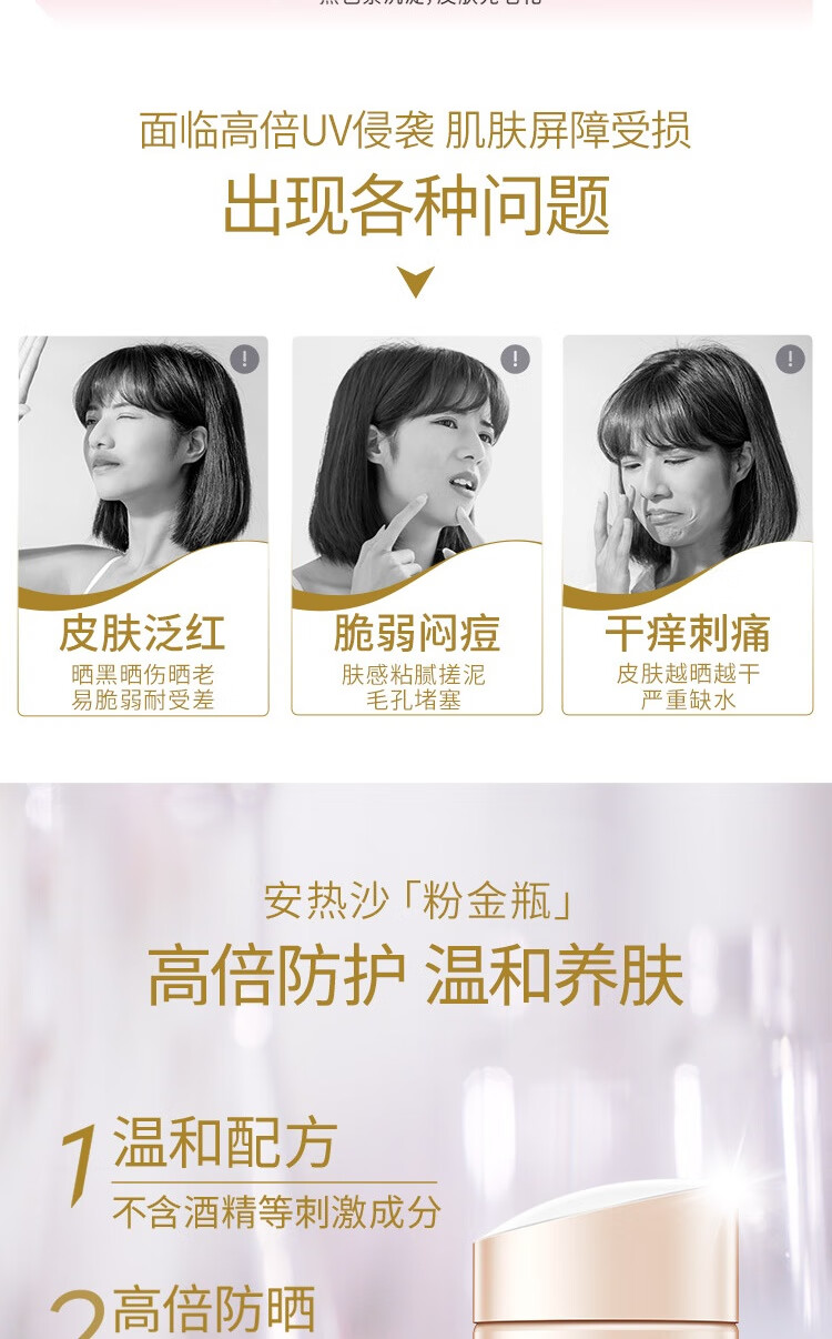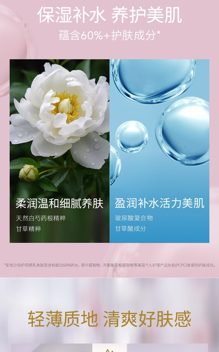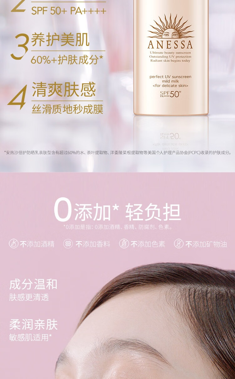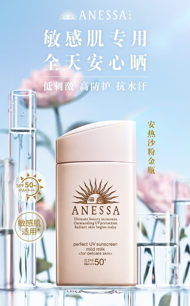 安热沙(Anessa)倍护防晒乳亲肤型 敏感肌粉金瓶60ml