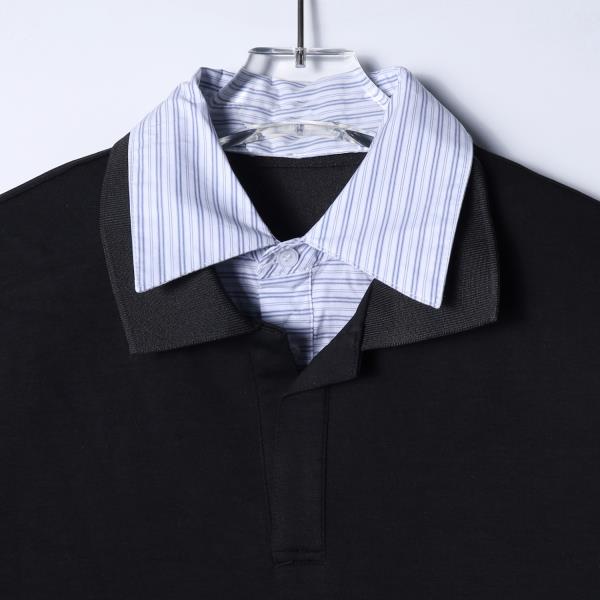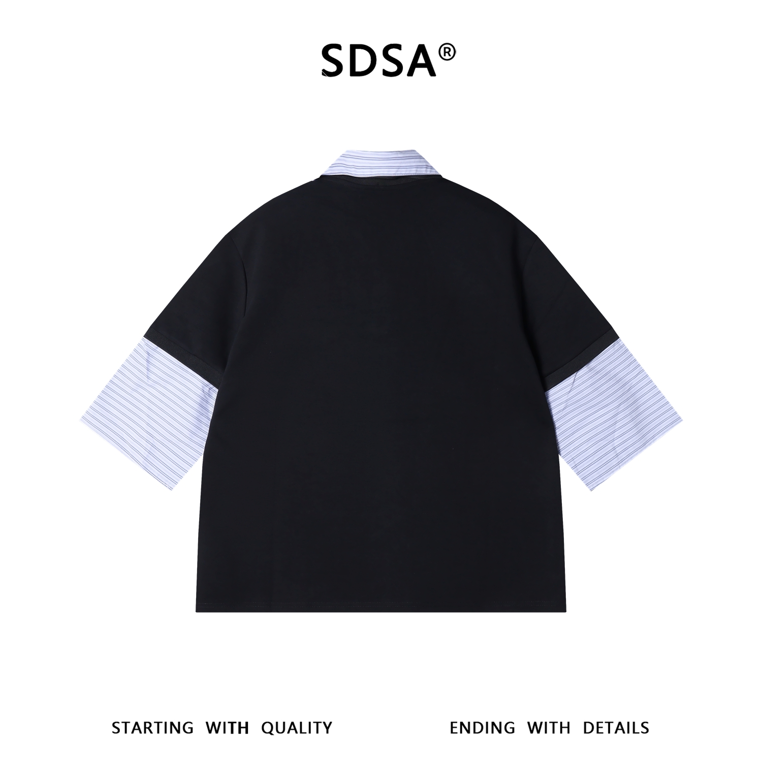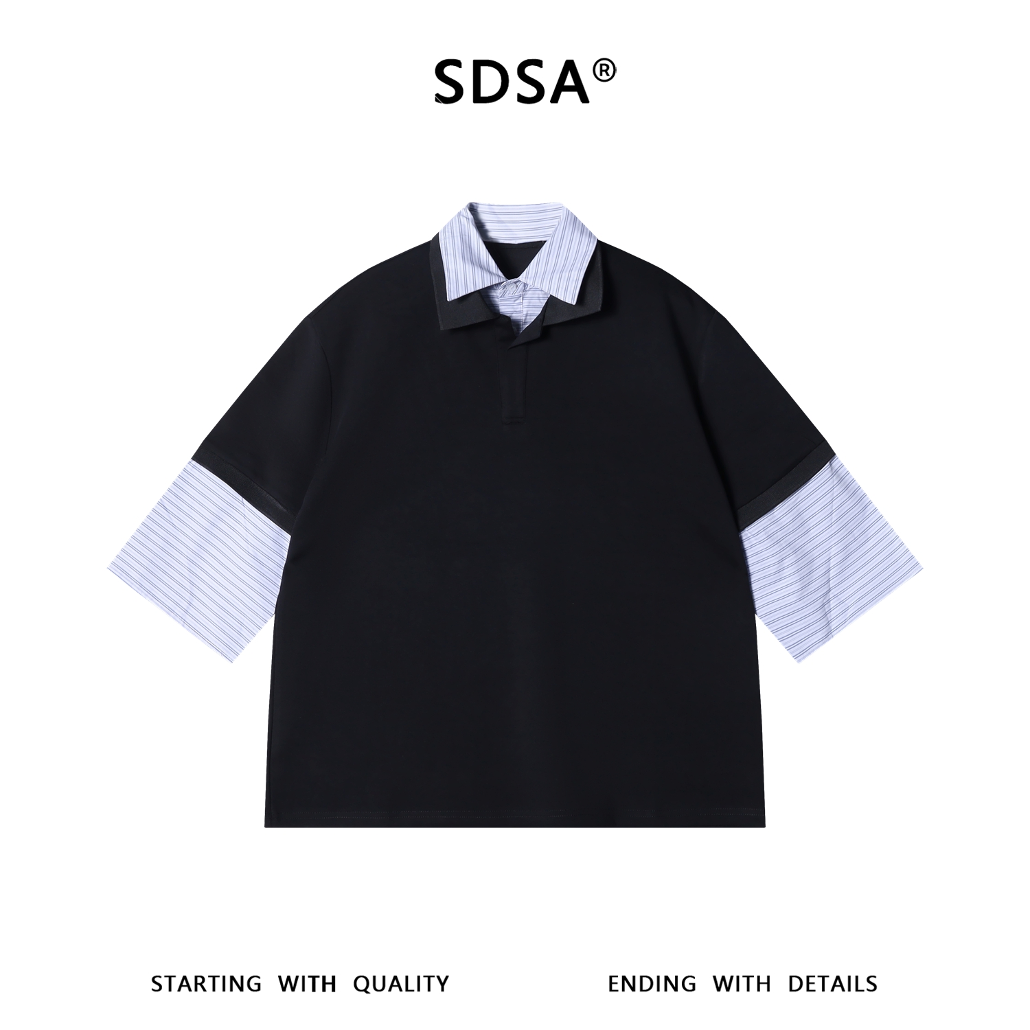 SDSA男装2026新款高贵轻奢假两件条纹拼接翻领小众设计感宽松短袖