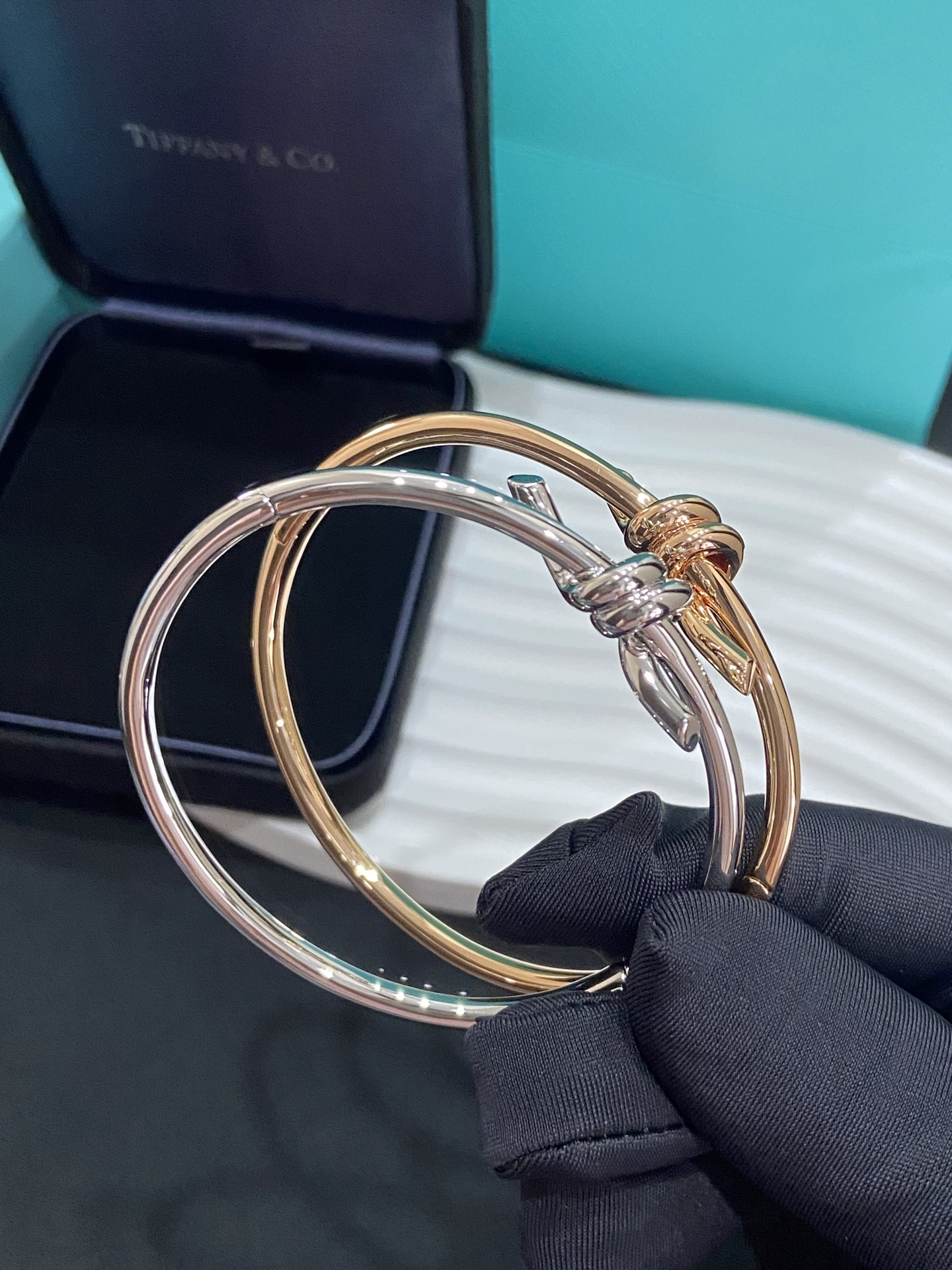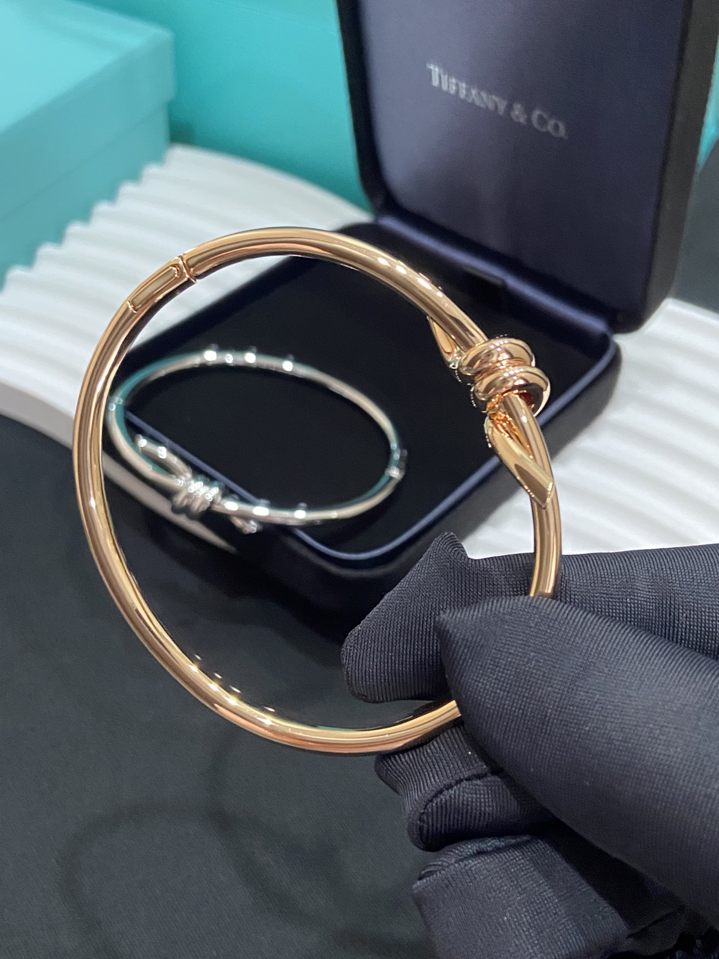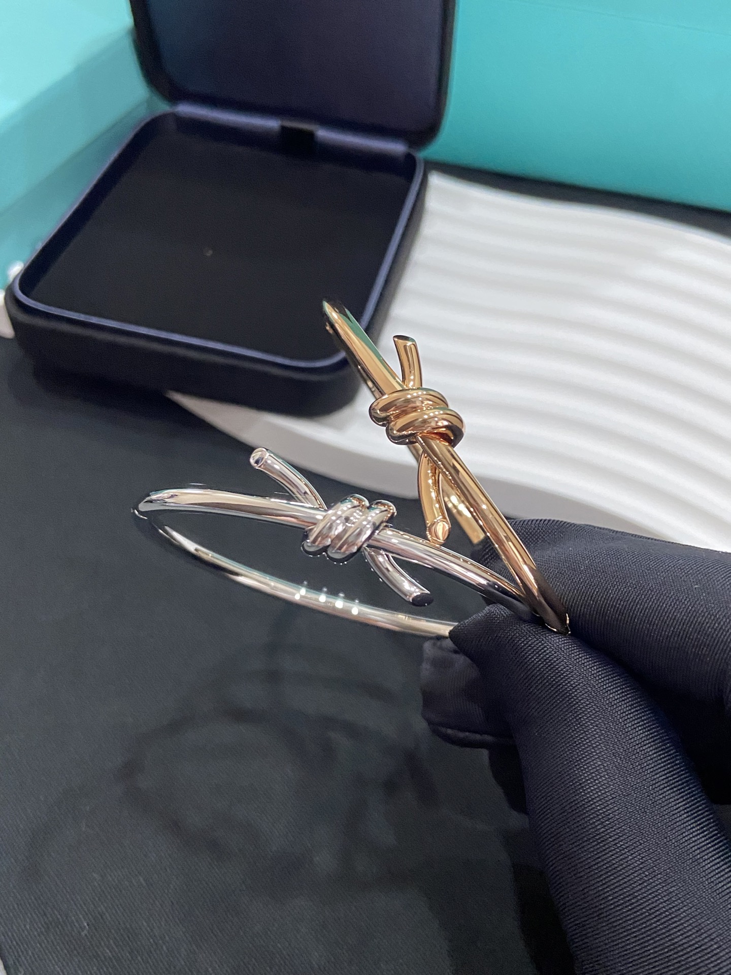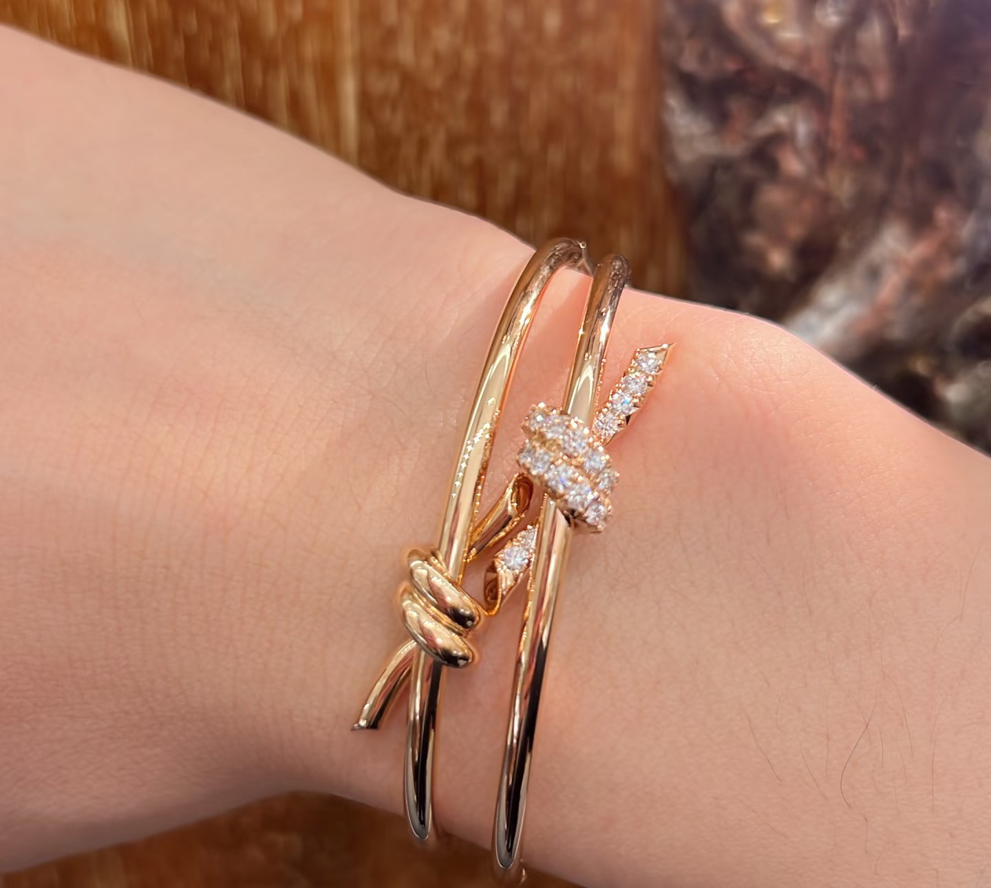 Tiffany Knot单圈的手镯,满钻,Knot上带钻和不带钻的手镯,一整个高级质感! 玫瑰金带钻和不带钻Knot单圈手镯,同系列同色系看带,优雅不失精致,美丽而充满力量, 白金 knot带钻单独戴已经很有质感,喜欢白金高级感的朋友们可以冲呀~
