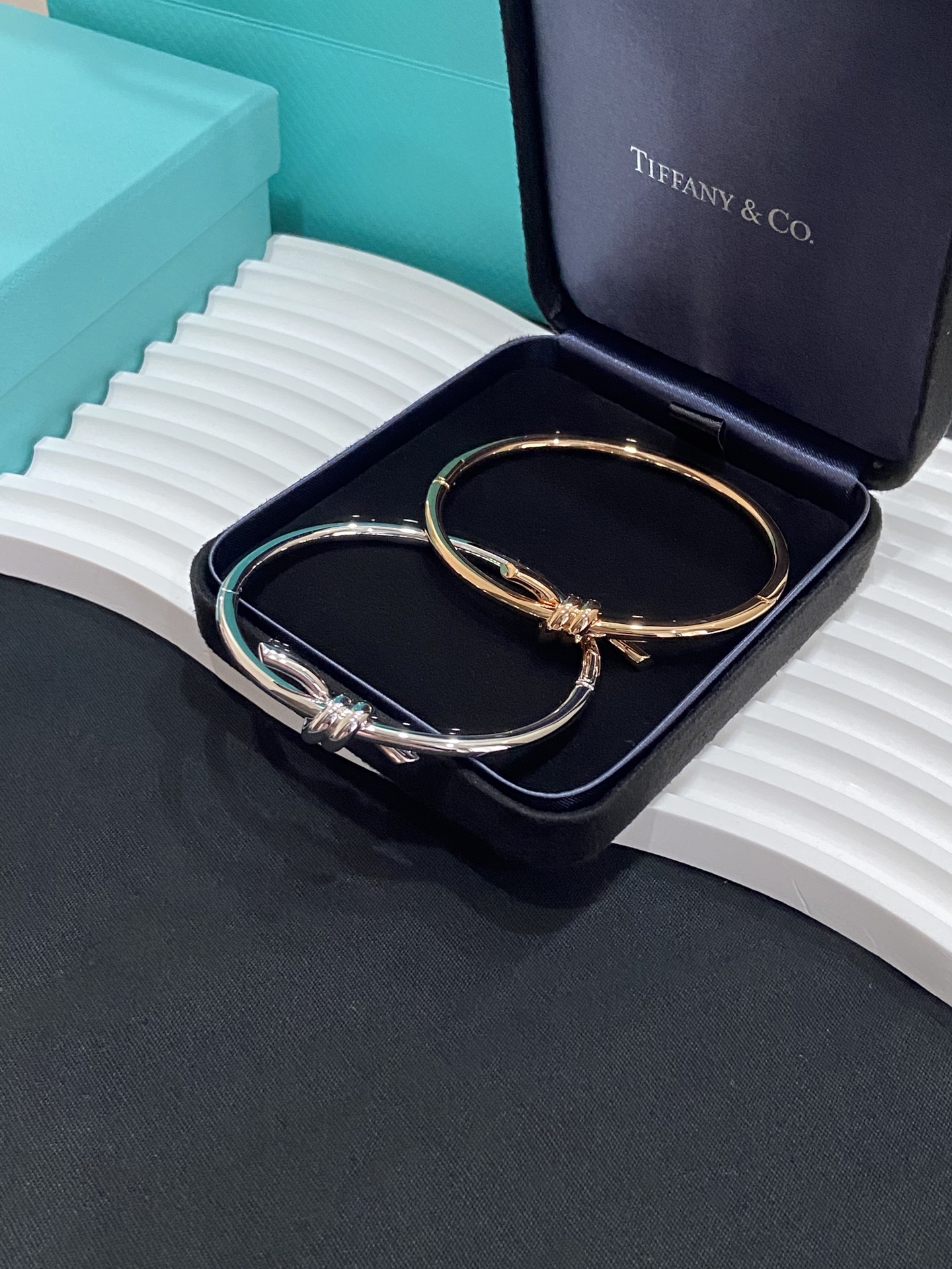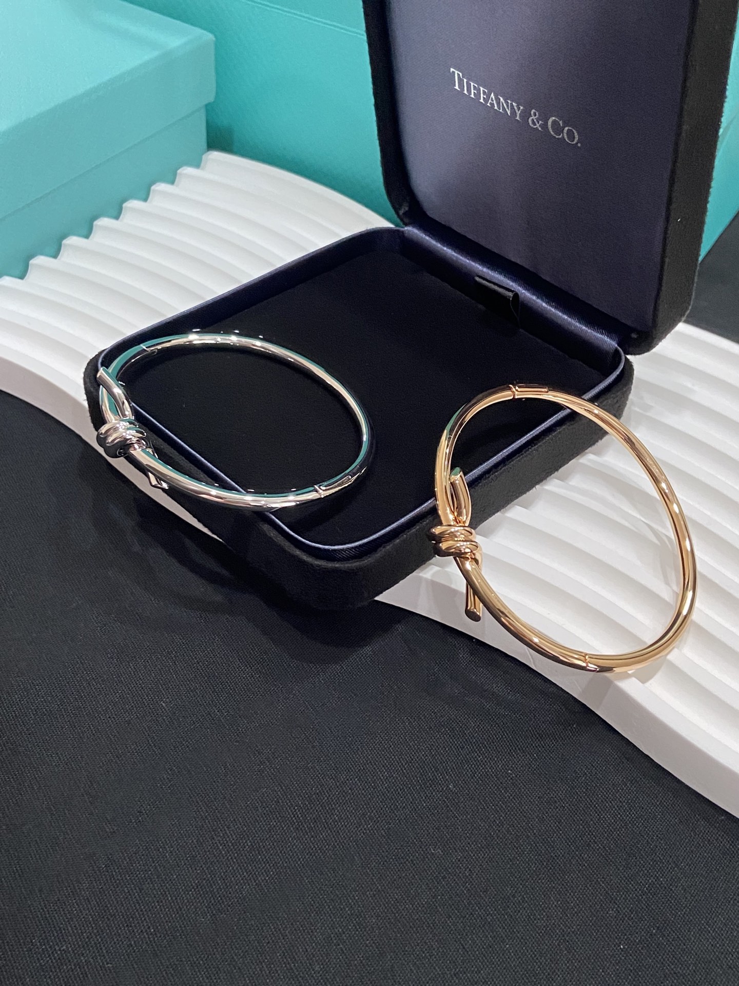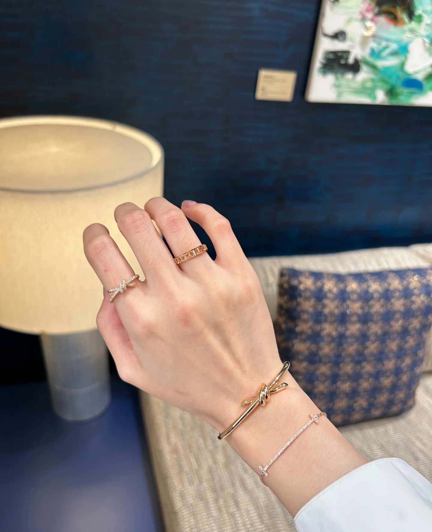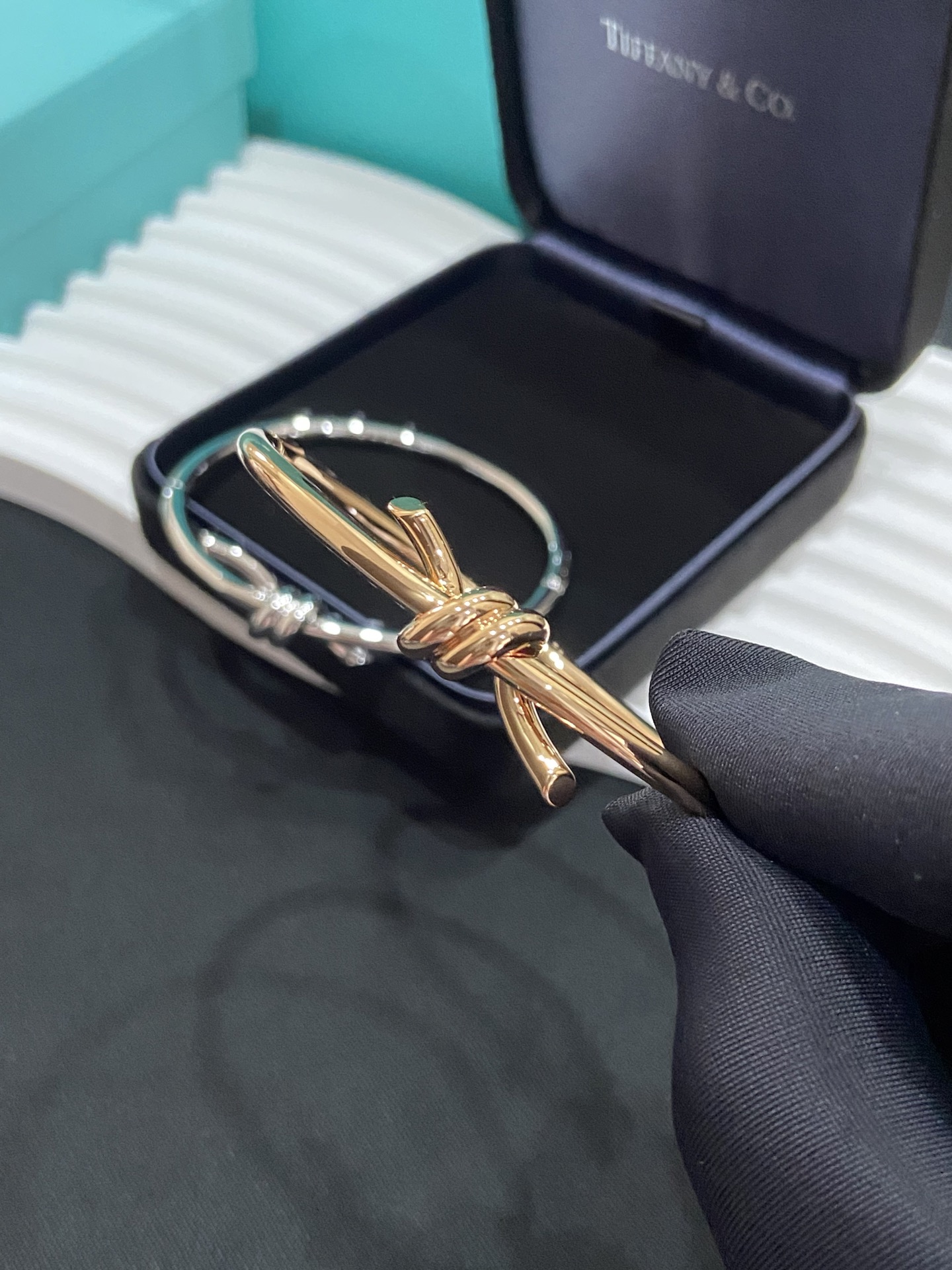 Tiffany Knot单圈的手镯,满钻,Knot上带钻和不带钻的手镯,一整个高级质感! 玫瑰金带钻和不带钻Knot单圈手镯,同系列同色系看带,优雅不失精致,美丽而充满力量, 白金 knot带钻单独戴已经很有质感,喜欢白金高级感的朋友们可以冲呀~