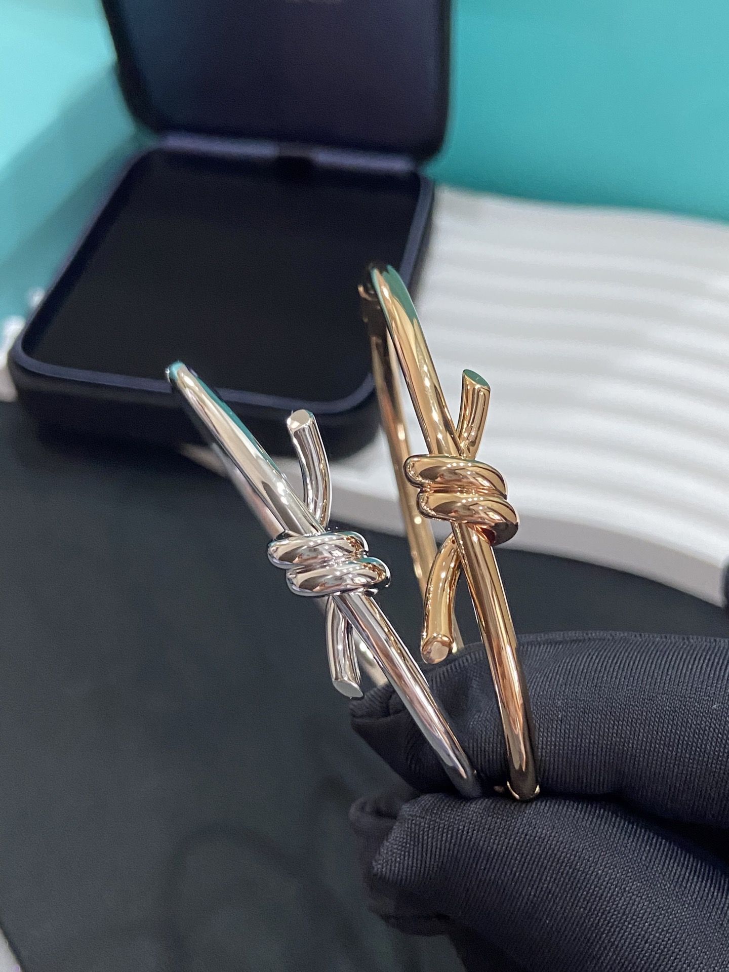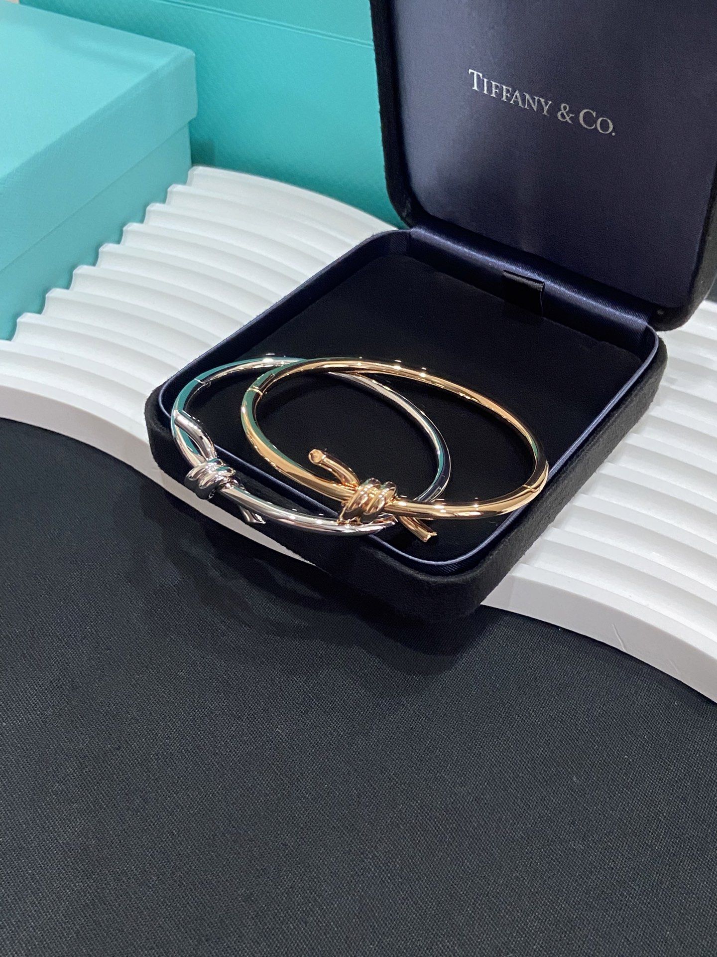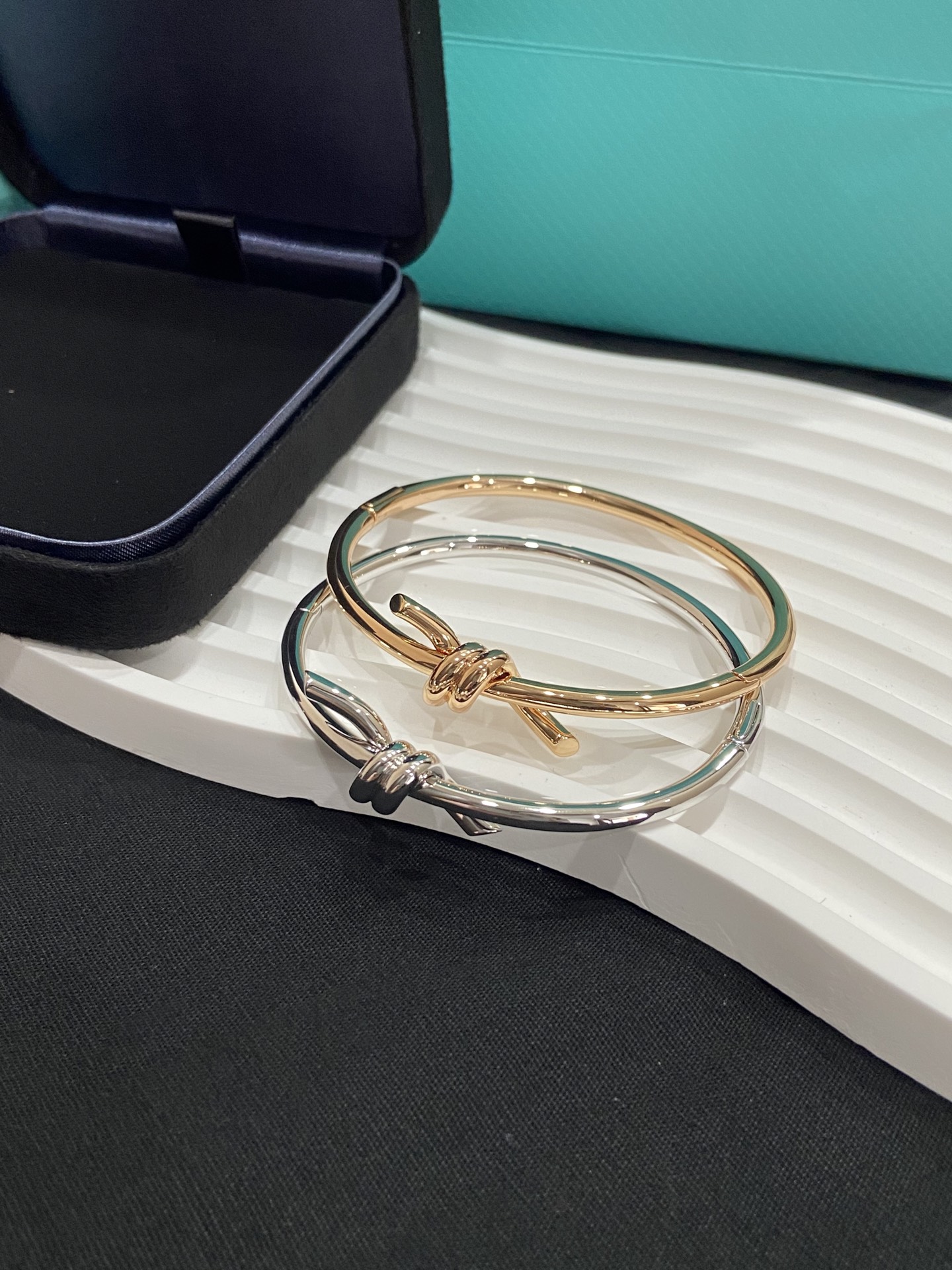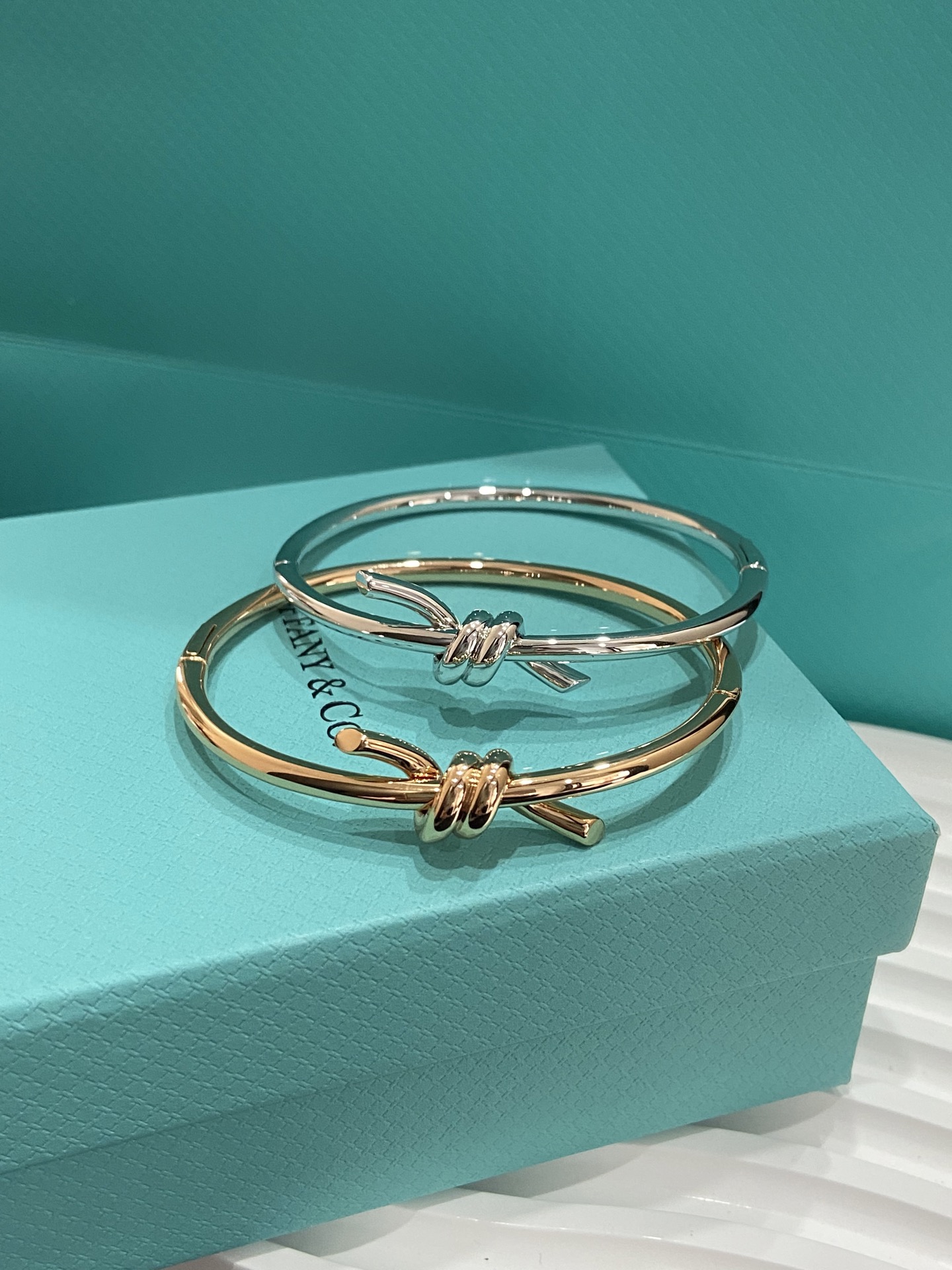 Tiffany Knot单圈的手镯,满钻,Knot上带钻和不带钻的手镯,一整个高级质感! 玫瑰金带钻和不带钻Knot单圈手镯,同系列同色系看带,优雅不失精致,美丽而充满力量, 白金 knot带钻单独戴已经很有质感,喜欢白金高级感的朋友们可以冲呀~