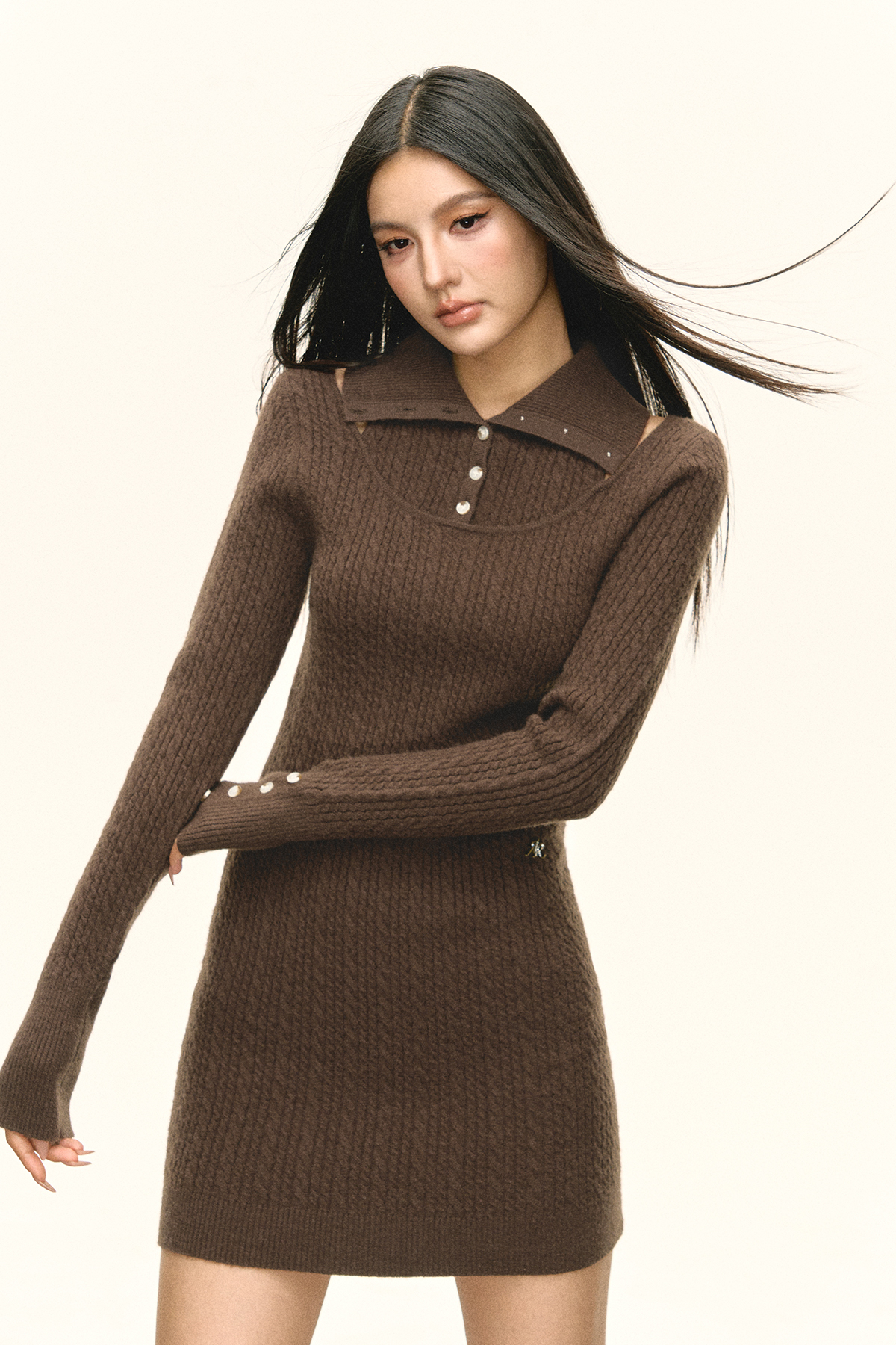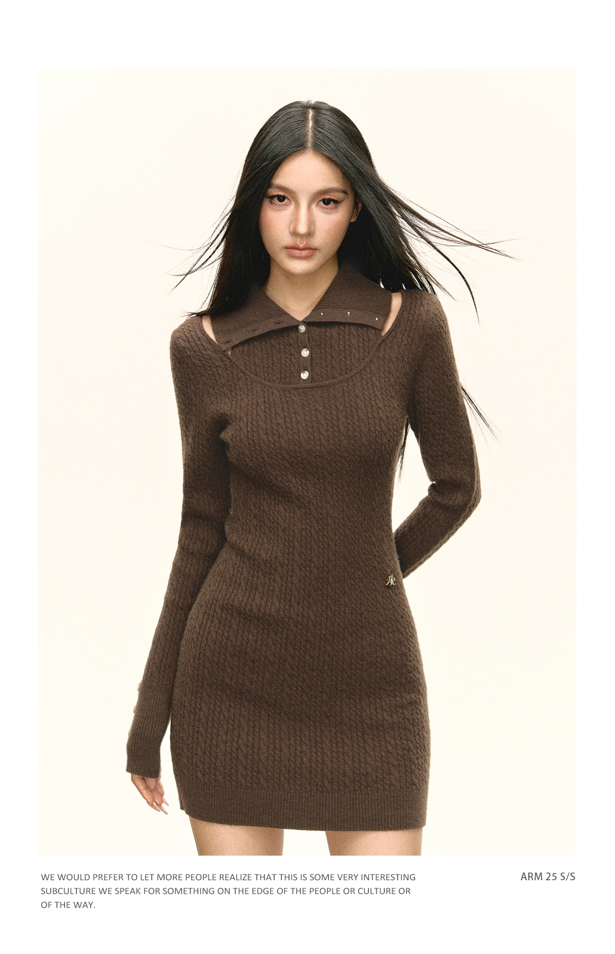 Ariseism 美式复古设计感连衣裙秋冬新款针织裙子