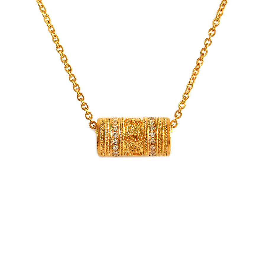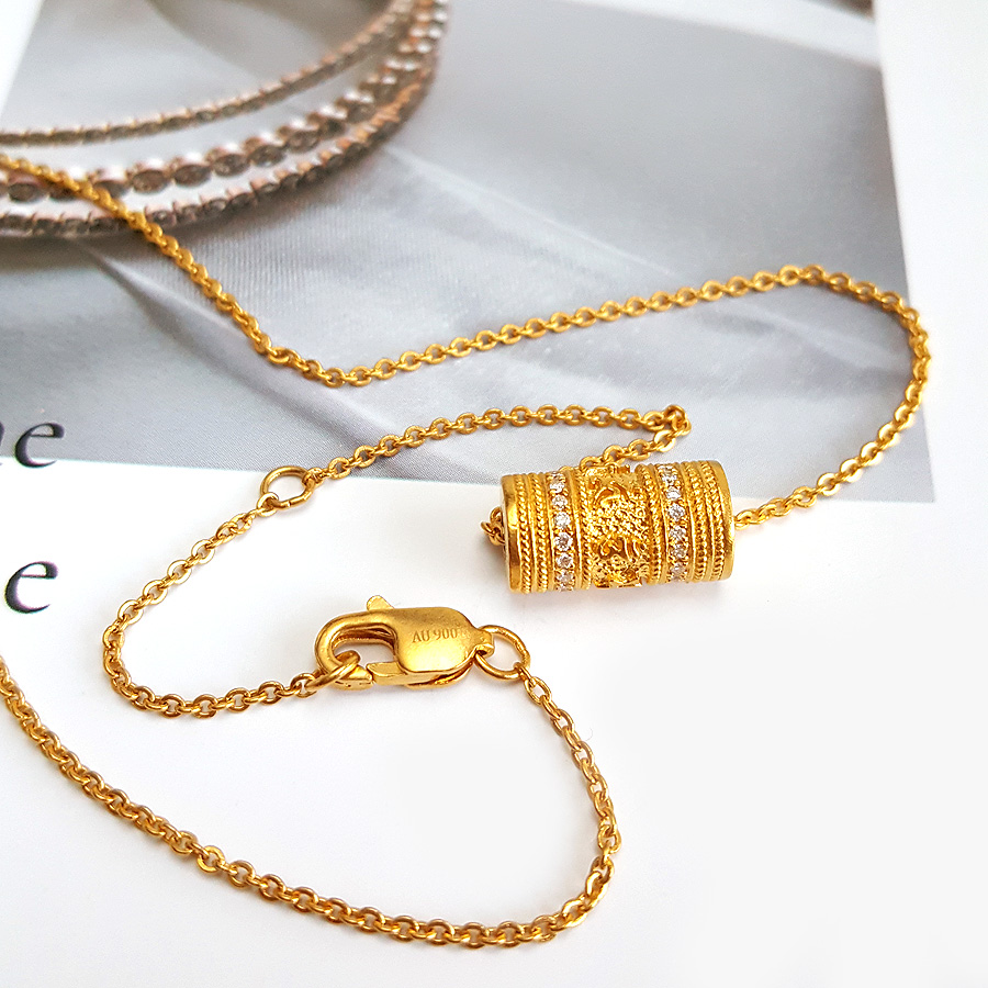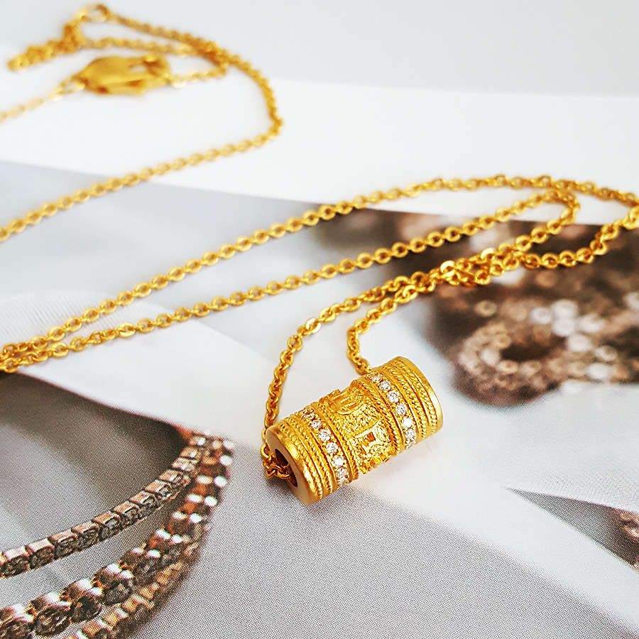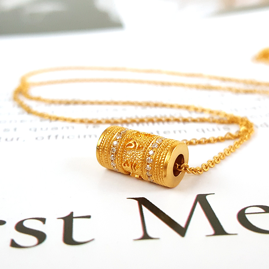 款式 | 足金六字箴言转经筒0.139克拉钻石吊坠项链 |