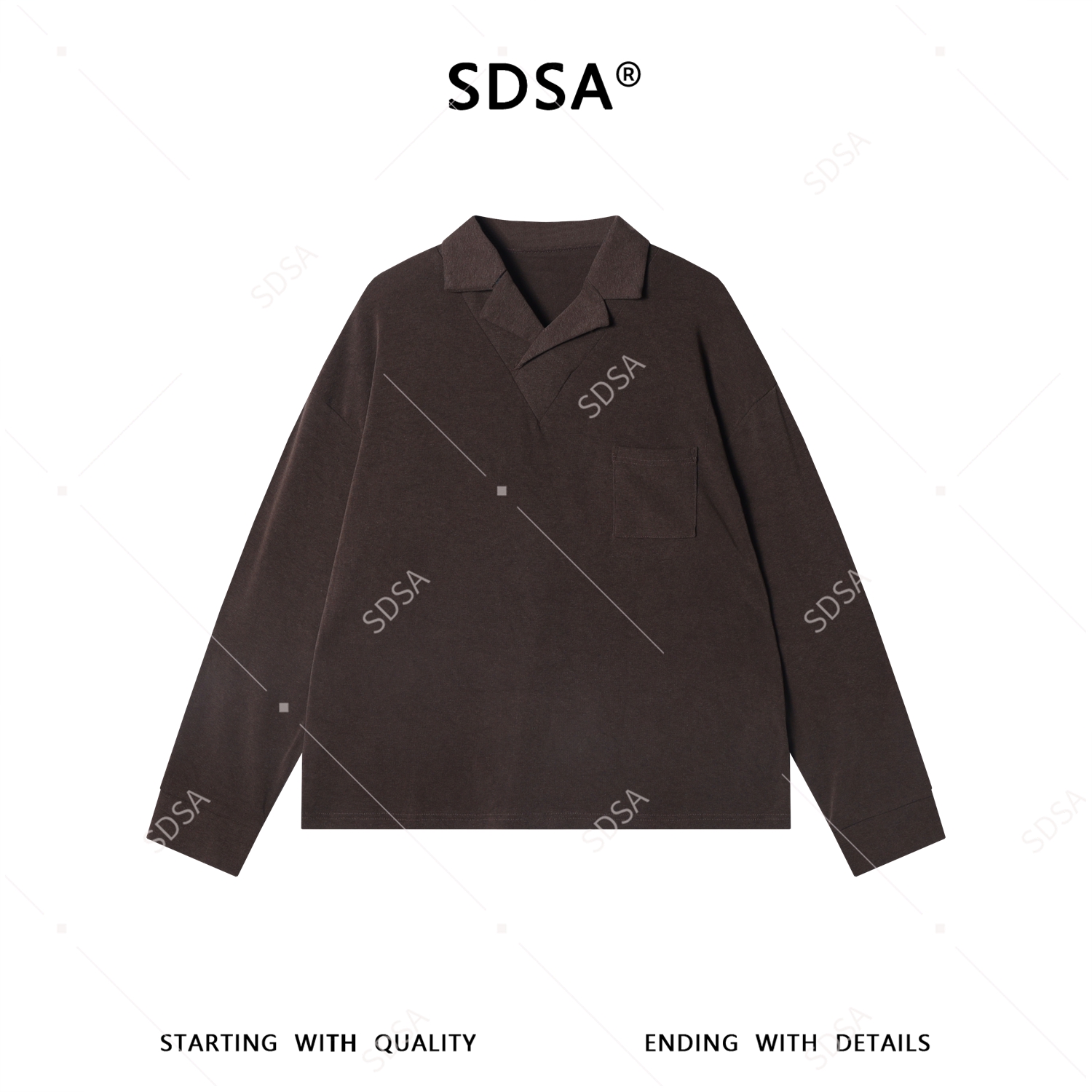 SDSA男装2026新款高贵轻奢松弛感纯色翻领长袖T恤百搭简约上衣