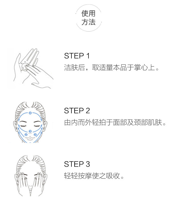 1.护肤品成分各有不同,敏感性肌肤的人士请先在耳后进行测试后再使用。