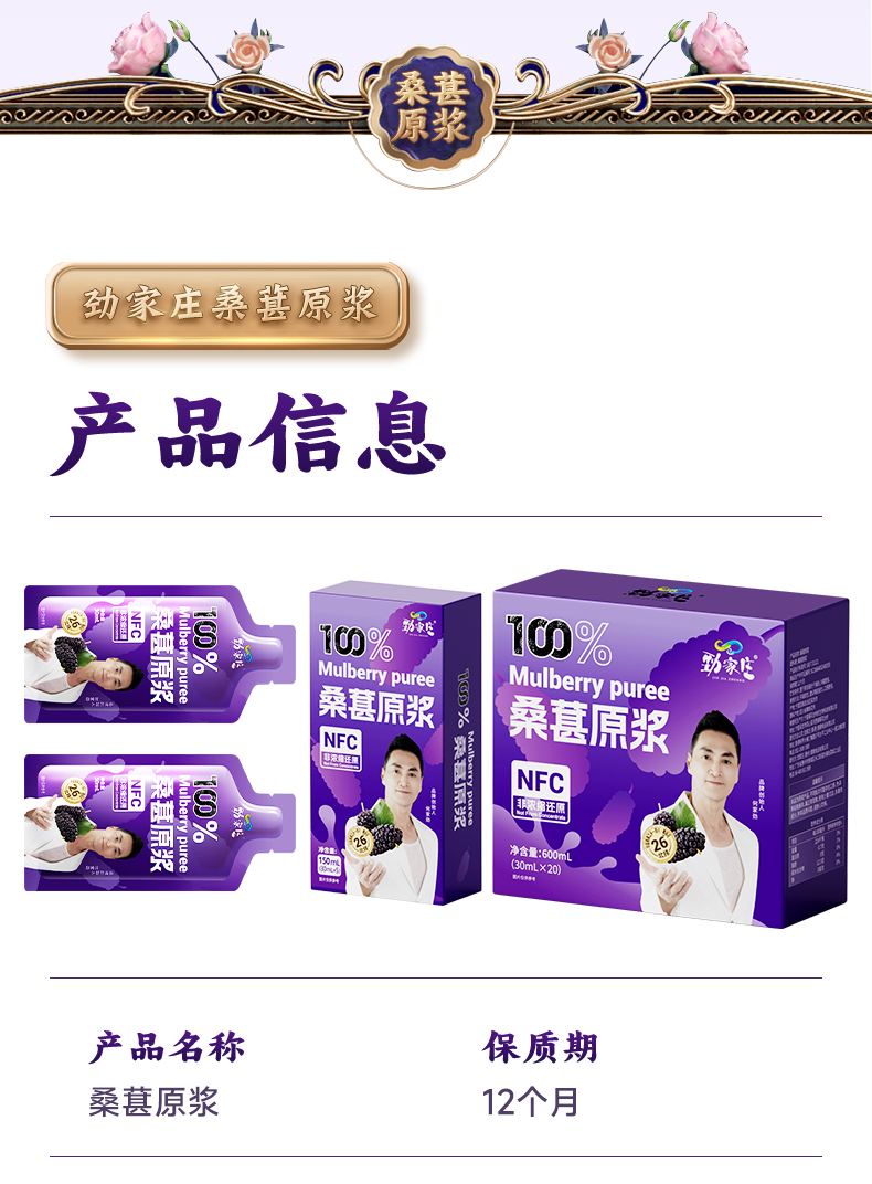 年货节 爆款 头茬 100%黑桑葚NFC原浆 20袋/盒