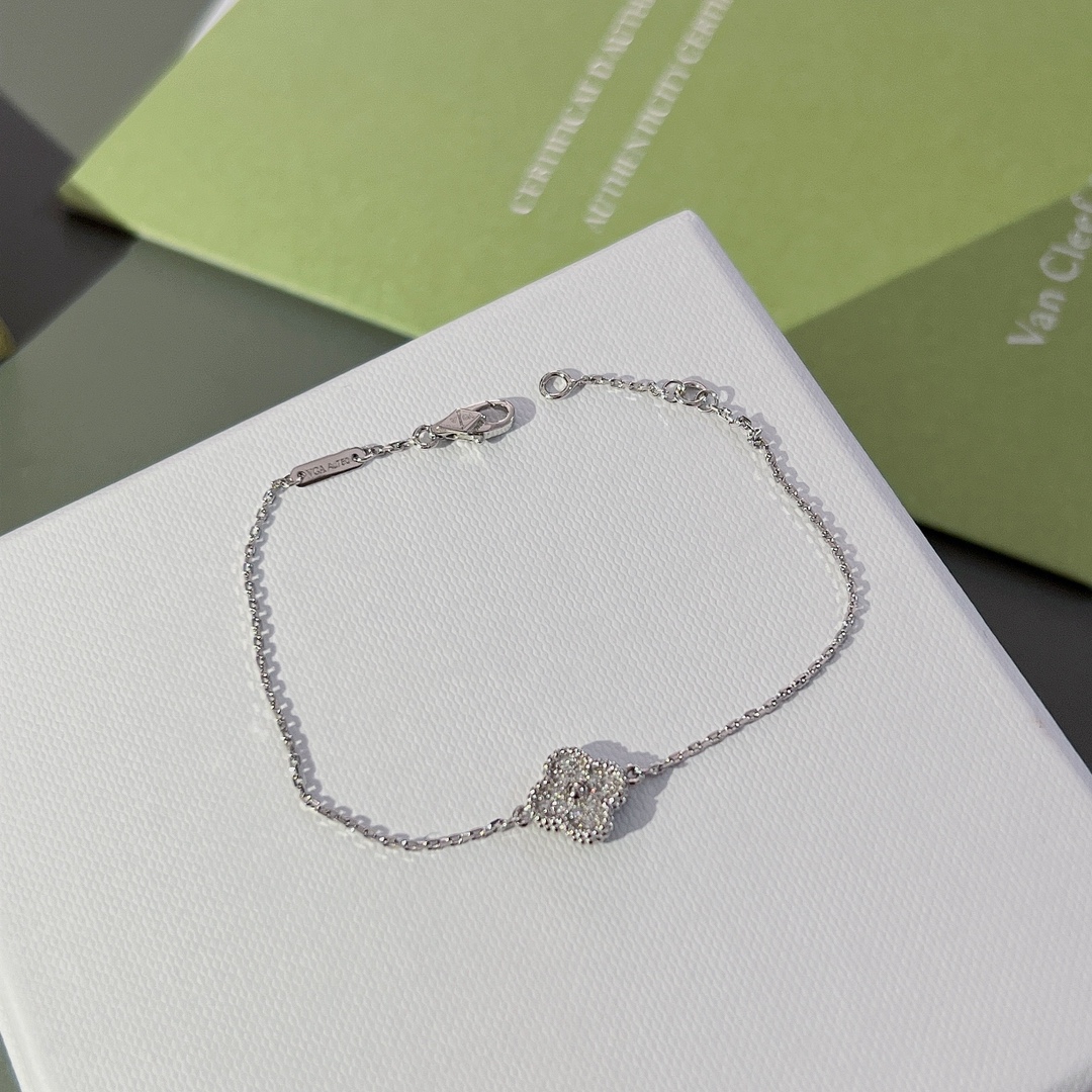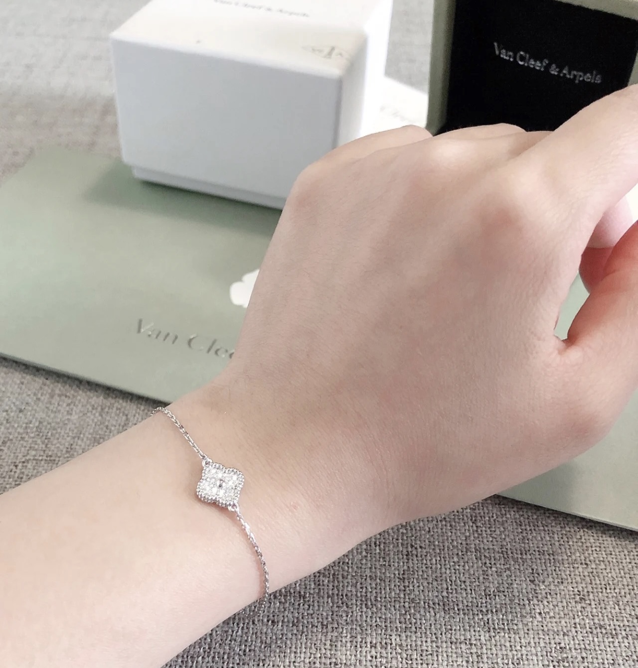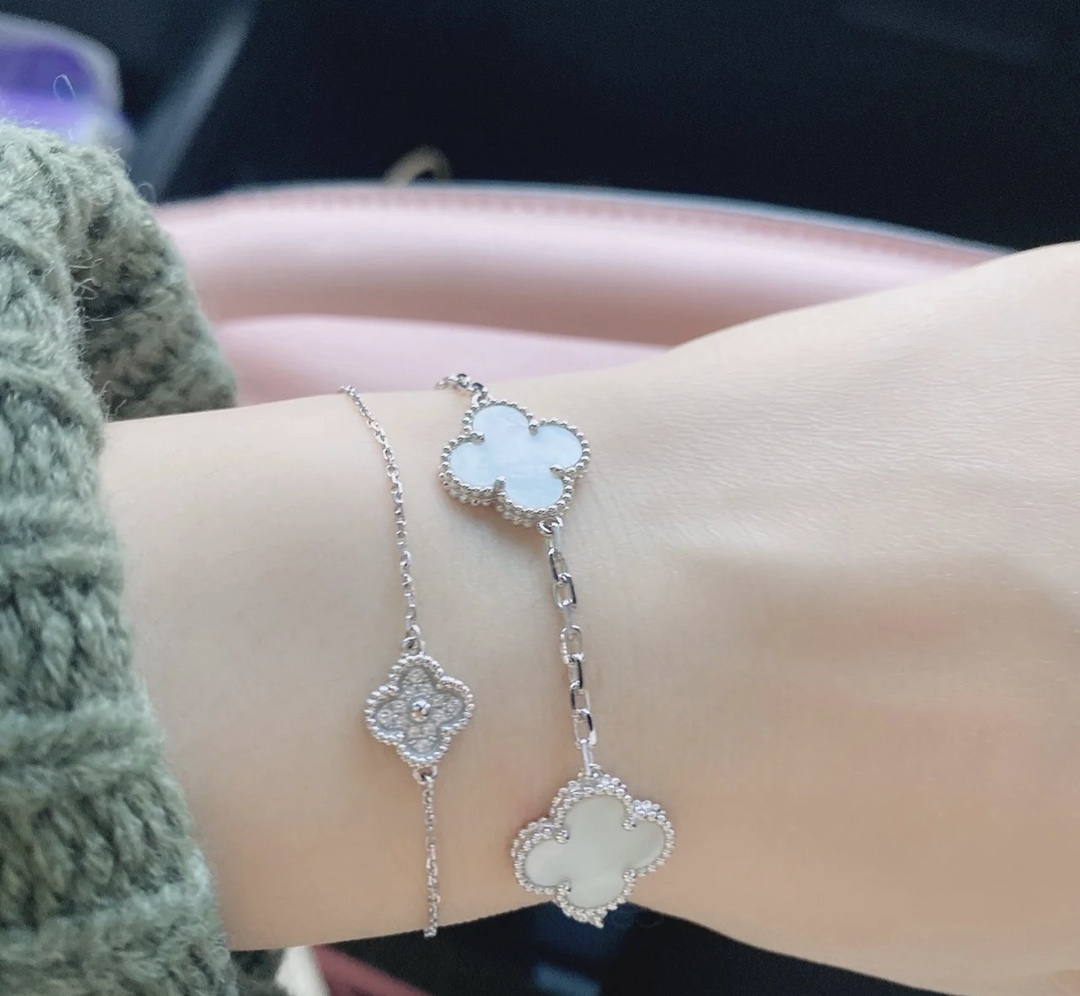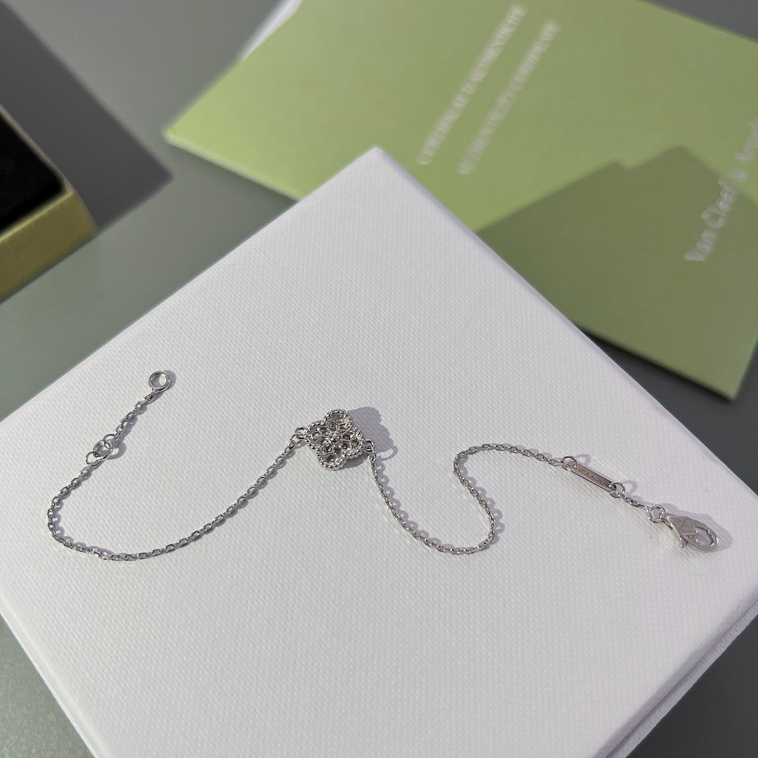 【VC@满钻单花手链】可以订真金真钻版本的,价格咨询客服。精工版本,编号207510051,市面上万万千版本,再看了Z之后,你就懂得仅有只有我们家能入得了高级宝宝们的法眼,HK有现货,有时候Z预订都要一年多,所以遇到了,就算2万多一条,都要毫不犹豫的拿下!今天,就一一的为大家讲解一下这款的每个细节,首先,认准全网唯一对版的mini满石Z真正的菱形◇龙虾扣,这个菱形扣分为三层,正面反面分别有两个菱形◇体凸出在表面,且菱形上边的字母呈双笔画空心字体,放大🔍图片再者,Z最后尾部的圈口链接的下一个扣,是直接烧焊的,而不是单纯扣上去的,也就是我们必须把一个圆圈跟一个椭圆形,用烧焊工艺烧起来,拼接起来,这个对于生产开发来讲,为了达到Z这个细节,每做一条精工版本的手链,就必须花多5分钟的时间来完成这个烧焊。第三,再细看这个满钻的Z每个四叶草的边珠,Z都不是正圆的,而是有点椭圆的视觉😄,这时候市面各种打着说自己做工多好多好边珠多圆润的,着实打脸打得不要不要的,认真放大看🔍,Z是这样的!第四,这个Z是珠宝类,去到2万多的价格,Z用的是18K真金+真钻石💎,我们的顶级终极版本采用的是纯银材质+水晶,再到表层电镀超厚的真金电镀层,最大程度的追求保色效果,让宝们真正拥有专柜般的享受!