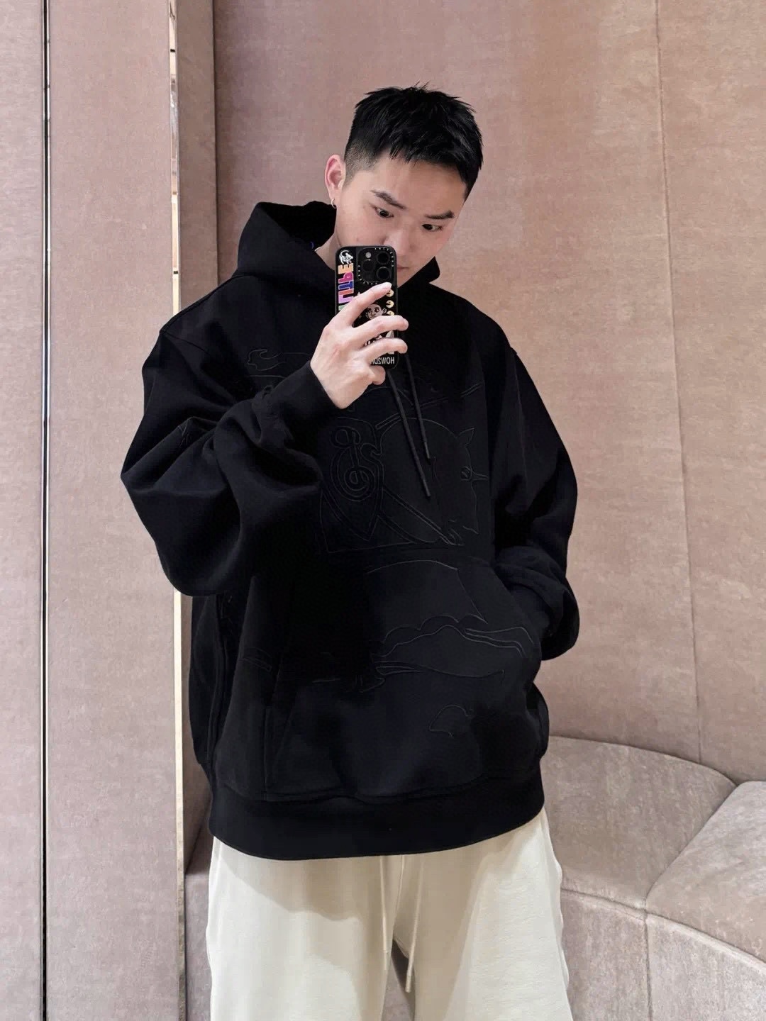 巴家 黑战马刺绣连帽卫衣(JN)
