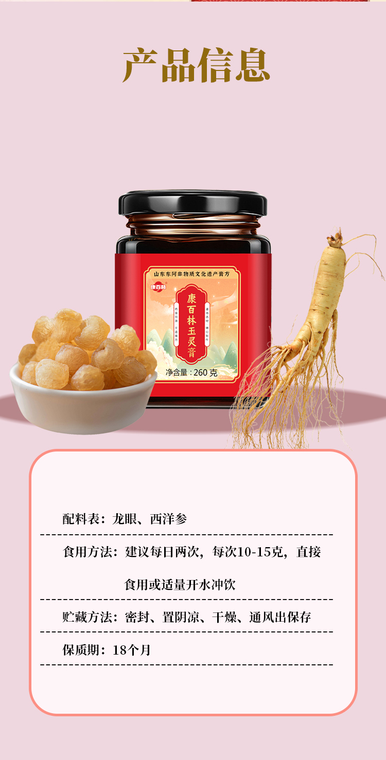 康百林玉灵膏蒸桂圆蒸桂膏西洋参玉灵膏康百林官方旗舰店正品
