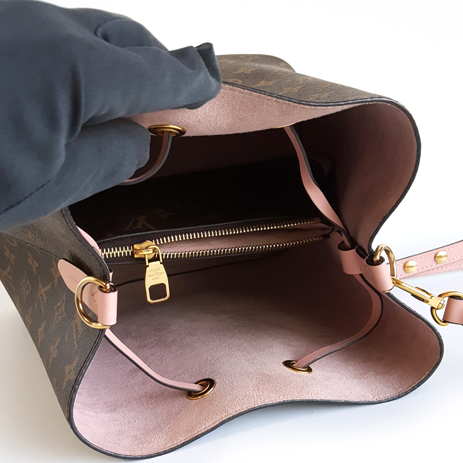 【95新】LV路易威登NEONOE系列M44022 老花拼粉色NEONOE水桶包单肩包女士201125NJS05