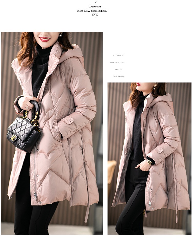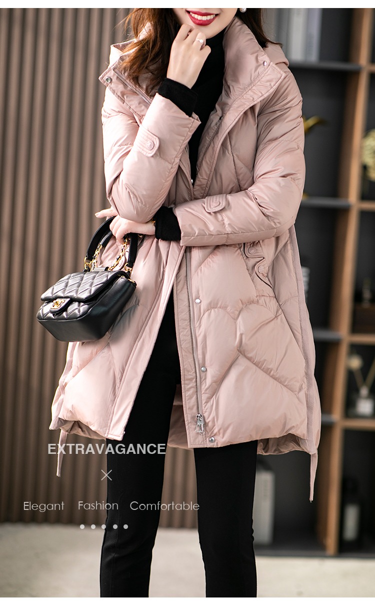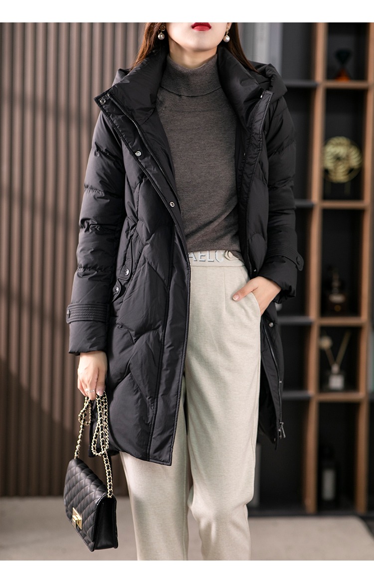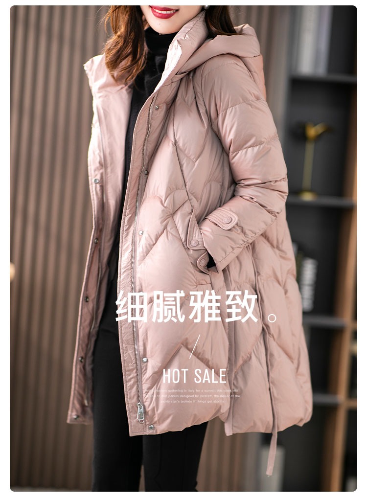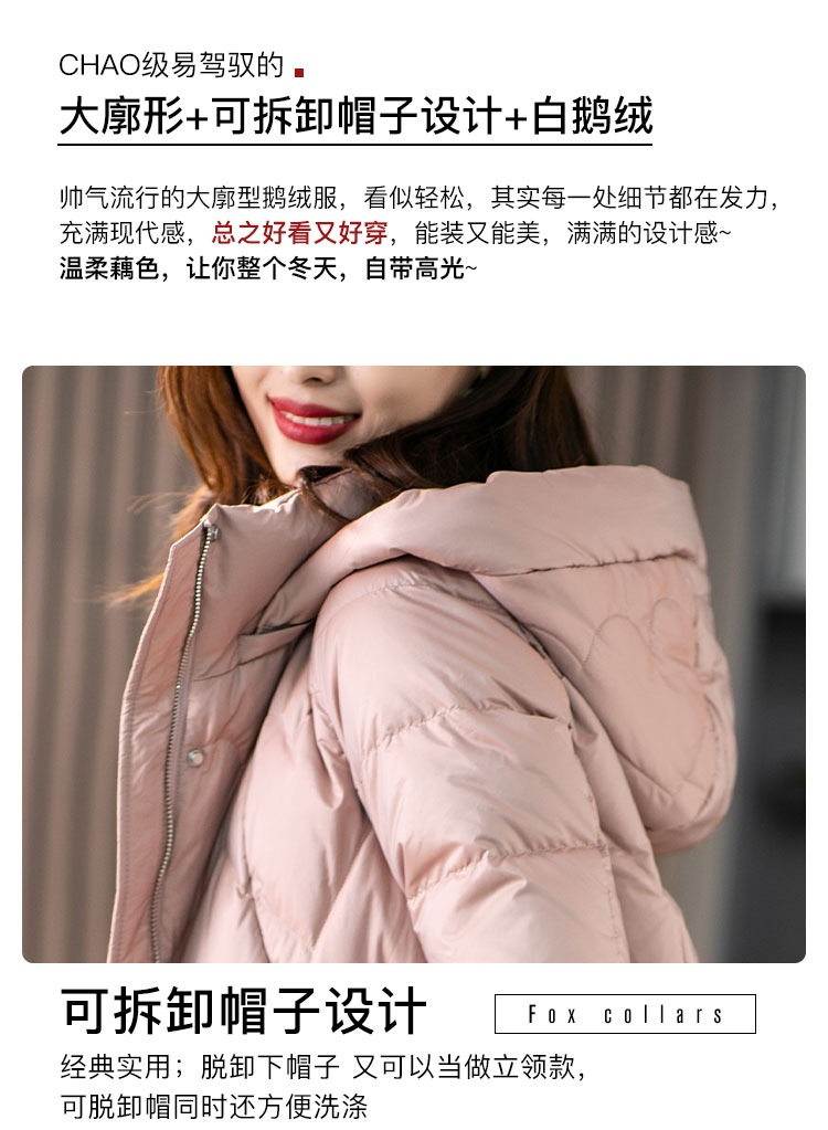 【现货7天】白鹅绒大鹅羽绒服女中长款2023年秋冬新款加厚连帽轻薄大衣