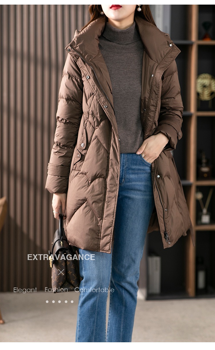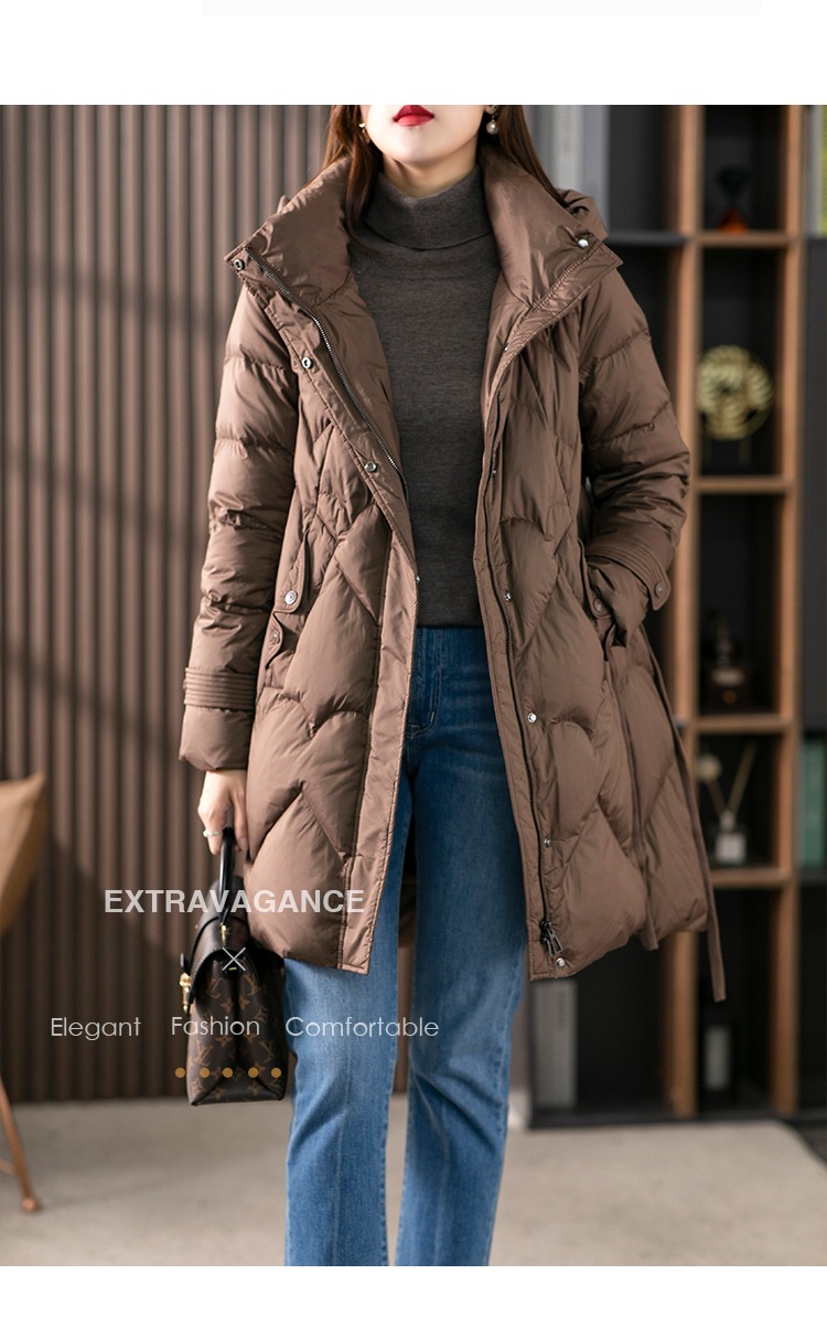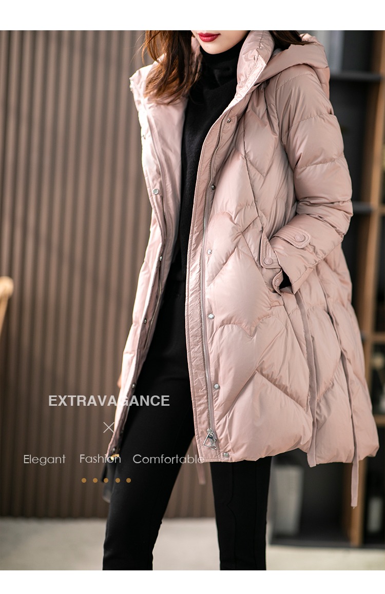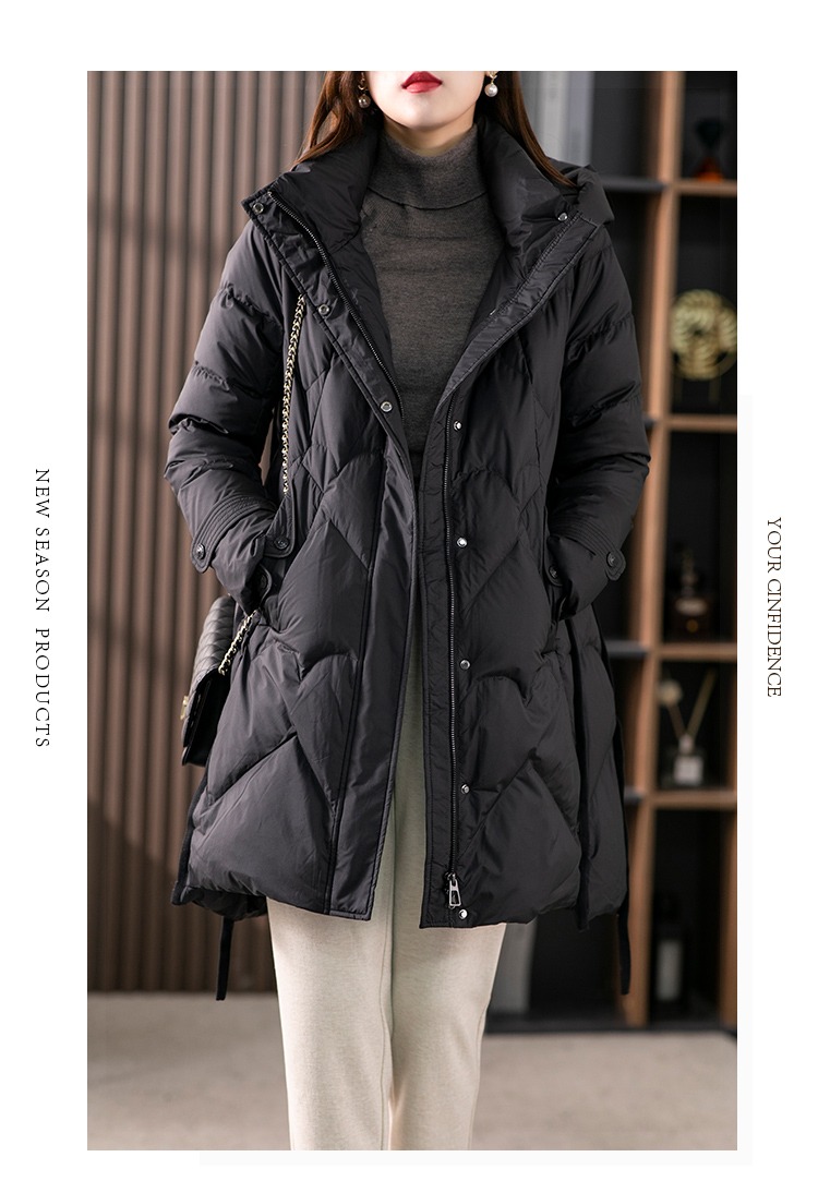 【现货7天】白鹅绒大鹅羽绒服女中长款2023年秋冬新款加厚连帽轻薄大衣