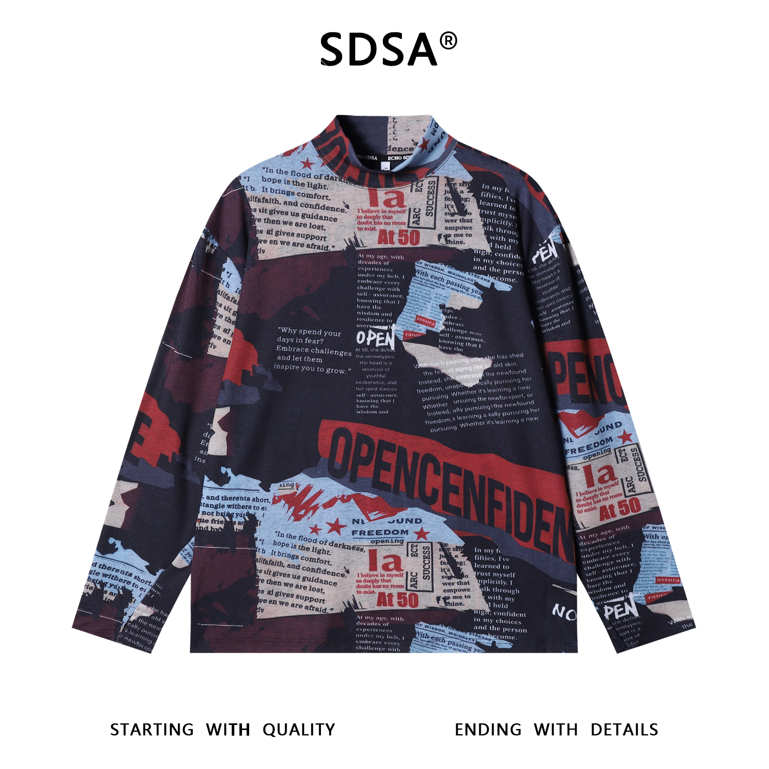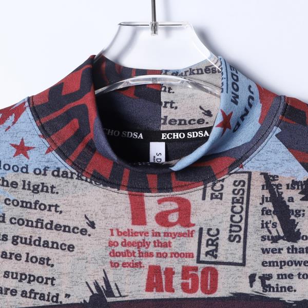T4914SDSA男士秋冬新款痞帅男装潮牌撞色满印字母半高领长袖T恤百搭潮