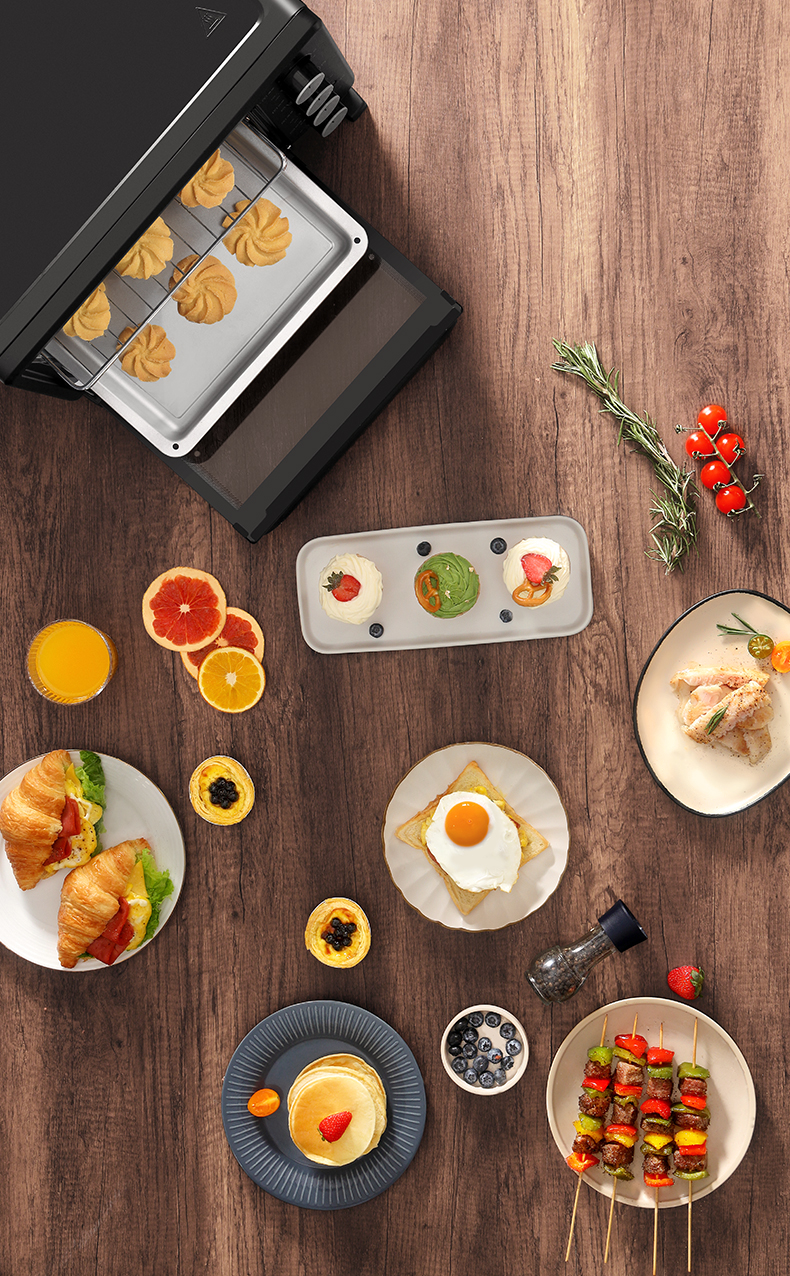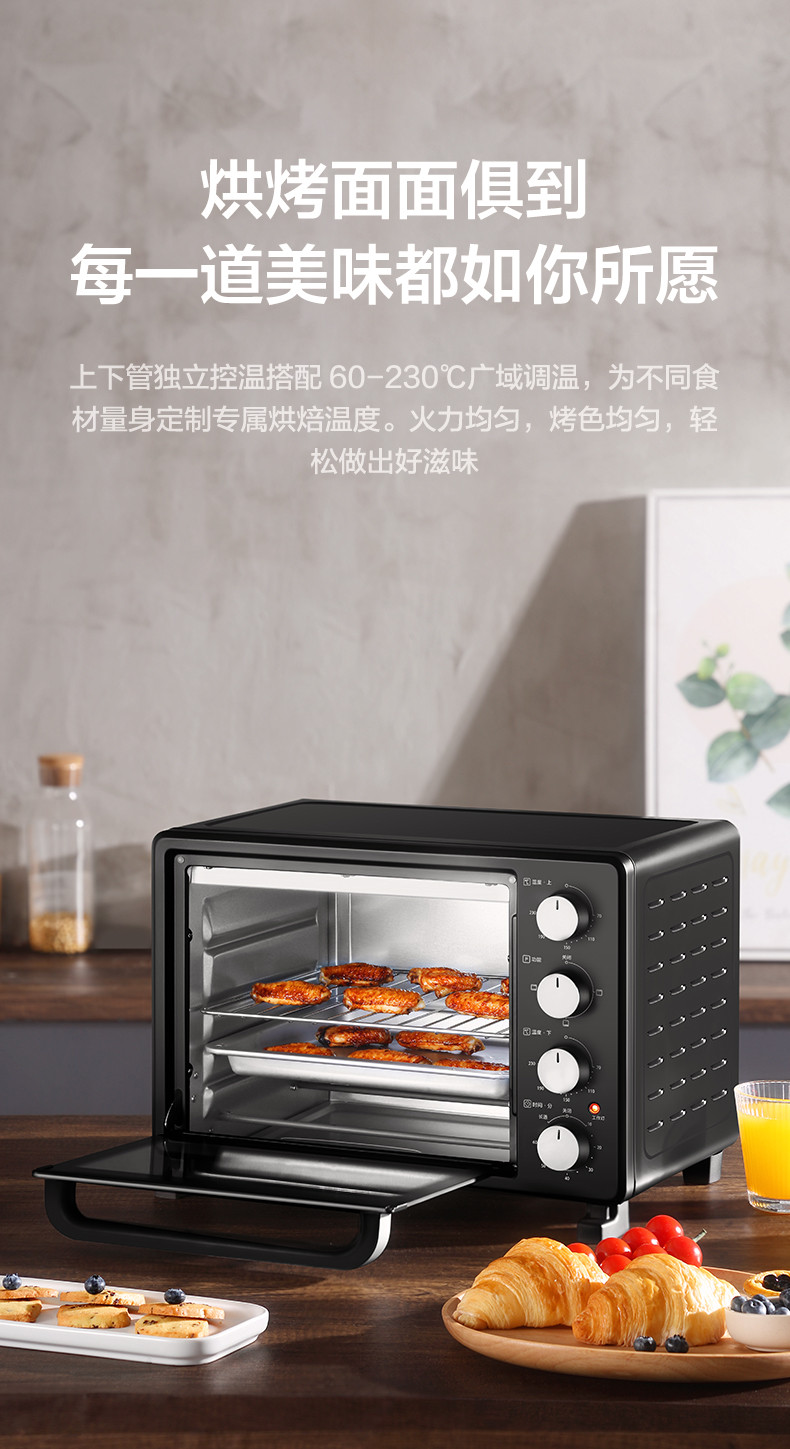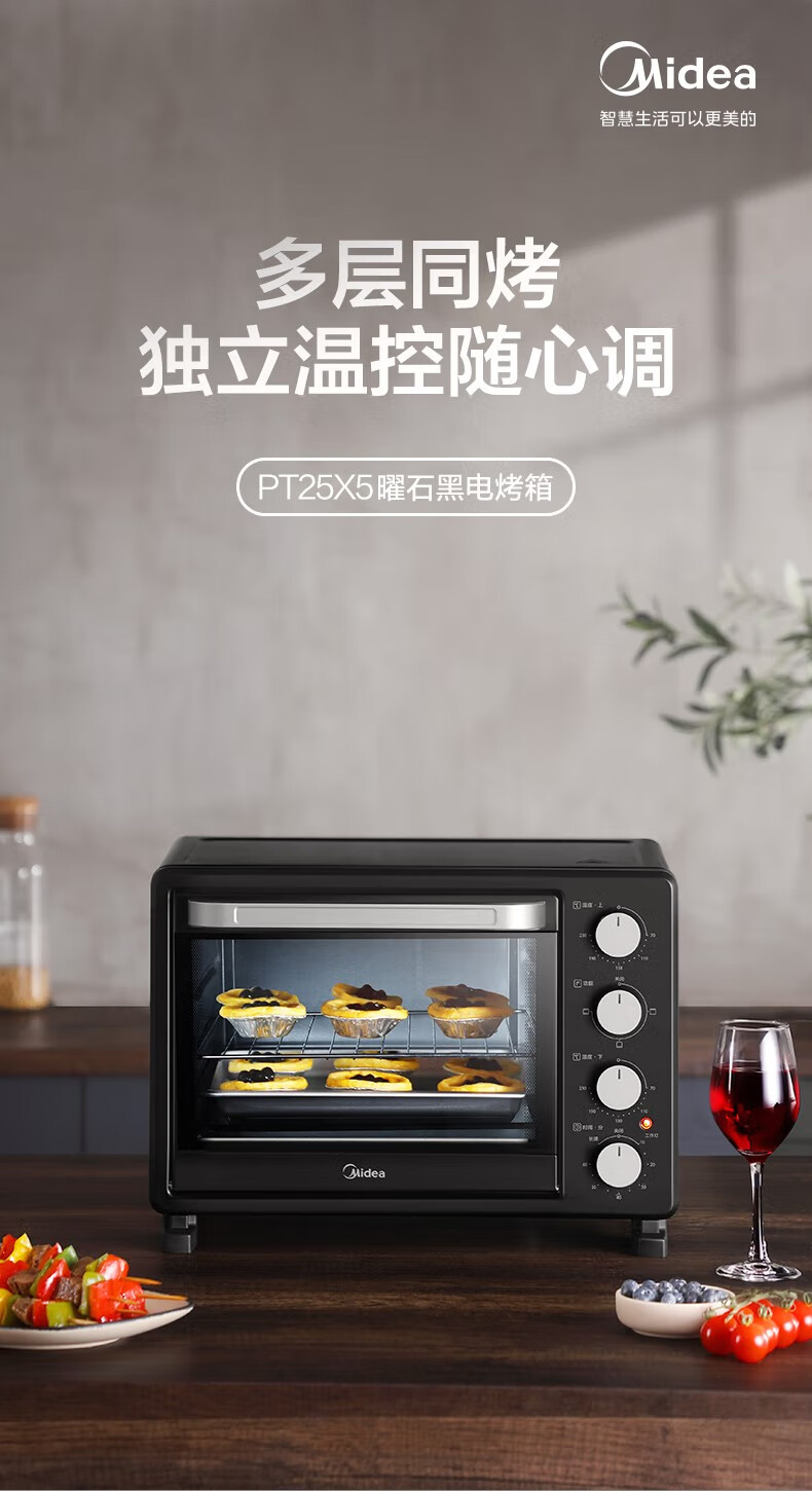 美的(Midea) PT25X5烤箱家用烘焙迷你小型电烤箱多功能全自动蛋糕25升大容量 亚光黑