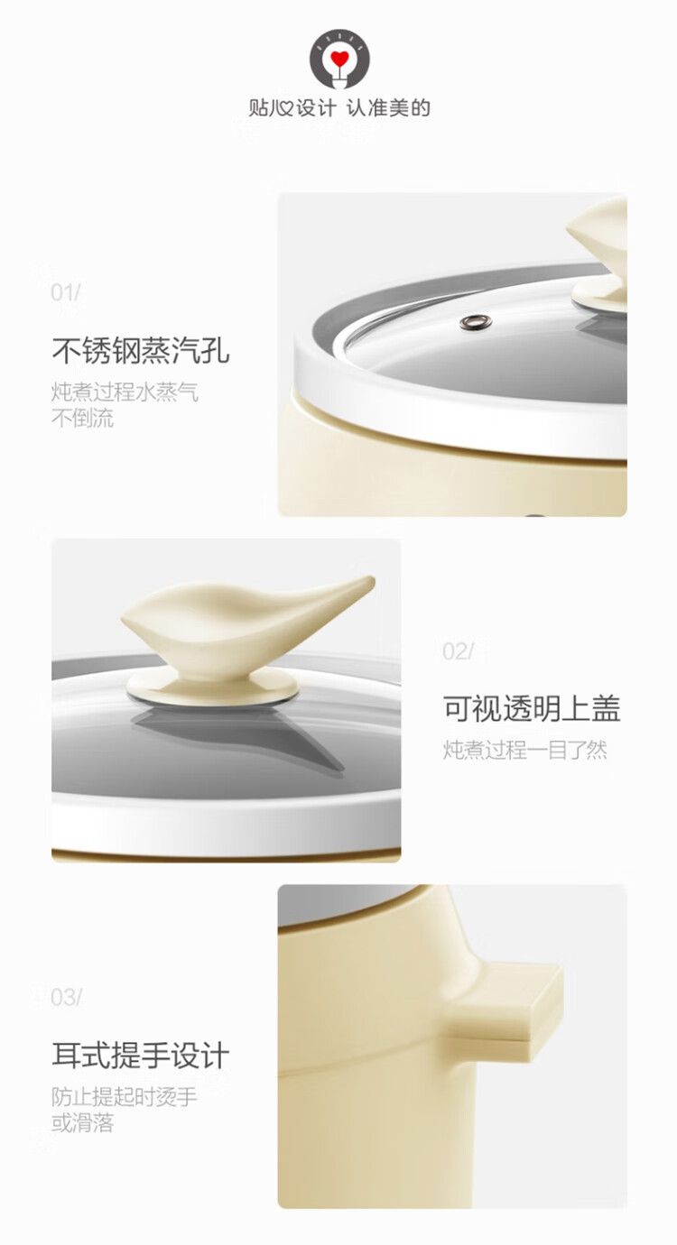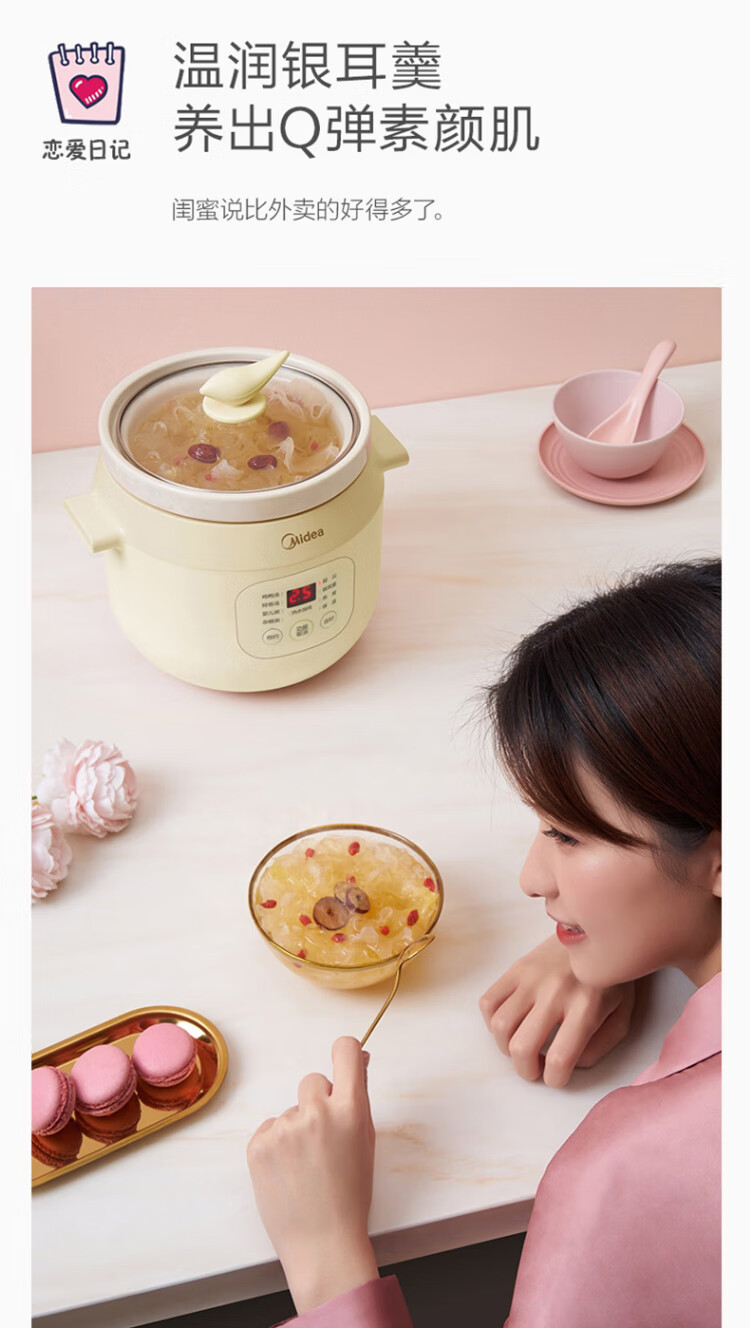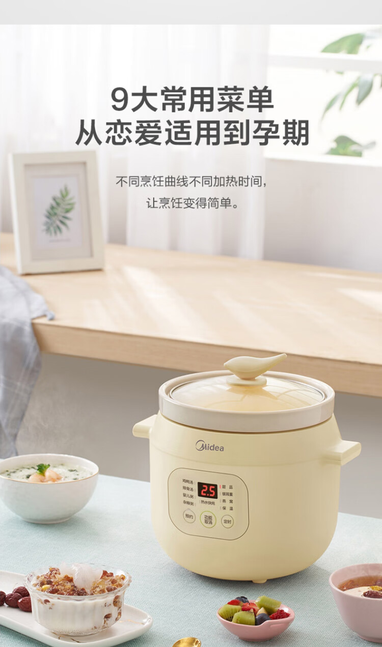 美的(Midea)电炖锅电炖盅BB煲辅食锅婴儿煮粥煲汤锅2L燕窝炖盅白瓷多胆TGS20Y